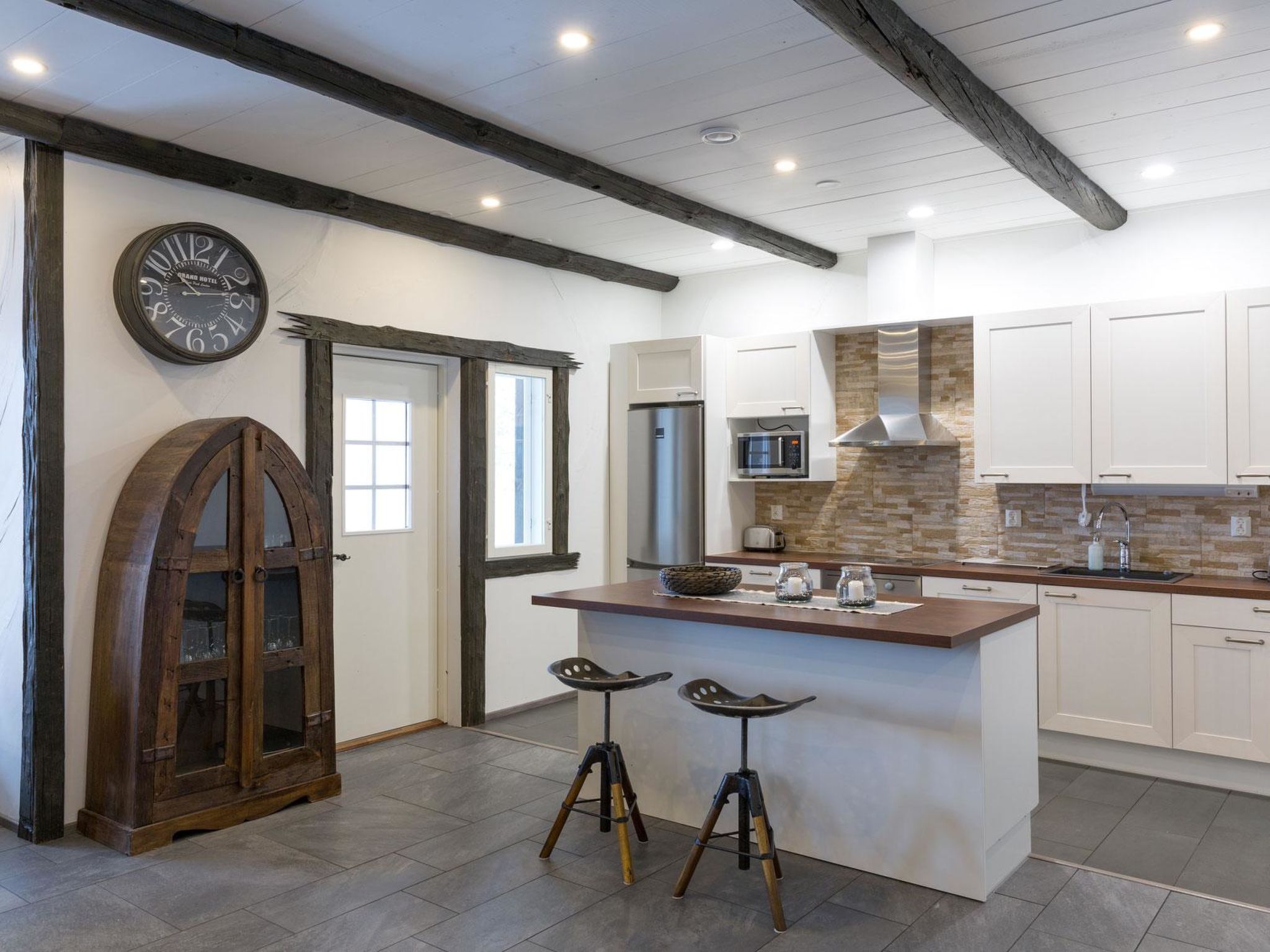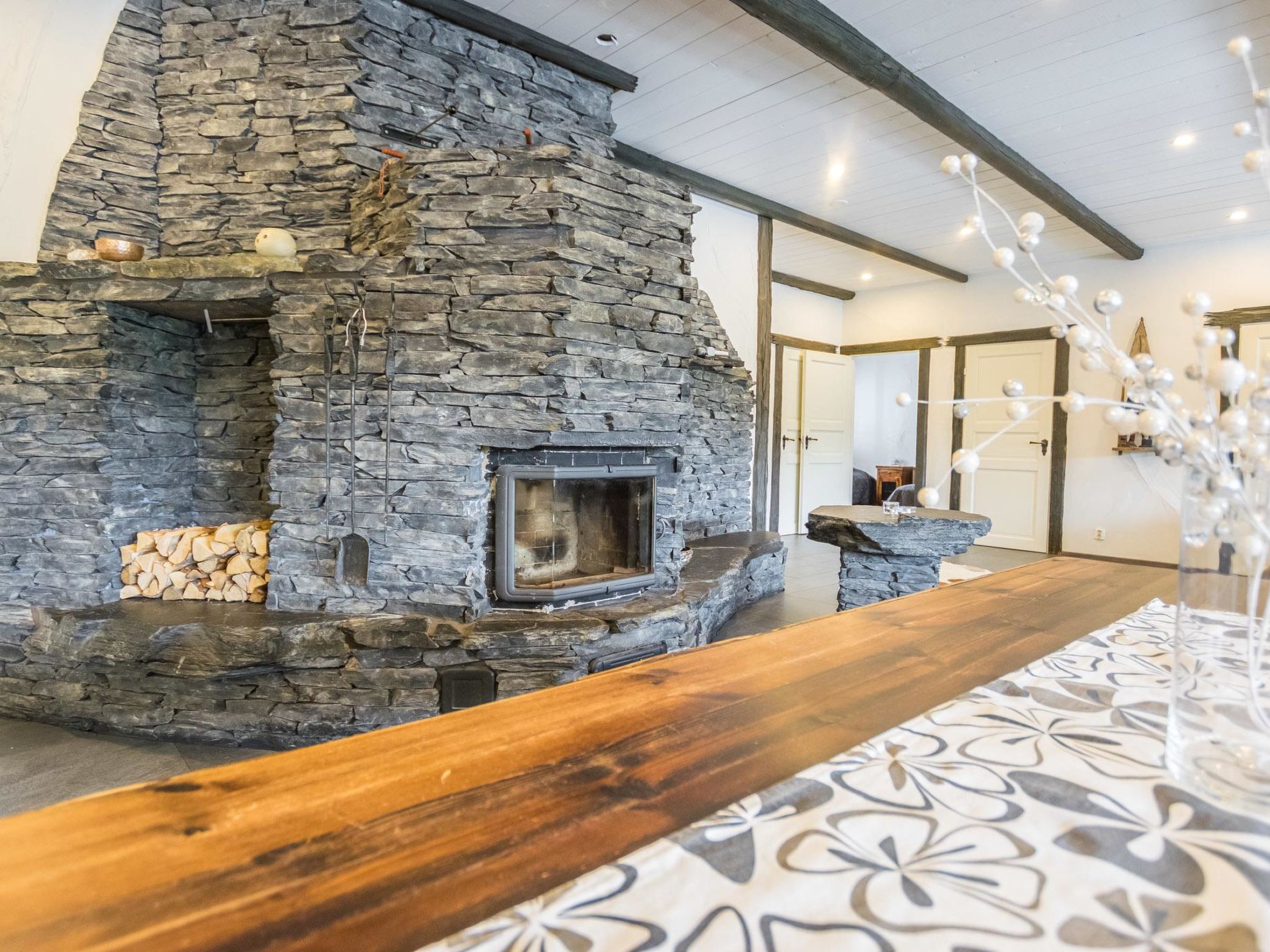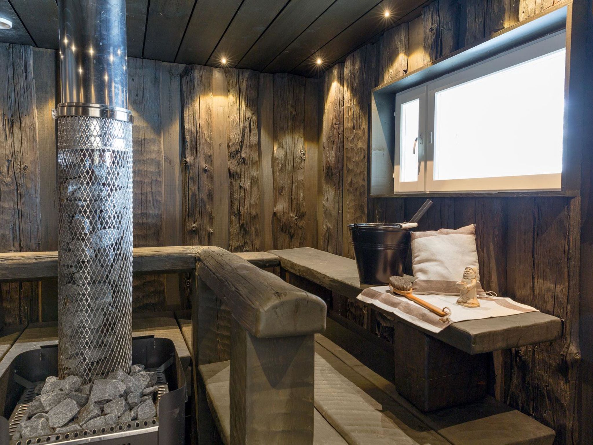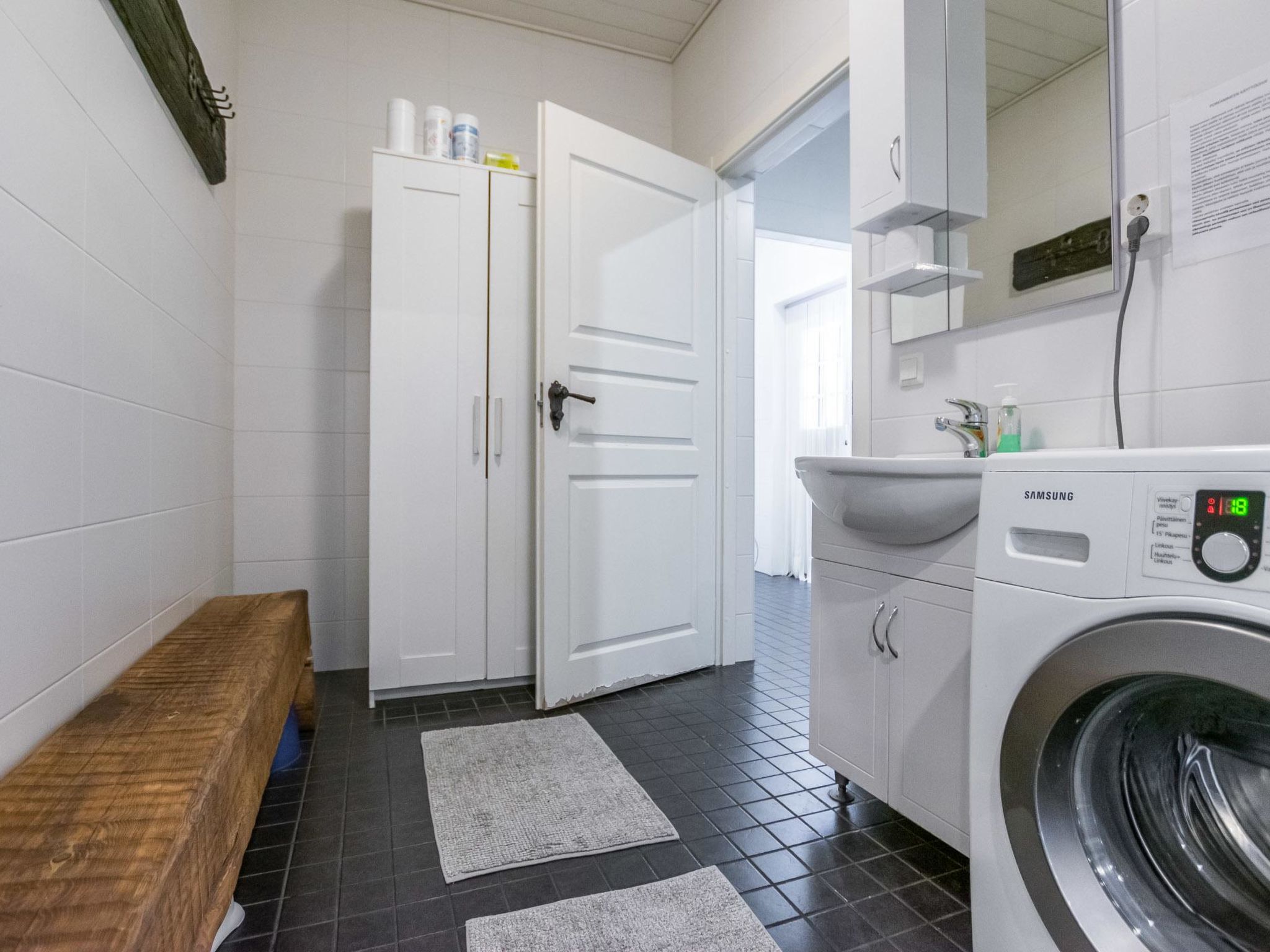70 km westlich von Jyväskylä, See Sammionselkä 40 m (Länge 4.7 km, Breite 200 m), flach abfallender, sandiger Lehmboden, eigenes Boot und Bootanlegestelle. Geräumige Blockhausvilla, Wohnküche 97 m², Diele, 2 Schlafzimmer mit je 3 Betten, Schlafzimmer mit 1 Bett, 2 Schlafzimmer mit je 2 Betten, Hauswirtschaftsraum / Ankleideraum, Duschraum, Sauna, Terrassen von 200 m². Seesauna, die nur von Juni bis September zur Verfügung steht. In der Sauna am See stehen 6 Zustellbetten gegen eine separate Gebühr zur Verfügung, sodass von Juni bis September insgesamt 17 Betten zur Verfügung stehen. Auf der Terrasse der Villa befindet sich Whirlpool, der gegen eine separate Zahlung/Vereinbarung gemietet werden kann. Die Villa verfügt über mechanische Belüftung, DVD und Karaoke-Ausrüstung. Grosse Villa auf hellem Hanggrundstück. Flacher Hof. Von der Villa gibt es einen steilen Hang zum Ufer, Stufen auf dem Weg und Zwischenterrasse. Auf dem Strand Lagerfeuerplatz, Fischräucherkiste und Anlegestelle. Schaukel für Kinder und Spiele im Freien. Hunde sind in der Hauptvilla nicht gestattet, dafür aber in der Seesauna. Reitstall Korpi-Jukola 5 km, Moksunniemi Golf 60 km, Keuruun Touristenzentrum Kamana und Elias Lönnrot Raddampfer 10 km. Fliegenfischerplätze: Virtalankoski 3 km, Palsankoski, Housukoski und Käpykoski 25 km. Haapamäki Dampfmaschinenpark 24 km, Jyväskylä Flughafen 73 km, Mänttä Kunststadt 40 km entfernt.