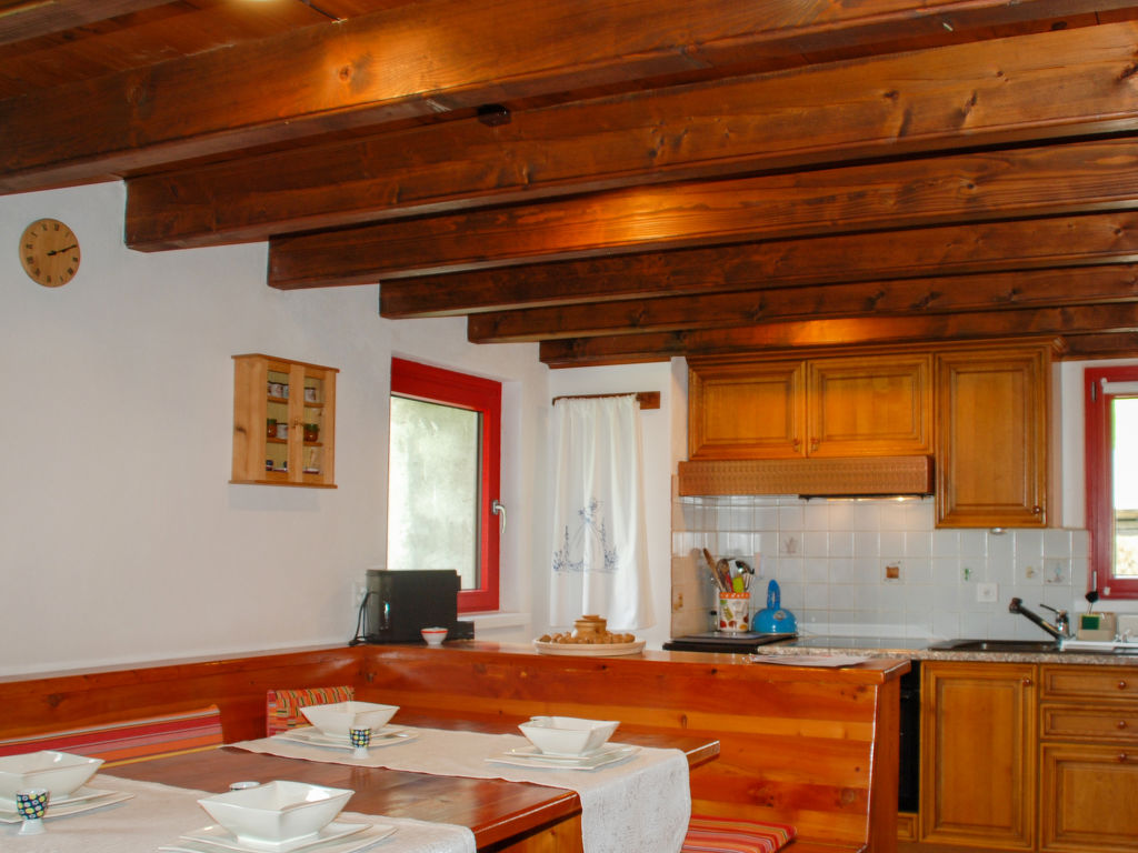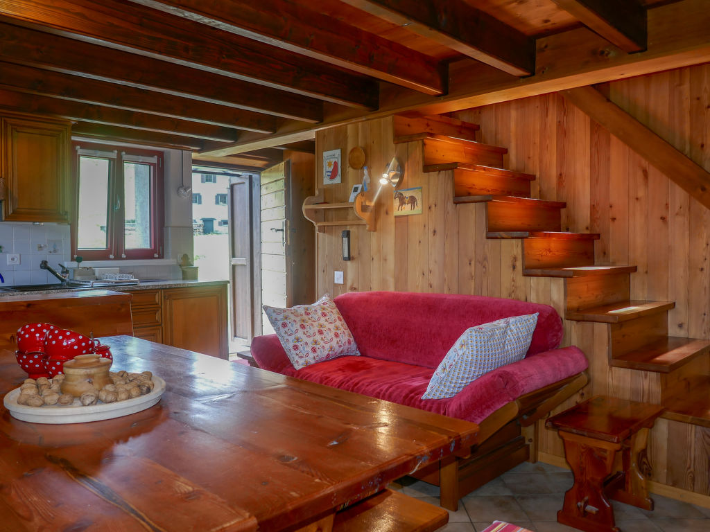 "Rustico Anveuda", 4-Zimmer-Haus. Teilweise abgeschrägt, teilweise renoviert im Jahre 2021, komfortabel und gemütlich eingerichtet: offenes Esszimmer mit offenem Kamin und Essecke. 1 Doppelzimmer mit 1 Doppelbett (2 x 80 cm, Länge 190 cm). Offene Küche (4 Glaskeramikherd Platten, Wasserkocher, elektrische Kaffeemaschine, Kapseln für die Kaffeemaschine (Tassimo) extra, Fondue Set (Käse)). Bad/WC. E-Heizung, Holzheizung. Obergeschoss: offenes Wohnzimmer mit Sat-TV und Stereoanlage. 1 Zimmer mit 1 Bett (80 cm, Länge 190 cm) mit 1 Bett (130 cm, Länge 190 cm) mit 1 Bett (120 cm, Länge 190 cm). Gartensitzplatz, Garten. Gartengrill (mobil). Herrliche Panoramasicht auf die Berge und die Landschaft. Zur Verfügung: Waschmaschine, Kinderhochstuhl, Babybett bis 2 Jahre (extra), Haartrockner. Bitte beachten: Nichtraucher-Haus. 1 kleines Haustier/Hund erlaubt. Feuerlöscher.