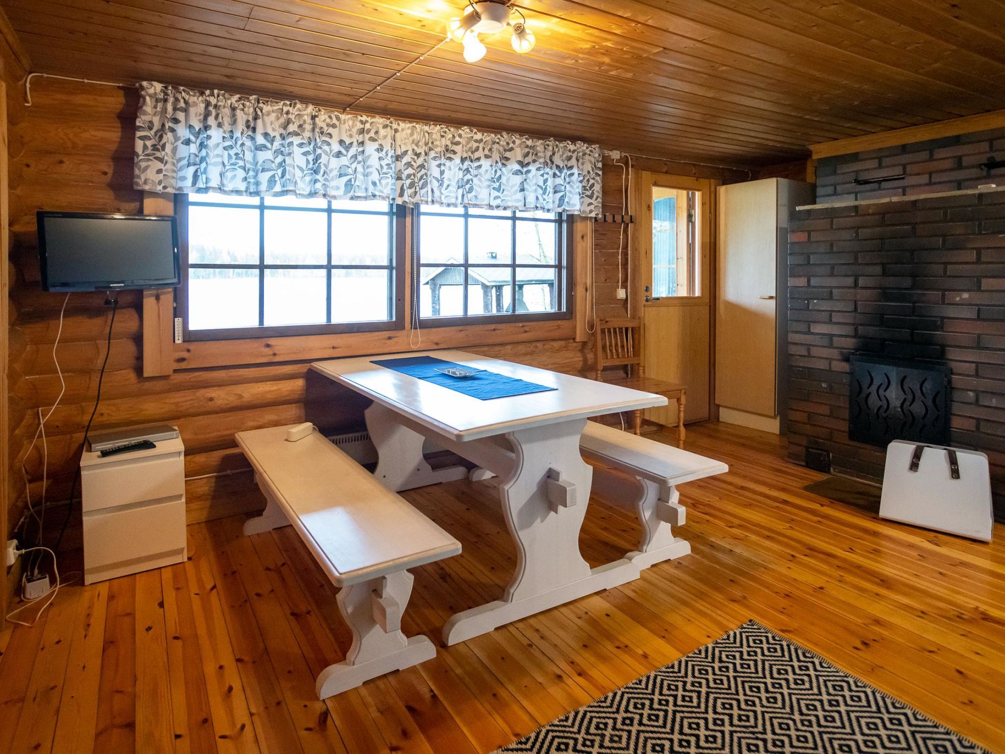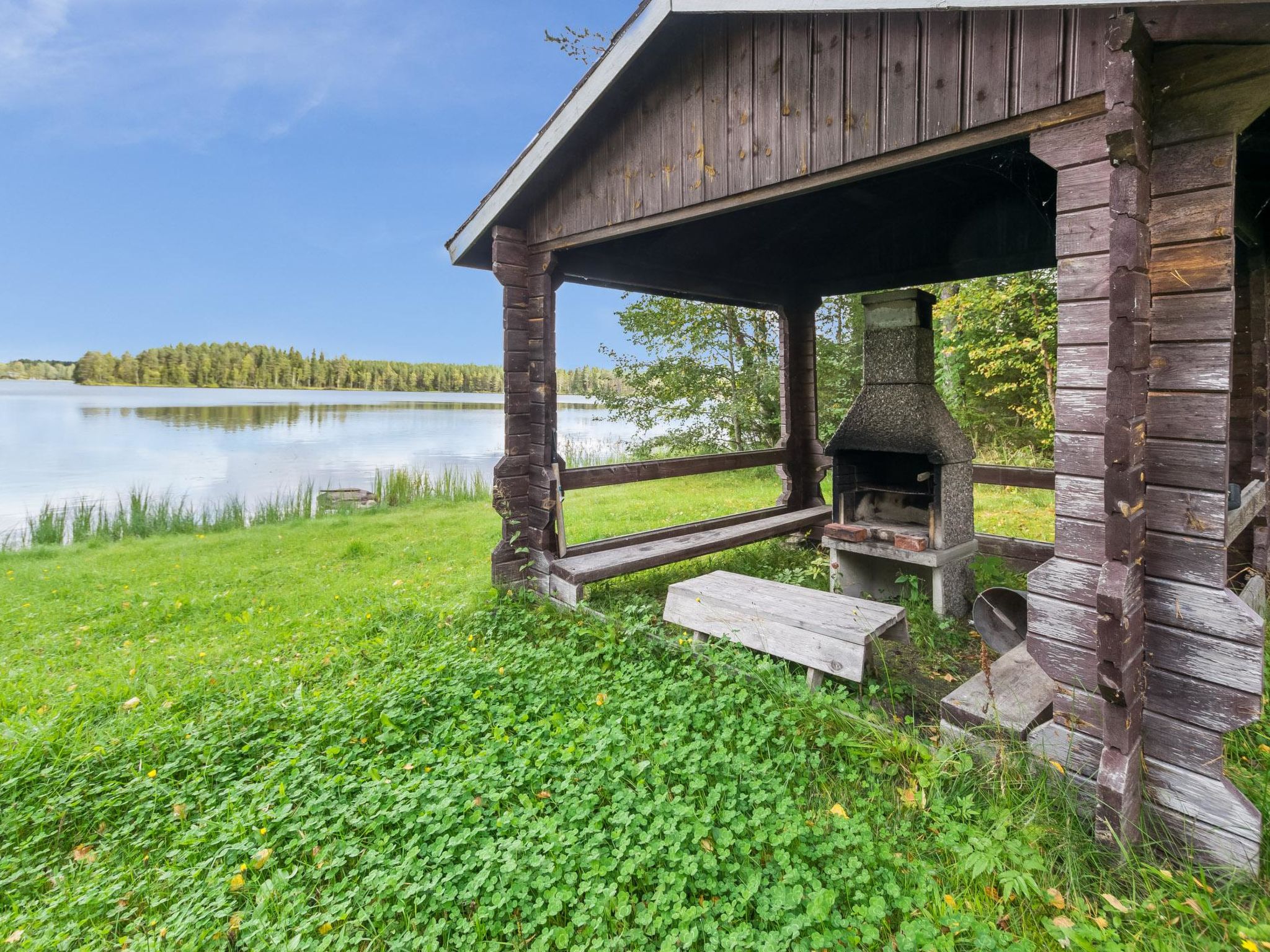 48 km westlich von Jyväskylä. See Kolumeronen 10 m (Länge 3 km, Breite 2.5 km), flaches Wasser, fester Sandboden. Eigenes Boot. Blockhaus, Baujahr 1986, renoviert 1993, Wohnküche mit 1 Zusatzbett, Schlafzimmer mit 1 Doppelbett (120 x 200 cm), Etagenbett in der Nische, Ankleideraum, offene Veranda. Zugang zur Dusche/Sauna von der Terrasse. Im Haus gibt es auch Holzofen. Zusätzliche Gebühr für Hunde (EURO 20 /Hund) muss bei der Ankunft in bar bezahlt werden. Bett und Hochstuhl für ein Baby bei Bedarf verfügbar. Möglichkeit zum Reiten 20 km. LAAJAVUORI Skigebiet 33 km, markierte Skipisten direkt vom Haus. Jagdmöglichkeit. Tanzen im Freien im Sommer 2017, nur am 8. Juli, Entfernung 40 m. Hinweis! Restaurant kann Lärm verursachen.