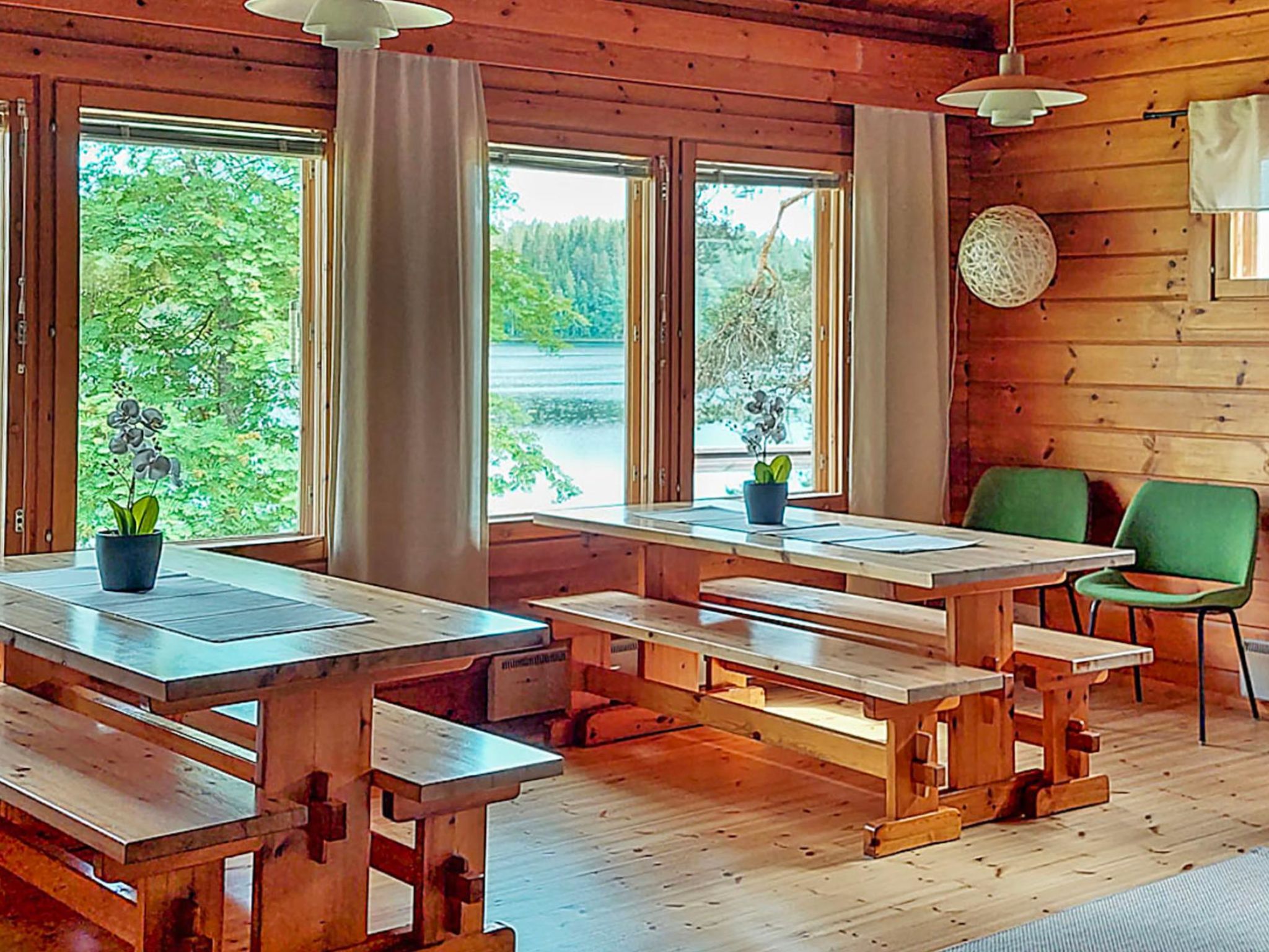 35 km westlich von Jyväskylä, See Karikkojärvi 20 m (Länge 5 km, Breite 600 m), flacher und geschliffener Moränenboden, eigenes Boot, Steg. Blockgebäude, Baujahr 1987, Küche, Wohnzimmer mit Kamin und 2 Schlafsofas, im Obergeschoss Schlafzimmer mit 3 Betten, Nische mit Tür und 1 Bett, auf dem Schlafboden 2 Betten und 3 Matratzen, Ankleideraum, Waschraum, Sauna (elektrischer Herd), Toilette im Jahr 2017 renoviert, Halle, offene Veranden. Die gesamte Fläche (5 ha) steht dem Gast zur Verfügung, Lagerfeuerplatz und überdachter Essbereich für 50 Personen. Grill kann nur im Sommer benutzt werden. Am besten als Urlaubsort für mehrere bekannte Familien geeignet, viel Platz im Erdgeschoss. Grosse Sauna für 10 Personen, Treppe von der Sauna zum Steg. Wenn Sie Partys für mehr als 12 Personen planen, vereinbaren Sie dies bitte vorher mit dem Eigentümer. 3 Frisbee Golfkörbe im Hof. Es ist nicht gestattet, einen mietbaren Whirlpool ins Haus zu bringen. In der Nähe z.B. Petäjävesis UNESCO alte Holzkirche 4 km. Möglichkeiten zum Reiten 7 km. Mehrere Golfplätze in einer Entfernung von 30 bis 75 km. Skigebiete: Himos 55 km, Laajavuori 30 km, Revontuli/Hankasalmi 75 km. Kurhotels: Laajavuori 30 km, Peurunka 54 km.