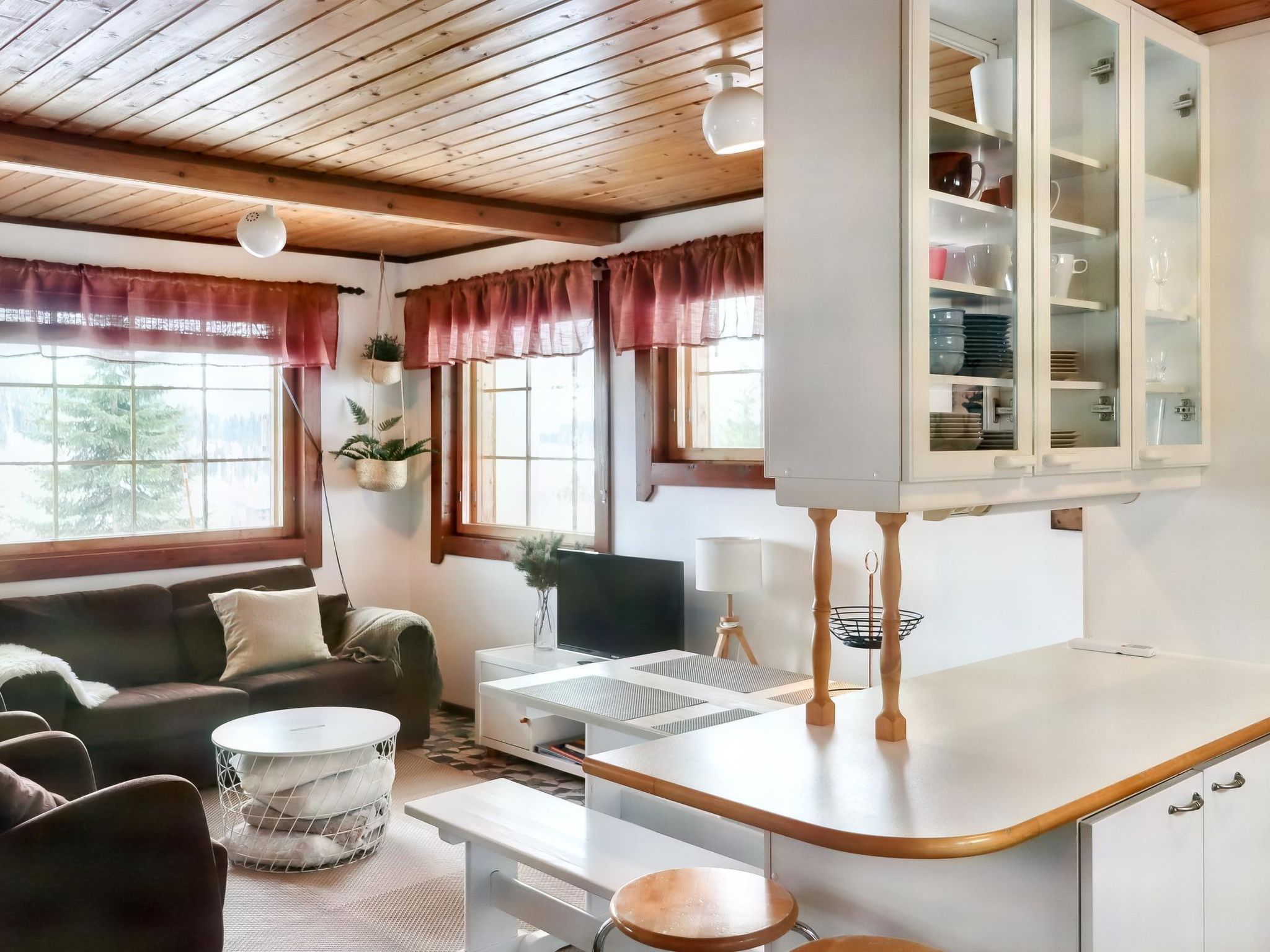 Maximal 1 Haustier/Hund erlaubt. Erdgeschoss in einer Doppelhaushälfte, im Tourismuszentrum Ukkohalla, 4 Personen, Fläche 42m2, Baujahr 1991, Küche, 2 Schlafecken mit 2 Betten und 1 Etagenbett, Sauna, Duschraum/WC, Kamin. Der Preis beinhaltet 1 Sack Brennholz, zusätzliches Holz vom Hausmeister (Euro 10/Sack). Luftwärmepumpe. Ukkohalla: Tourismuszentrum am See Syväjärvi, mit Informationszentrum, Geschäft, Restaurant, Spa, Pistenzentrum, Schneemobilpisten, Skipisten, Programmservice, Strand (weitere Informationen unter www.ukkohalla.fi). Entfernung zu den Ukkohalla-Diensten 1,5 km. Flughafen Kajaani 86 km, Oulu 170 km, Helsinki 650 km, Bushaltestelle Hyrynsalmi 18 km, Bahnhof Kontiomäki 66 km. Haustiere erlaubt. Schöne Aussicht über die Pisten und den See Syväjärvi. Das Ferienhaus steht am Anreisetag ab 16.00 Uhr bis 12.00 Uhr am Abreisetag zur Verfügung.