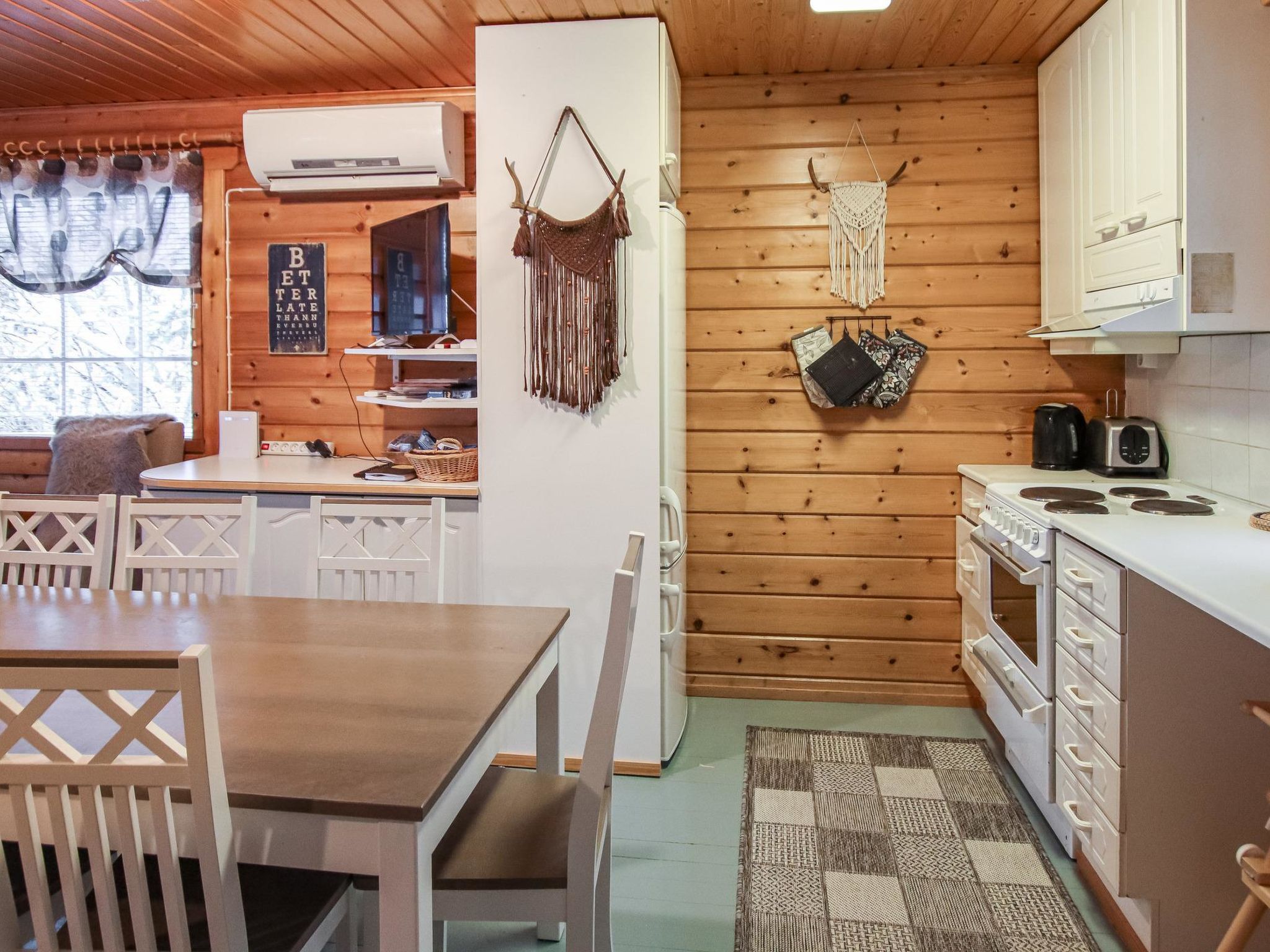 Maximal 1 Haustier/Hund erlaubt. Obergeschoss in einer Doppelhaushälfte, im Tourismuszentrum Ukkohalla, 8 + 2 Personen, Fläche 75m2, Baujahr 1990, renoviert 2000, Küche, 3 Schlafzimmer, Sauna, Dusche/WC, separates WC im Obergeschoss, Balkon, Terrasse, Kamin , Doppelbett im Schlafzimmer im Erdgeschoss, 4 Betten, Zusatzbett und Matratze im Schlafzimmer im Obergeschoss. Der Preis beinhaltet Brennholz. In der Wintersaison 2020-2021 beinhaltet der Preis 2 Skipässe. Ukkohalla: Tourismuszentrum am See Syväjärvi, mit Informationszentrum, Geschäft, Restaurant, Spa, Pistenzentrum, Schneemobilpisten, Skipisten, Programmservice, Cable Wakeboard, Strand (weitere Informationen unter www.ukkohalla.fi). Entfernung zu den Ukkohalla-Diensten 0,7 km. Flughafen Kajaani 86 km, Oulu 170 km, Helsinki 650 km, Bushaltestelle Hyrynsalmi 18 km, Bahnhof Kontiomäki 66 km. Haustiere verboten, schöne Aussicht über die Pisten und den See Syväjärvi.