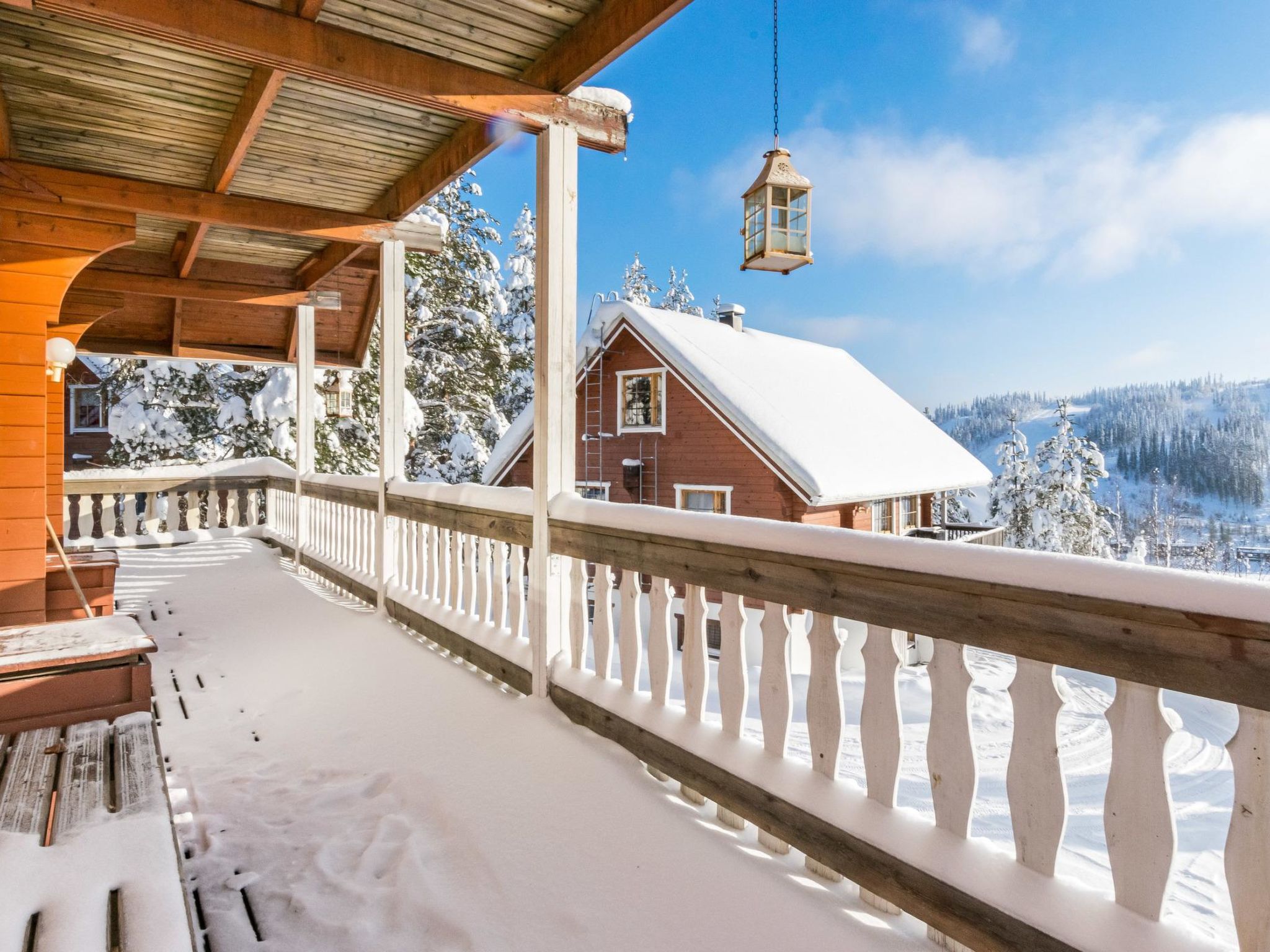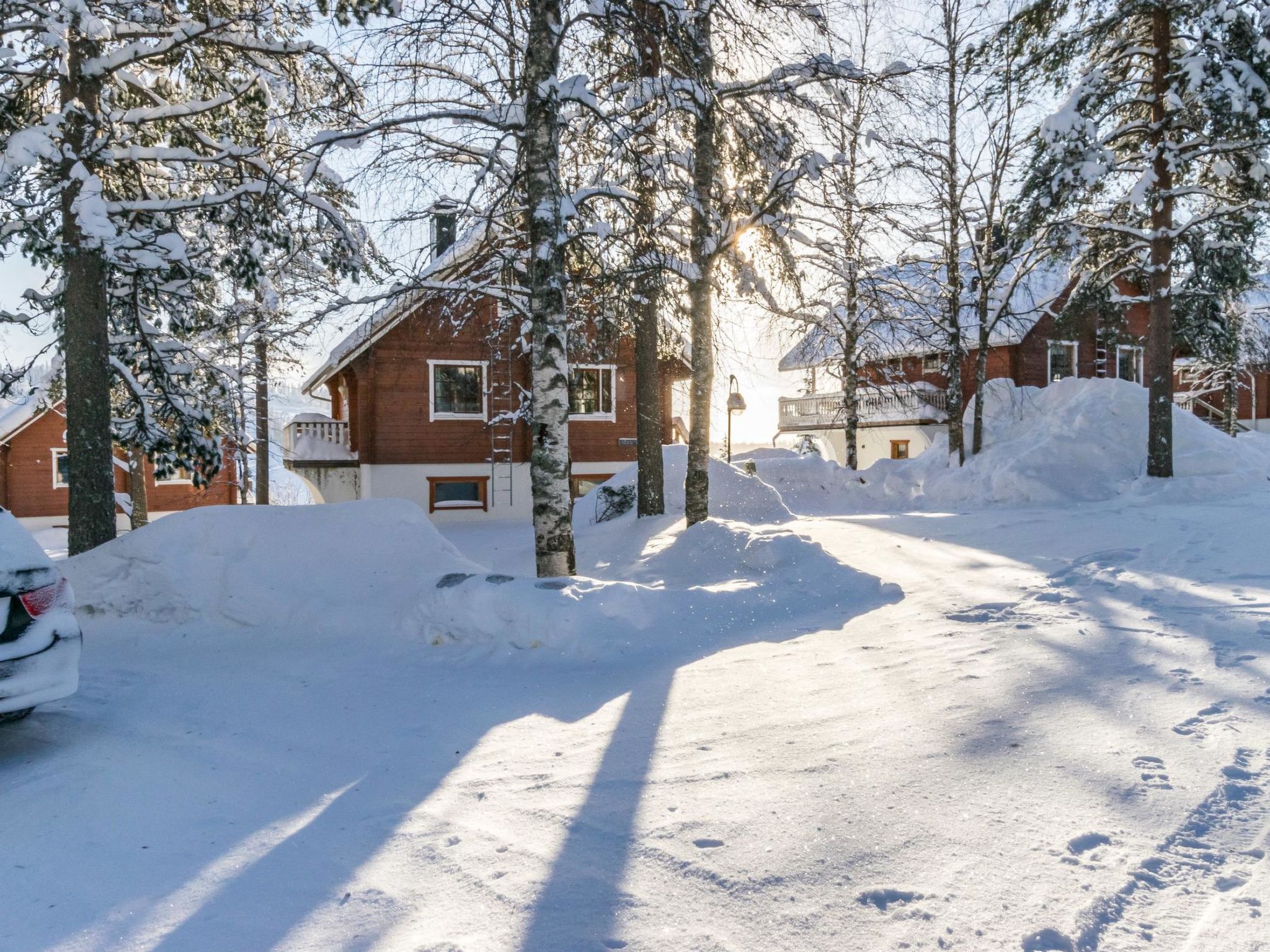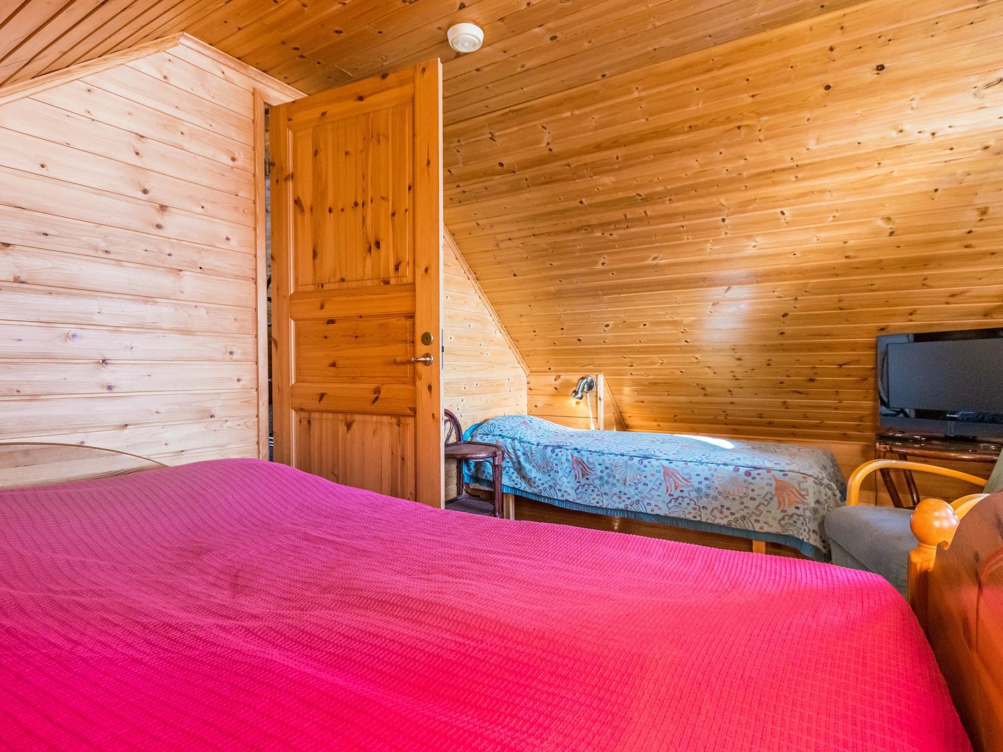 Maximal 1 Haustier/Hund erlaubt. Das Obergeschoss in einer Doppelhaushälfte, im Tourismuszentrum Ukkohalla, 8+2 Personen, Fläche 45m2 + Dachboden 30m2, Baujahr 1992. Küche, zwei Schlafzimmer mit Etagenbetten, Dachboden-Lobby, Sauna, Dusche/WC, Balkon, Kamin , 2 Doppelbetten und 2 Betten auf dem Dachboden. Der Preis beinhaltet 1 Sack Brennholz, zusätzliches Holz vom Hausmeister (Euro 10/Sack). Ukkohalla: Tourismuszentrum am See Syväjärvi, mit Informationszentrum, Geschäft, Restaurant, Spa, Pistenzentrum, Schneemobilpisten, Skipisten, Programmservice, Cable Wakeboard, Strand (weitere Informationen unter www.ukkohalla.fi). Entfernung zu den Ukkohalla-Diensten 1,5 km. Flughafen Kajaani 86 km, Oulu 170 km, Helsinki 650 km, Bushaltestelle Hyrynsalmi 18 km, Bahnhof Kontiomäki 66 km. Schöne Aussicht über die Pisten und den See Syväjärvi. Das Ferienhaus steht am Anreisetag ab 16.00 Uhr bis 12.00 Uhr am Abreisetag zur Verfügung.