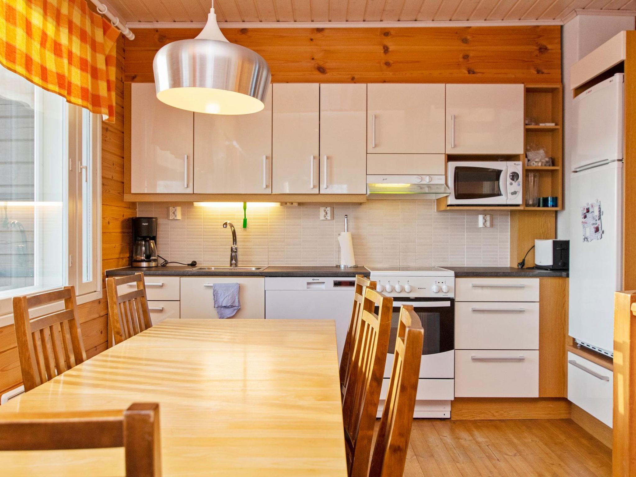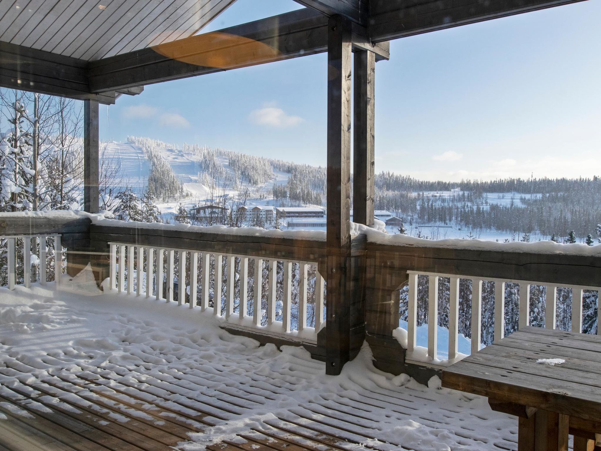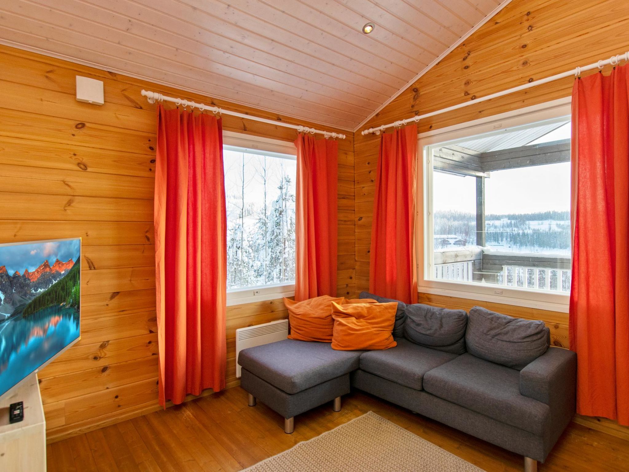 Maximal 1 Haustier/Hund erlaubt. Doppelhaushälfte, im Tourismuszentrum Ukkohalla, Fläche 68m2 + Dachboden 23m2, Baujahr 2007, Räumlichkeiten auf 3 Etagen, Küche, 2 Schlafzimmer, Dachboden, Sauna, Dusche/WC, separates WC, Kaminzimmer mit Sofa-Bett, Abstellraum, Balkon, Terrasse, Kamin und Brennholz. 2 Betten im anderen Schlafzimmer, im weiteren Schlafzimmer Doppelbett (120cm), 4 Matratzen auf dem Dachboden. Ausstattung: Elektroherd, Mikrowelle, Kühlschrank mit Gefrierfach, Dunstabzugshaube, Geschirr, Spülmaschine, Toaster, Wasserkocher, Kaffeemaschine, Reinigungsutensilien, Staubsauger, Wärmeschrank, TV, DVD, Radio, CD-Spieler, KFZ-Steckdose. Ukkohalla: Tourismuszentrum am See Syväjärvi, Informationszentrum, Geschäft, Restaurant, Spa, Pistenzentrum, Schneemobilpisten, Skipisten, Programmservice, Strand (weitere Informationen unter www.ukkohalla.fi). Entfernung zu den Ukkohalla-Diensten 1,5 km. Flughafen Kajaani 86 km, Oulu 170 km, Helsinki 650 km, Bushaltestelle Hyrynsalmi 18 km, Bahnhof Kontiomäki 66 km. Haustiere erlaubt, Blick über die Pisten und den See Syväjärvi. Das Ferienhaus steht am Anreisetag ab 16.00 Uhr bis 12.00 Uhr am Abreisetag zur Verfügung.