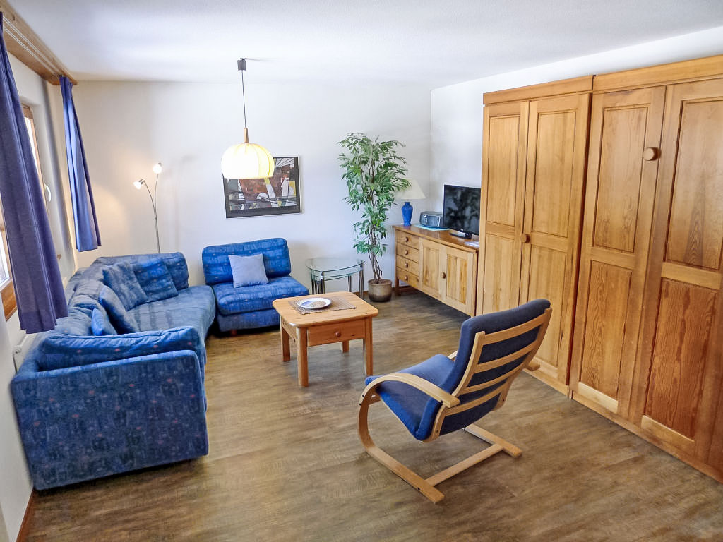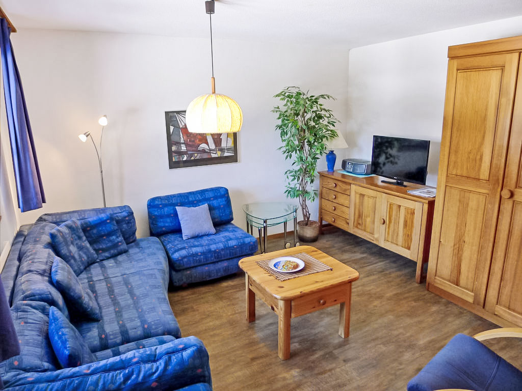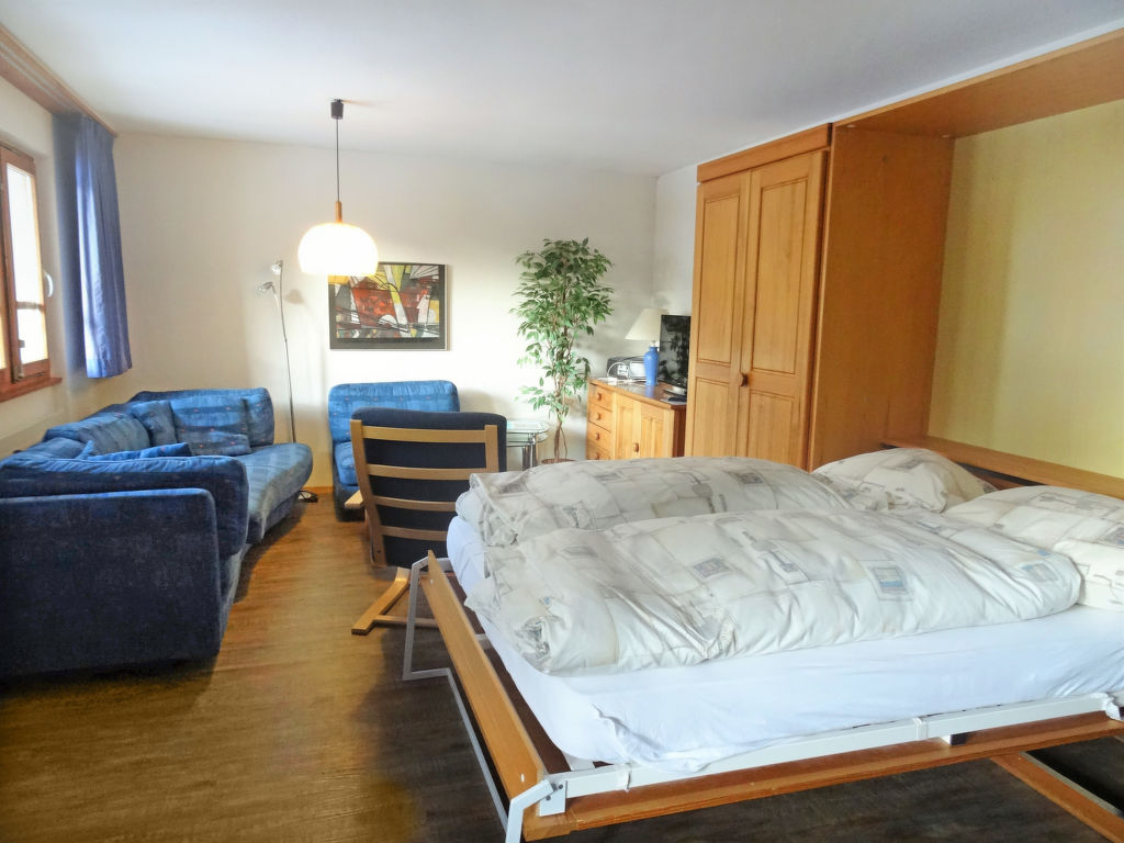 2-Zimmer-Wohnung 55 m2. Wohn-/Esszimmer mit 1 franz. Wandschrankbett und TV. 1 Doppelzimmer. Offene Küche (Backofen). Bad/WC. Gartensitzplatz. Terrassenmöbel. Sicht auf die Berge. Zur Verfügung: Internet (Wireless LAN). Bitte beachten: Nichtraucher-Unterkunft. Maximal 1 Haustier/Hund erlaubt.
