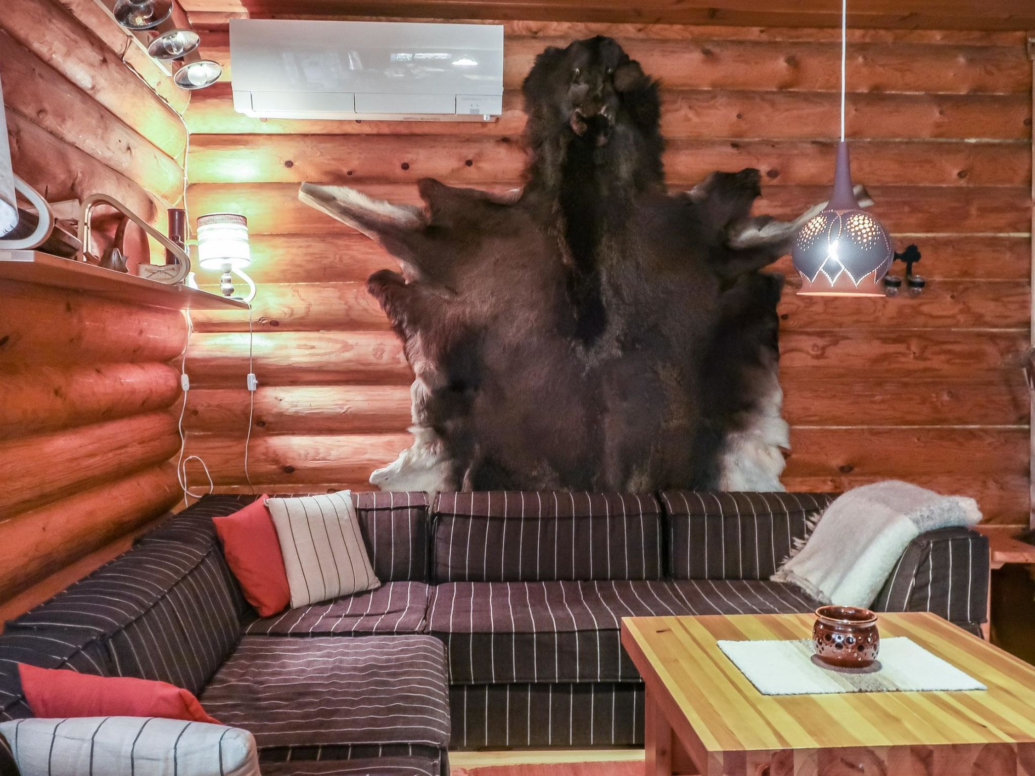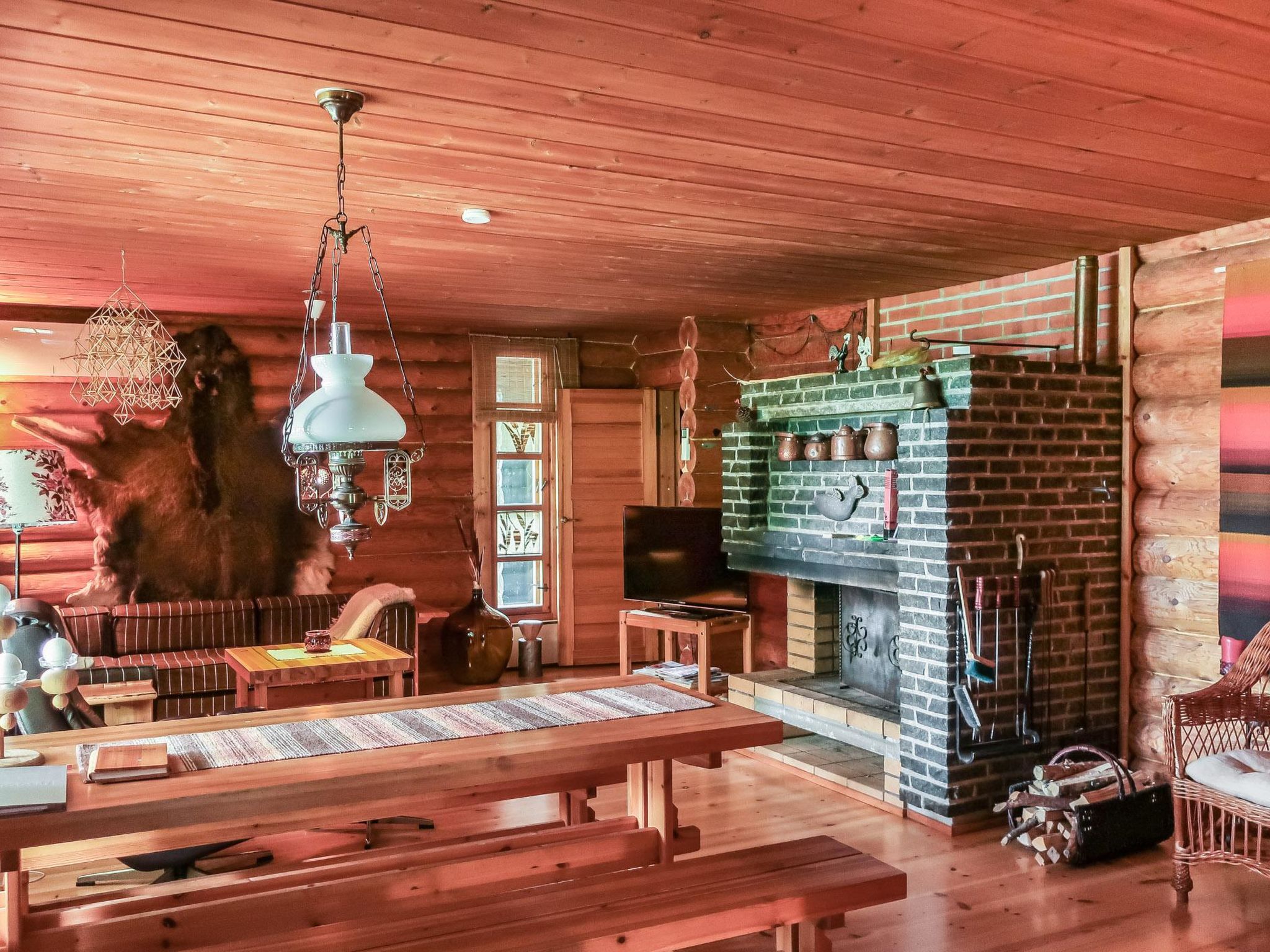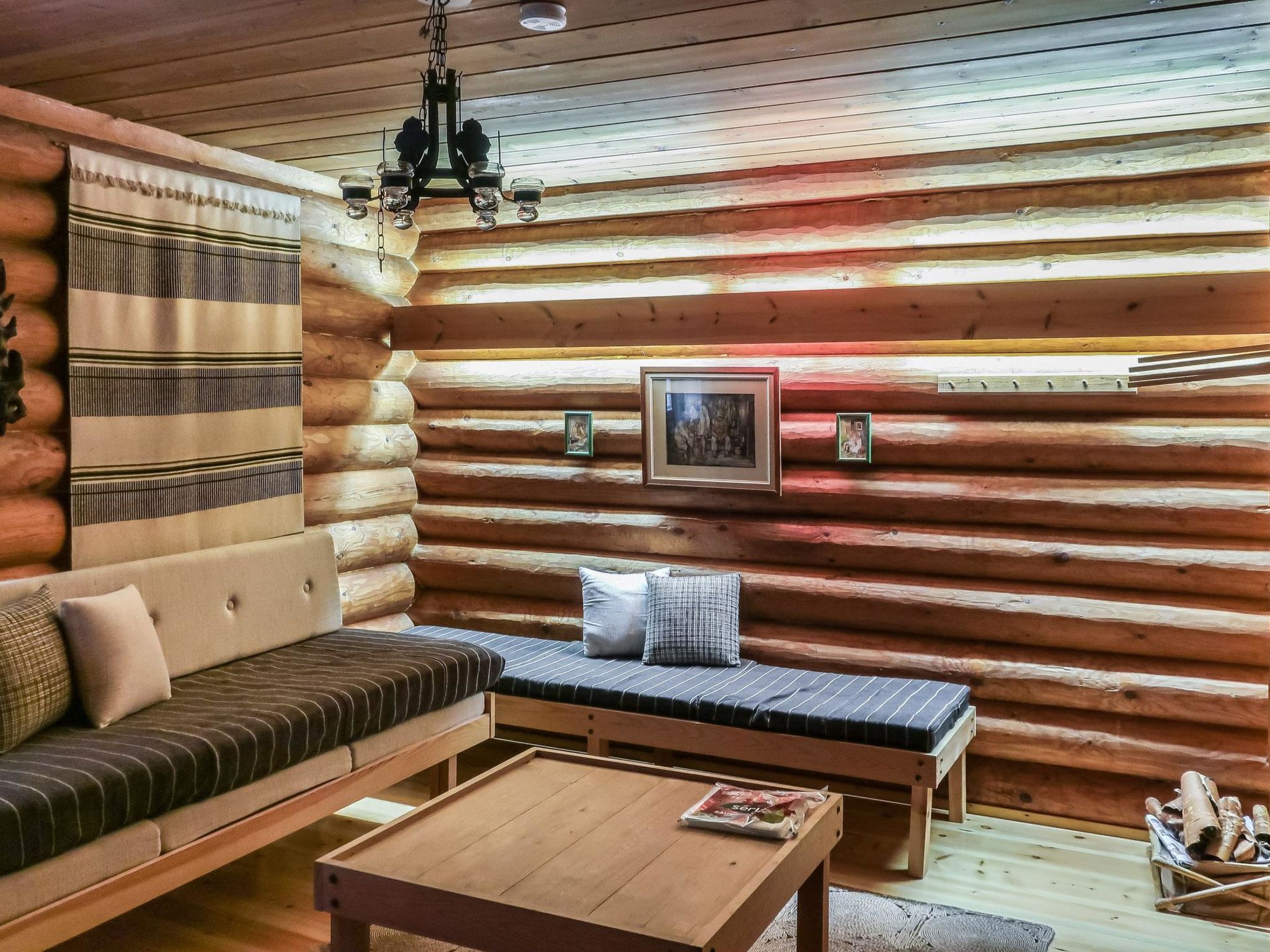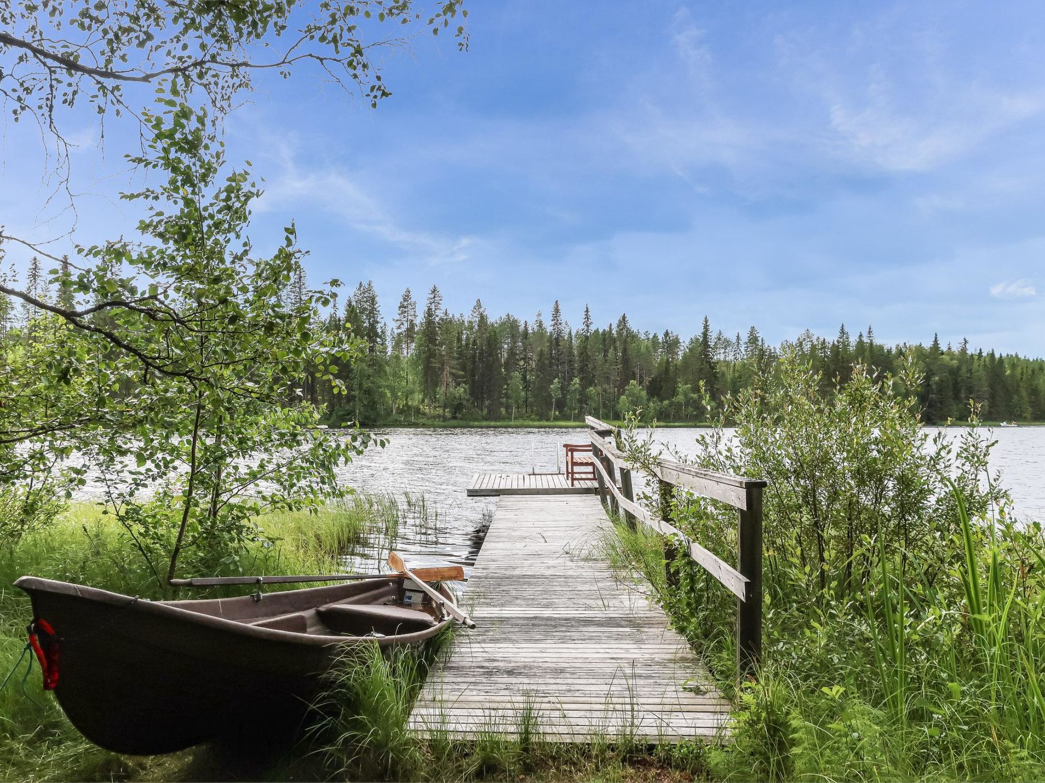 46 nordöstlich von Kajaani, Pyhännänjärvi / Hoikanlahti 40 m (Länge 11 km, Breite 200 m), gegenüberliegendes Ufer 150 m, flacher und harter Sand-/Lehmboden, eigenes Boot. Blockgebäude, Baujahr 1979, Küche, Wohnzimmer, 2 Schlafzimmer mit je 2 Betten, Ankleideraum mit Schlafsofa, Waschraum, Sauna, 2x offene Veranda. Traditionelles Ferienhaus auf einem ruhigen Grundstück.
