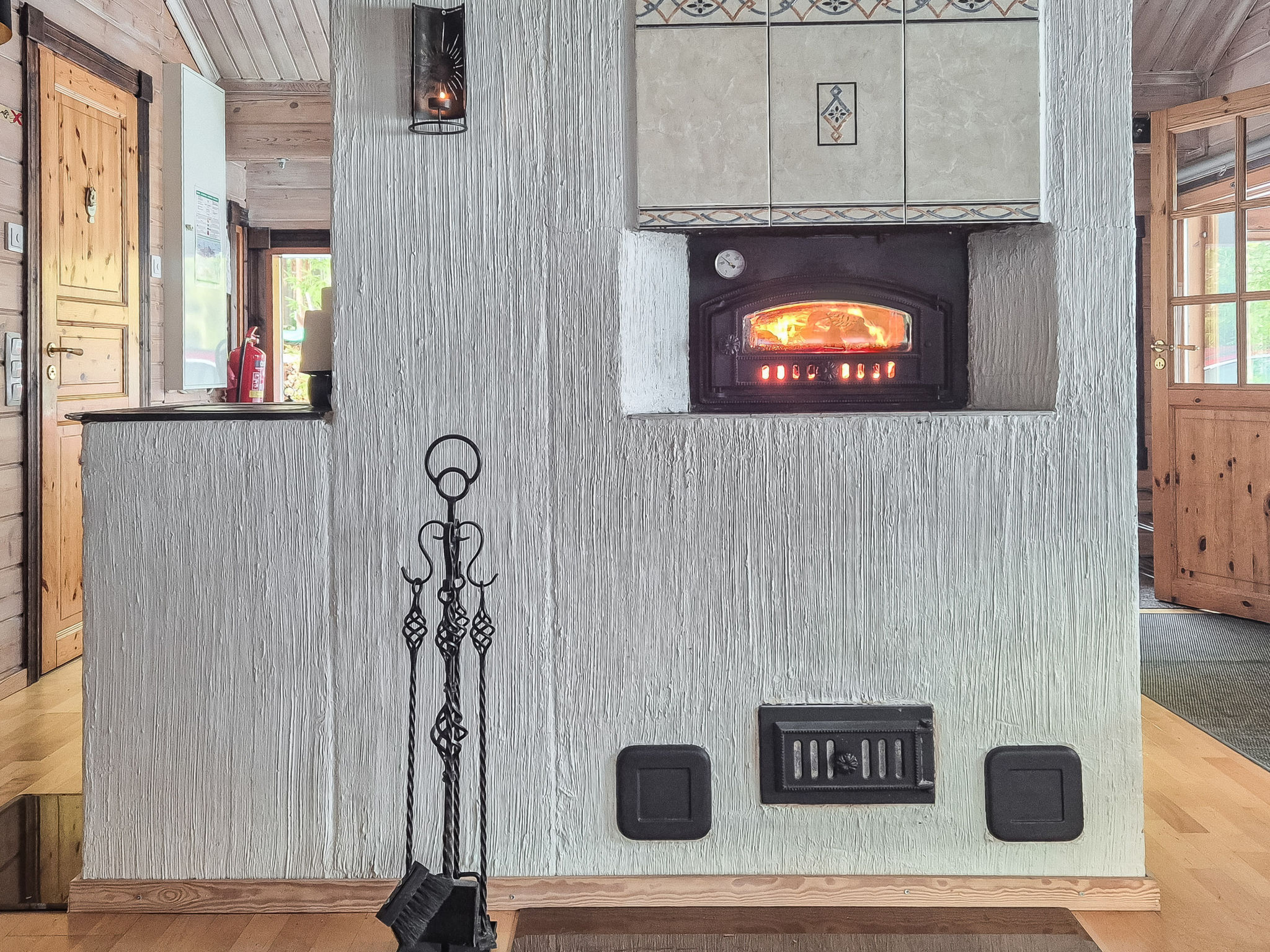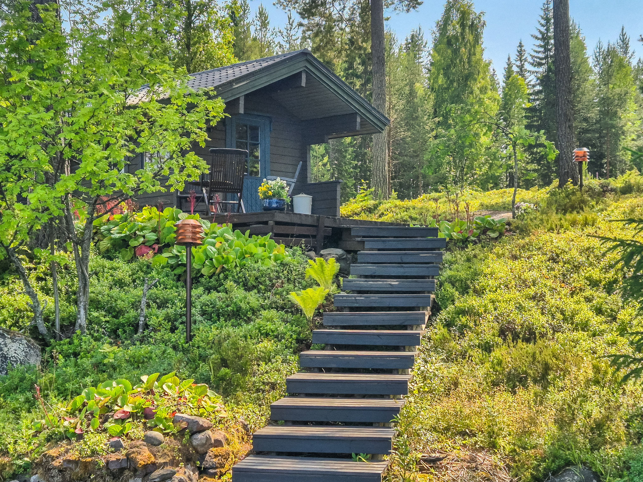 29 km östlich von Kajaani, See Nuasjärvi 30 m (Länge 30 km, Breite 5 km), ziemlich tiefes Ufer, harter Moränen-/Sandboden, eigenes Boot. Blockferienhaus, Baujahr 1999, Wohnküche, 2 Schlafzimmer mit je einem Doppelbett, Schlafboden mit 2 Betten, Waschraum, Sauna (Elektroherd), offene Veranda. Ufersauna (12 m²) mit Ankleideraum, Sauna mit elektr. Licht. Von Oktober bis April muss das Wasser aus dem Standrohr oder aus dem Badezimmer des Hauptgebäudes in die Ufersauna befördert werden. Hochwertiges, elegantes Ferienhaus, mit viel Platz im Wohnbereich. Es befindet sich am Ufer der grossen Wasserstrasse, gegenüber dem Ufer, 5 km. Gut gepflegtes Grundstück am Hang, Stufen von der Ufersauna zur Anlegestelle. Ruhige Lage. Entfernungen: Vuokatti 3.5 km, Katinkulta mit dem Boot 2 km und auf der Strasse 6 km. Nuasjärvi ist gut mit Fischen gefüllt. Das Nachbarhaus ist 8105. HINWEIS: Das Trinkwasser für das Ferienhaus stammt aus der kommunalen Wasserversorgung (hervorragende Wasserqualität), es muss also kein Trinkwasser gebracht werden.