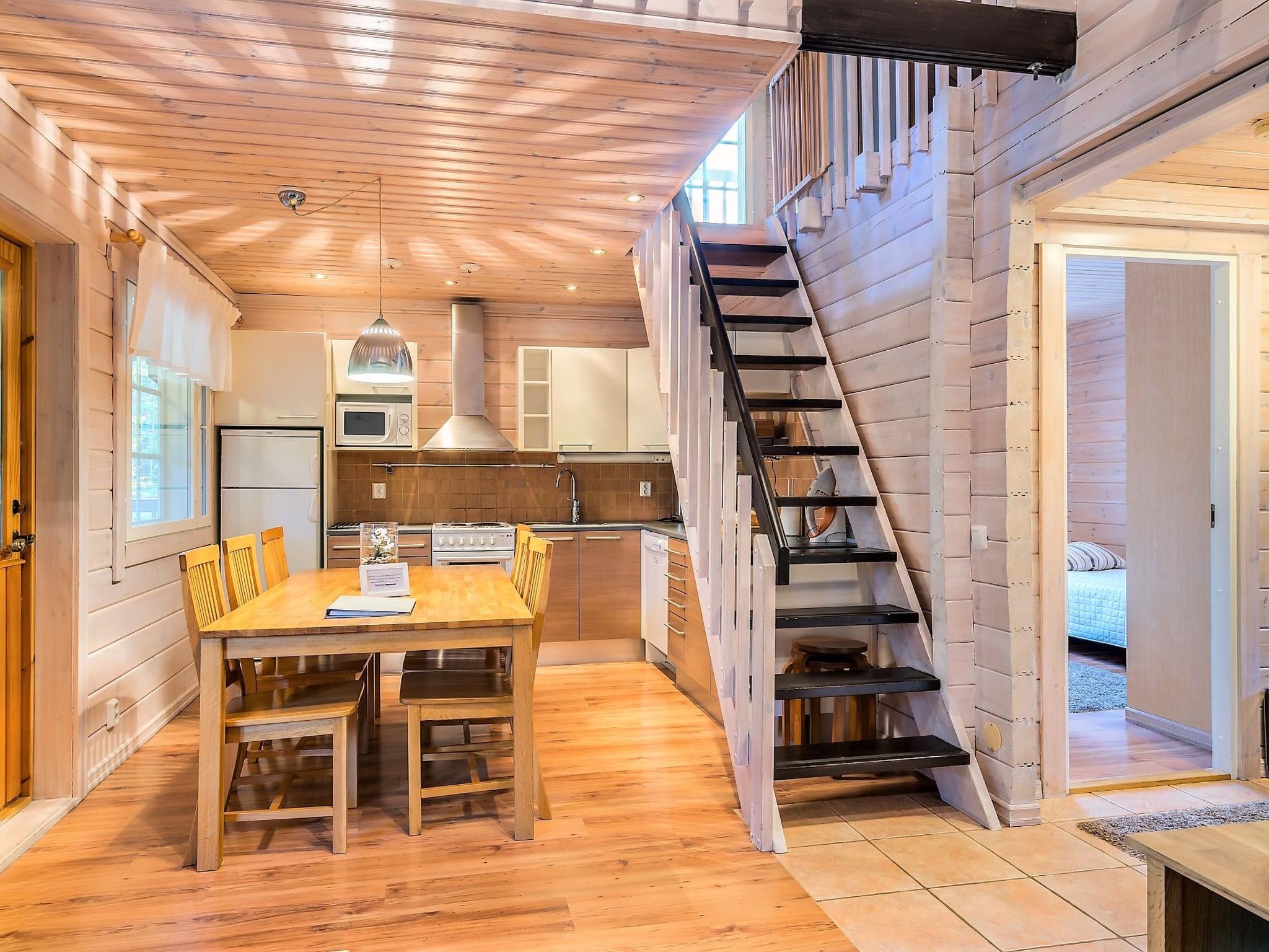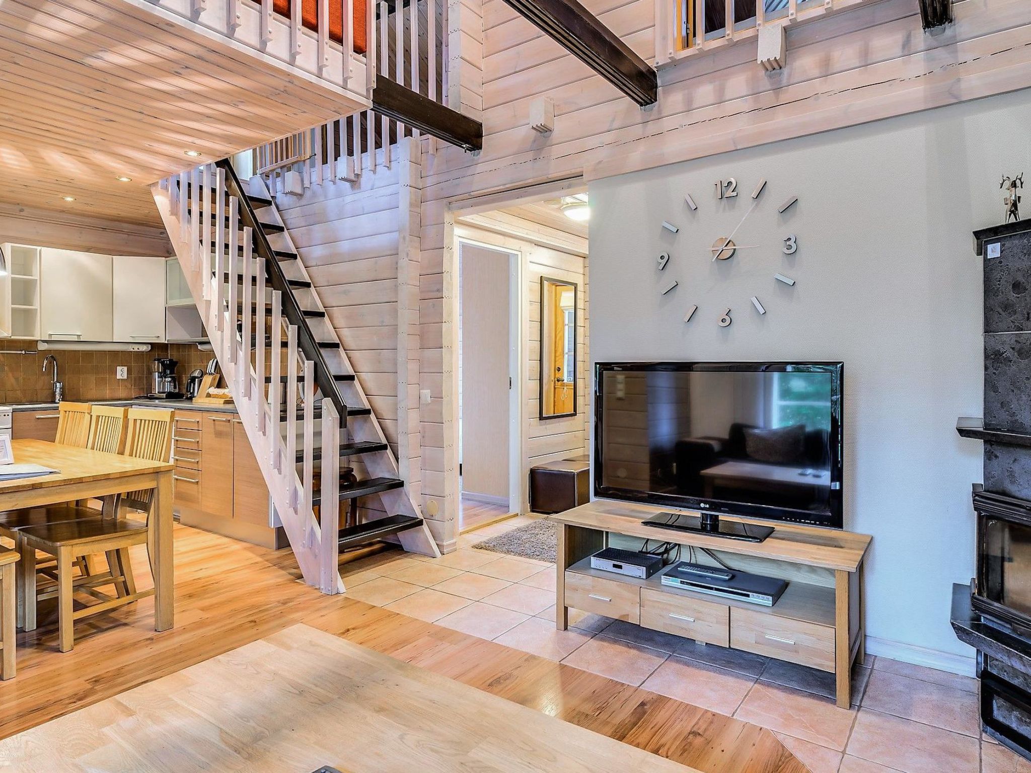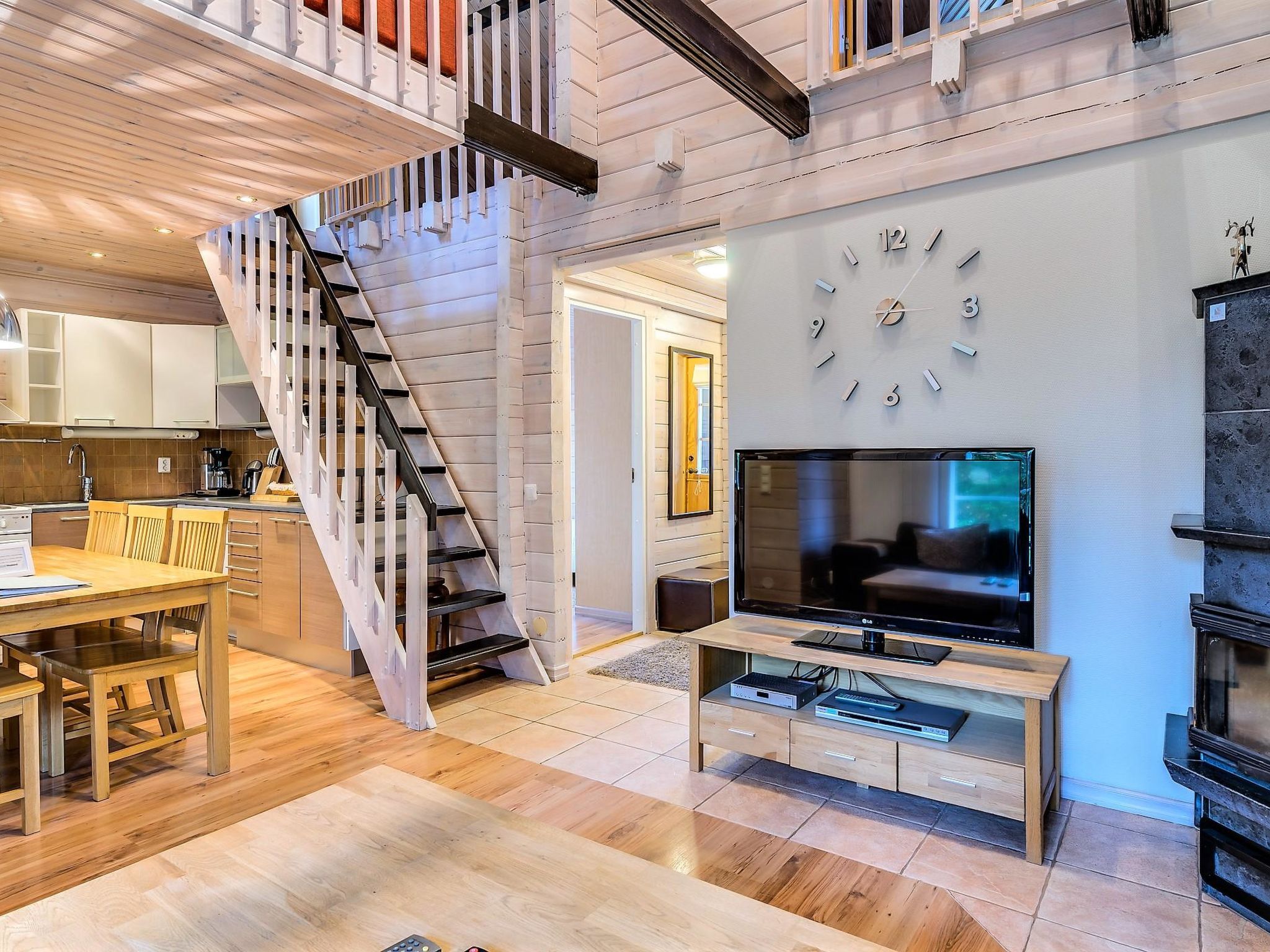 Diese Doppelblock-Haushälfte im Skigebiet Vuokatti wurde 2003 fertiggestellt. Grundfläche 82 m², Dachboden 27 m². Im Erdgeschoss gibt es Wohnküche, Schlafzimmer mit 2 Betten, Sauna (elektrische Heizung), Waschraum und Toilette. Im Obergeschoss gibt es Schlafzimmer mit 2 Betten, Loft-Vorraum mit 1 Bett (140 cm breit), sowie Schlafsofa und Toilette. Bett und Stuhl für ein Baby. Internetverbindung (drahtlos, Geschwindigkeit 1 MB). Kajaani 33 km, Sotkamo 7 km, Vuokatti Skipiste 100 m, Langlaufloipe 50 m. Strand 1.5 km. Reinigung ist nicht inbegriffen und kann als zusätzliche Dienstleistung gebucht werden. Bettwäsche kann gemietet werden. Haustiere sind nicht erlaubt. Anreise um 16 Uhr am Anreisetag und Abreise (HOX) um 11 Uhr am Abreisetag, auch bei einem Wochenendaufenthalt.