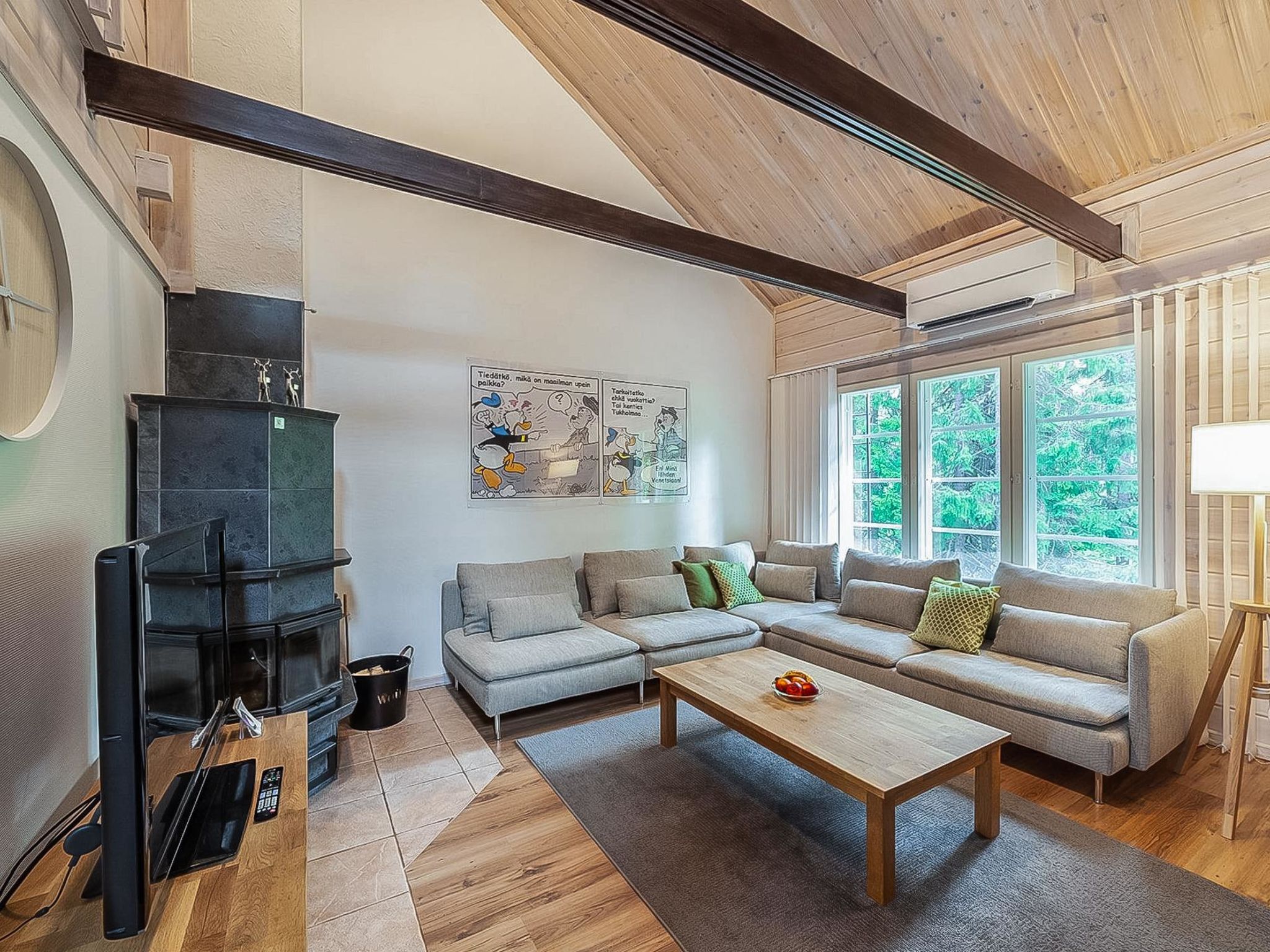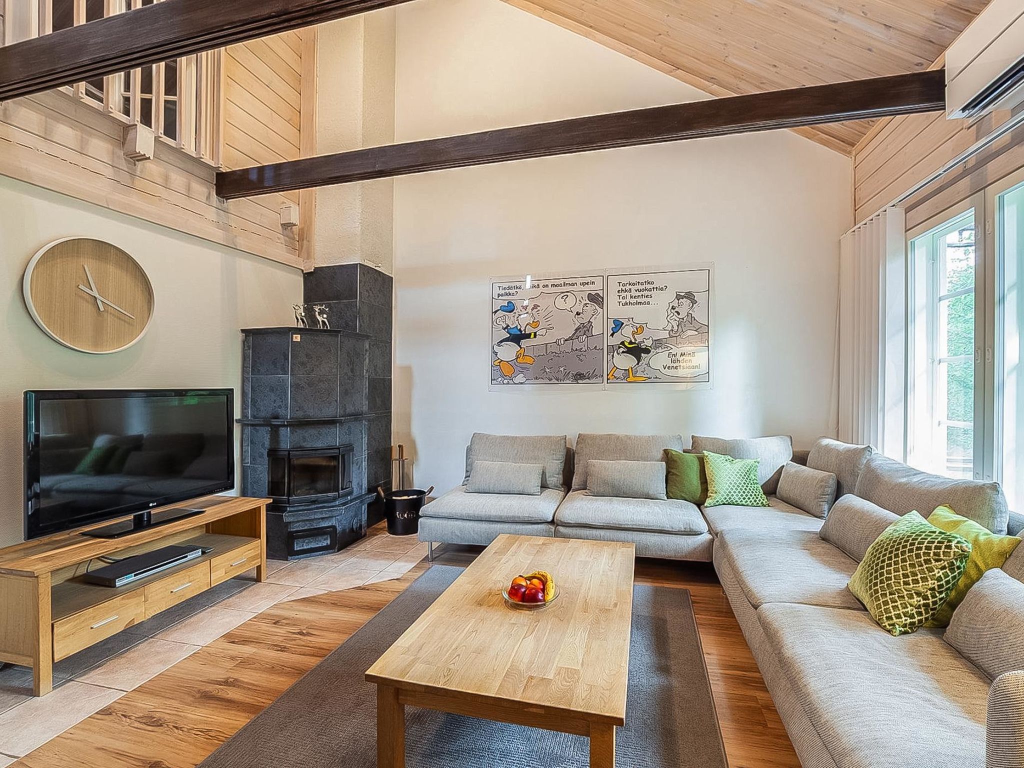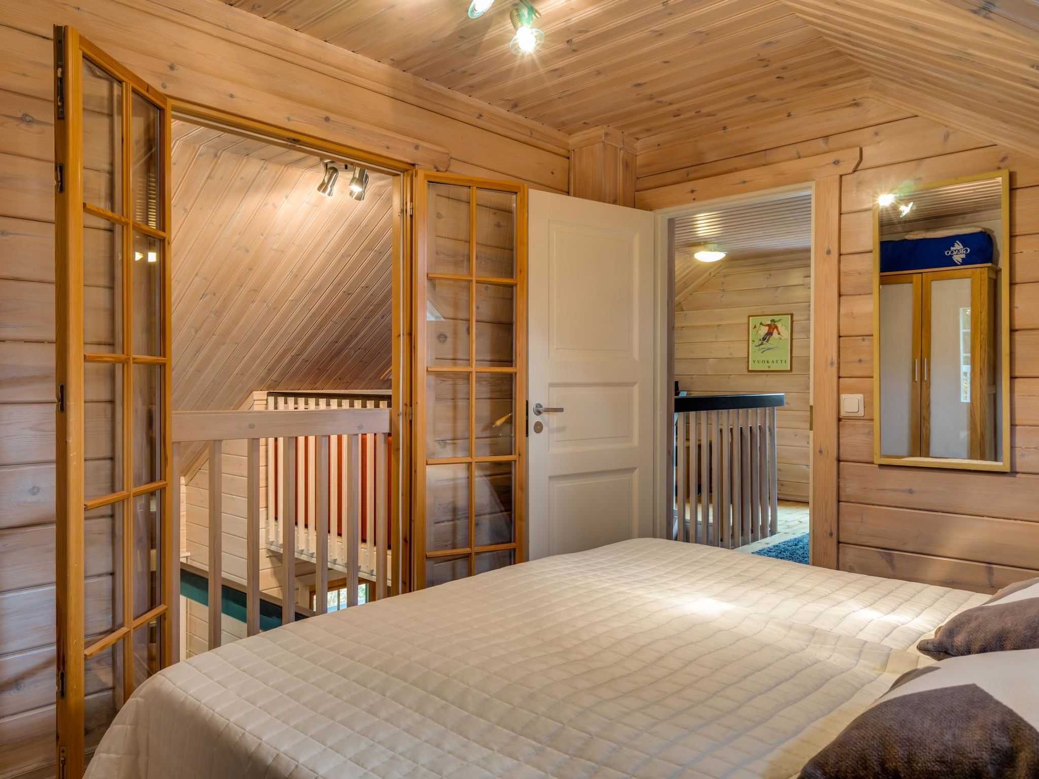 Diese Doppelblock-Haushälfte im Skigebiet Vuokatti wurde 2003 fertiggestellt. Grundfläche 82 m², Dachboden 27 m². Im Erdgeschoss gibt es Wohnküche, Schlafzimmer mit 2 Betten, Sauna (elektrische Heizung), Waschraum und Toilette. Im Obergeschoss gibt es Schlafzimmer mit 2 Betten, Loft-Vorraum mit 1 Bett (140 cm breit), sowie Schlafsofa und Toilette. Bett und Stuhl für ein Baby. Internetverbindung (drahtlos, Geschwindigkeit 1 MB). Kajaani 33 km, Sotkamo 7 km, Vuokatti Skipiste 100 m, Langlaufloipe 50 m. Strand 1.5 km. Reinigung ist nicht inbegriffen und kann als zusätzliche Dienstleistung gebucht werden. Bettwäsche kann gemietet werden. Haustiere sind nicht erlaubt. Anreise um 16 Uhr am Anreisetag und Abreise (HOX) um 11 Uhr am Abreisetag, auch bei einem Wochenendaufenthalt.