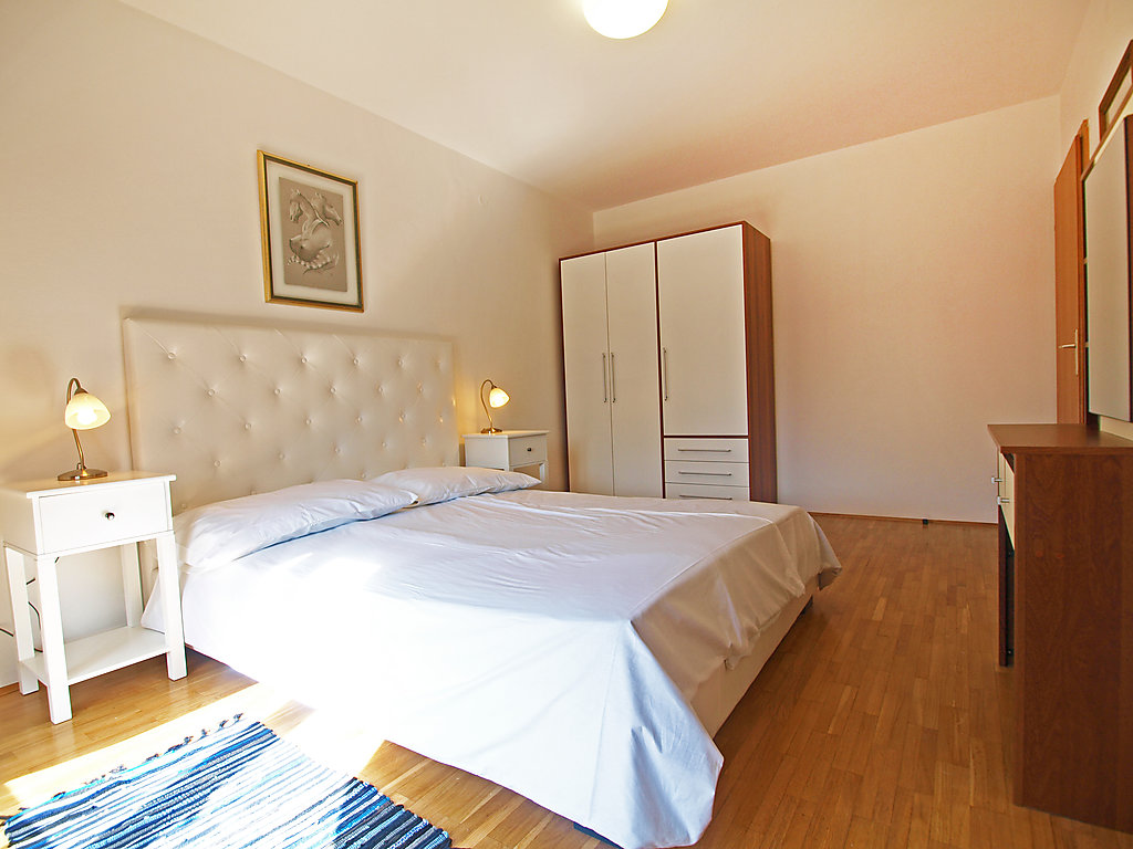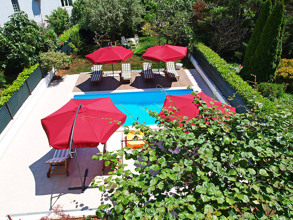 Reihenhaus "Eufemia", auf 3 Stockwerken. Im Ortsteil Veruda Porat, 2 km vom Zentrum von Pula, 400 m vom Meer, 1 km vom Strand. Zur Alleinbenutzung: Grundstück 450 m2 (eingezäunt), gepflegter Garten mit Blumen und Bäumen, Schwimmbad eckig (24 m2, 100 - 140 cm tief, 09.05.-26.09.) mit Innentreppe. Aussendusche, Grill, Kinderspielplatz (Schaukel). Im Hause: Internetzugang, Waschmaschine. Parkplatz beim Haus auf dem Grundstück. Einkaufsgeschäft 50 m, Restaurant 70 m, Bäckerei 50 m, Bushaltestelle 80 m, Kieselstrand 1 km, Strandbad 1 km. Jacht-Hafen 400 m, Sportzentrum 1.5 km. Die Nachbarschaft ist sehr lärmempfindlich. Ruhe und gutes Benehmen wird erwartet. Von Gruppen junger Leute wird ein doppeltes Pfand verlangt bei der Ankunft.