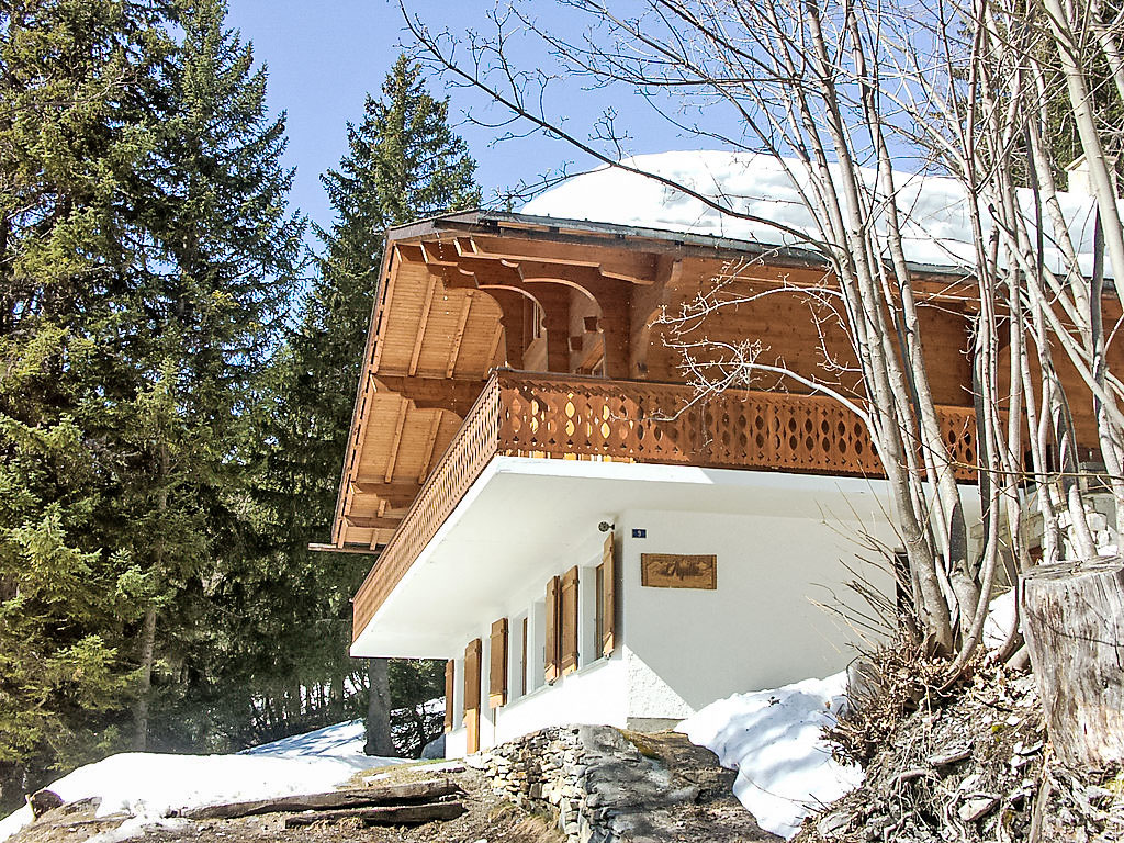 Grosses Chalet "Arpille", umgeben von Bäumen. Am Ortsrand, 400 m vom Zentrum, ruhige, sonnige Lage, im Grünen. Zur Alleinbenutzung: Garten, Parkplatz beim Haus. Einkaufsgeschäft, Restaurant 400 m, Thermalbad "Anzère Spa & Wellness" 500 m.