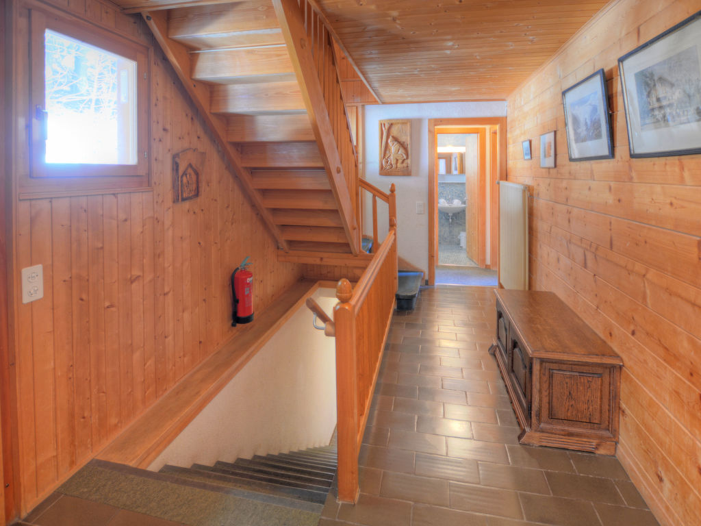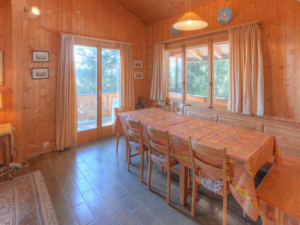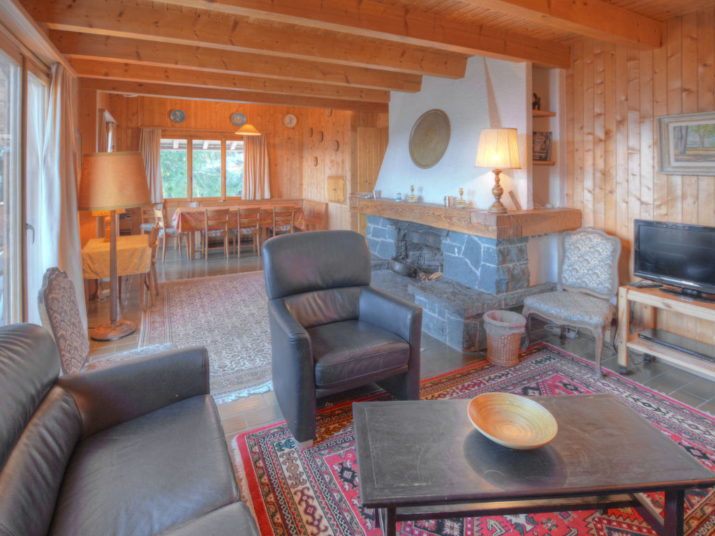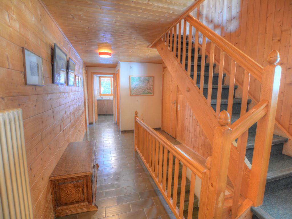 8-Zimmer-Chalet 175 m2 auf 3 Stockwerken. Zweckmässig und gemütlich eingerichtet: 2 Zimmer, jedes Zimmer mit 1 x 2 Etagenbetten. 1 Zimmer mit 2 Betten. Bad, sep. WC. Obergeschoss: grosses Wohn-/Esszimmer mit offenem Kamin, TV und DVD. Ausgang zum Balkon, Richtung Süden. 1 Zimmer mit 2 Betten. Ausgang zum Balkon. Küche (3 Kochplatten, Backofen, Geschirrspüler) mit Durchreiche. Bad, sep. WC. 2. Obergeschoss: 1 Zimmer mit 1 x 2 Etagenbetten, Waschbecken. 1 Zimmer mit 2 Betten. Bad/WC. Balkon, Gartensitzplatz. Terrassenmöbel. Schöne Sicht auf die Berge, den Garten und die Landschaft. Zur Verfügung: Internet (Wireless LAN, gratis). Parkplatz (4 Autos). Bitte beachten: Nichtraucher-Unterkunft. Maximal 1 Haustier/Hund erlaubt.