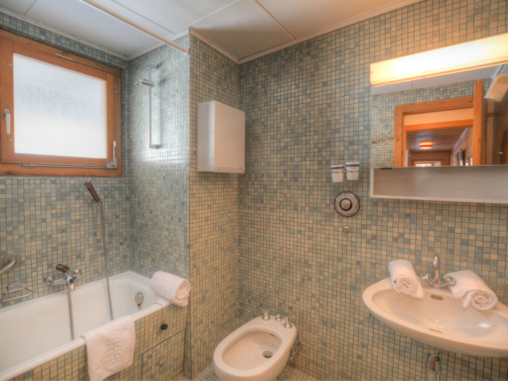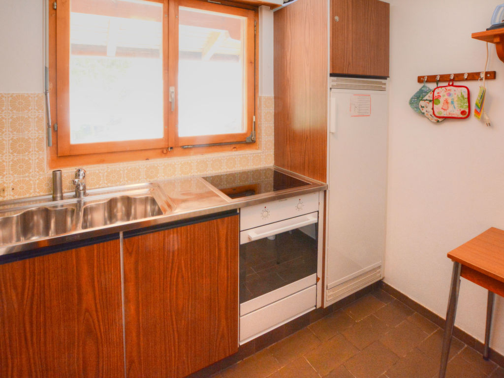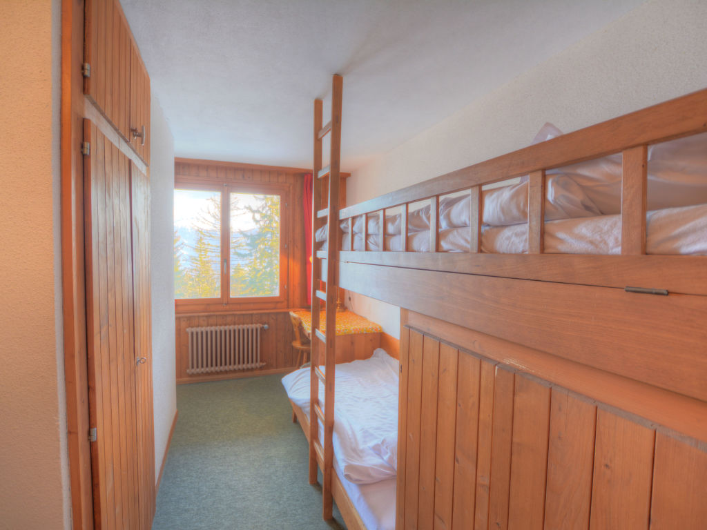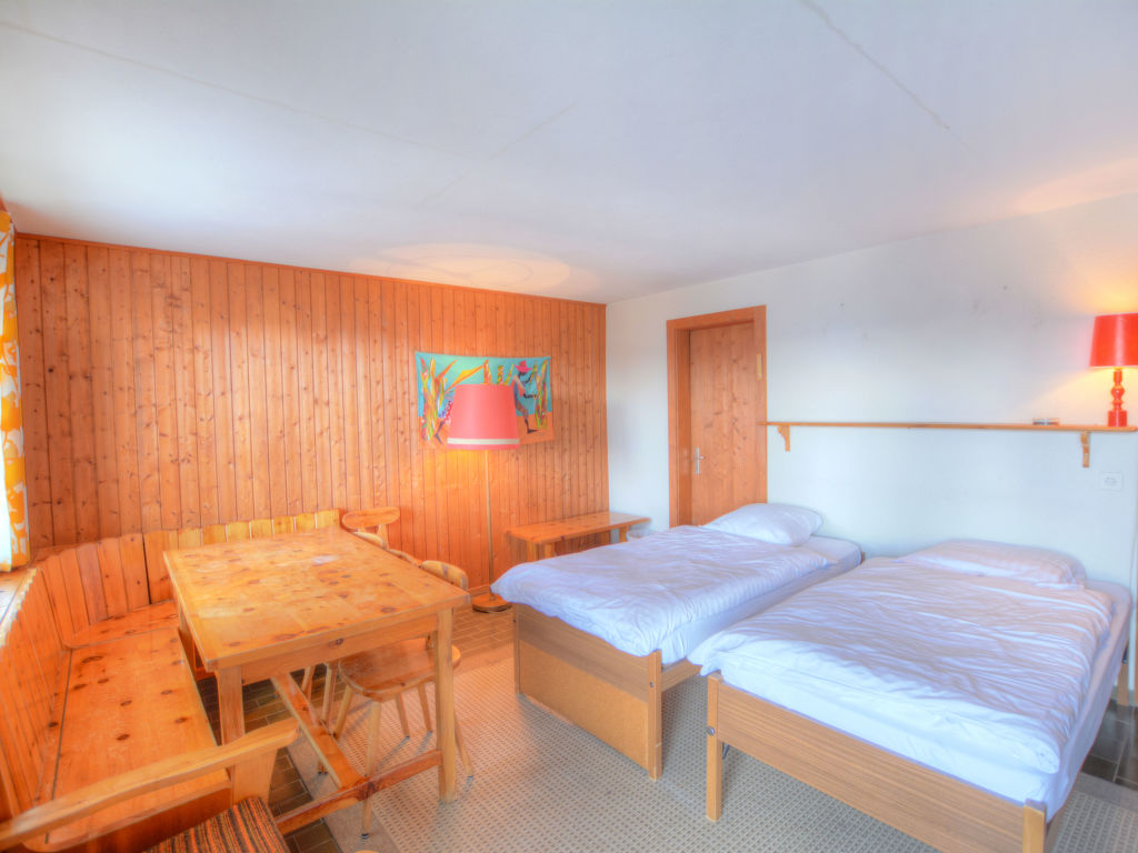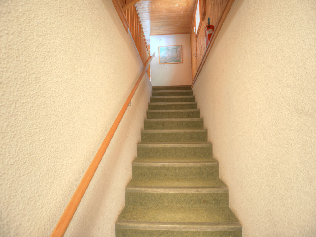 8-Zimmer-Chalet 175 m2 auf 3 Stockwerken. Zweckmässig und gemütlich eingerichtet: 2 Zimmer, jedes Zimmer mit 1 x 2 Etagenbetten. 1 Zimmer mit 2 Betten. Bad, sep. WC. Obergeschoss: grosses Wohn-/Esszimmer mit offenem Kamin, TV und DVD. Ausgang zum Balkon, Richtung Süden. 1 Zimmer mit 2 Betten. Ausgang zum Balkon. Küche (3 Kochplatten, Backofen, Geschirrspüler) mit Durchreiche. Bad, sep. WC. 2. Obergeschoss: 1 Zimmer mit 1 x 2 Etagenbetten, Waschbecken. 1 Zimmer mit 2 Betten. Bad/WC. Balkon, Gartensitzplatz. Terrassenmöbel. Schöne Sicht auf die Berge, den Garten und die Landschaft. Zur Verfügung: Internet (Wireless LAN, gratis). Parkplatz (4 Autos). Bitte beachten: Nichtraucher-Unterkunft. Maximal 1 Haustier/Hund erlaubt.