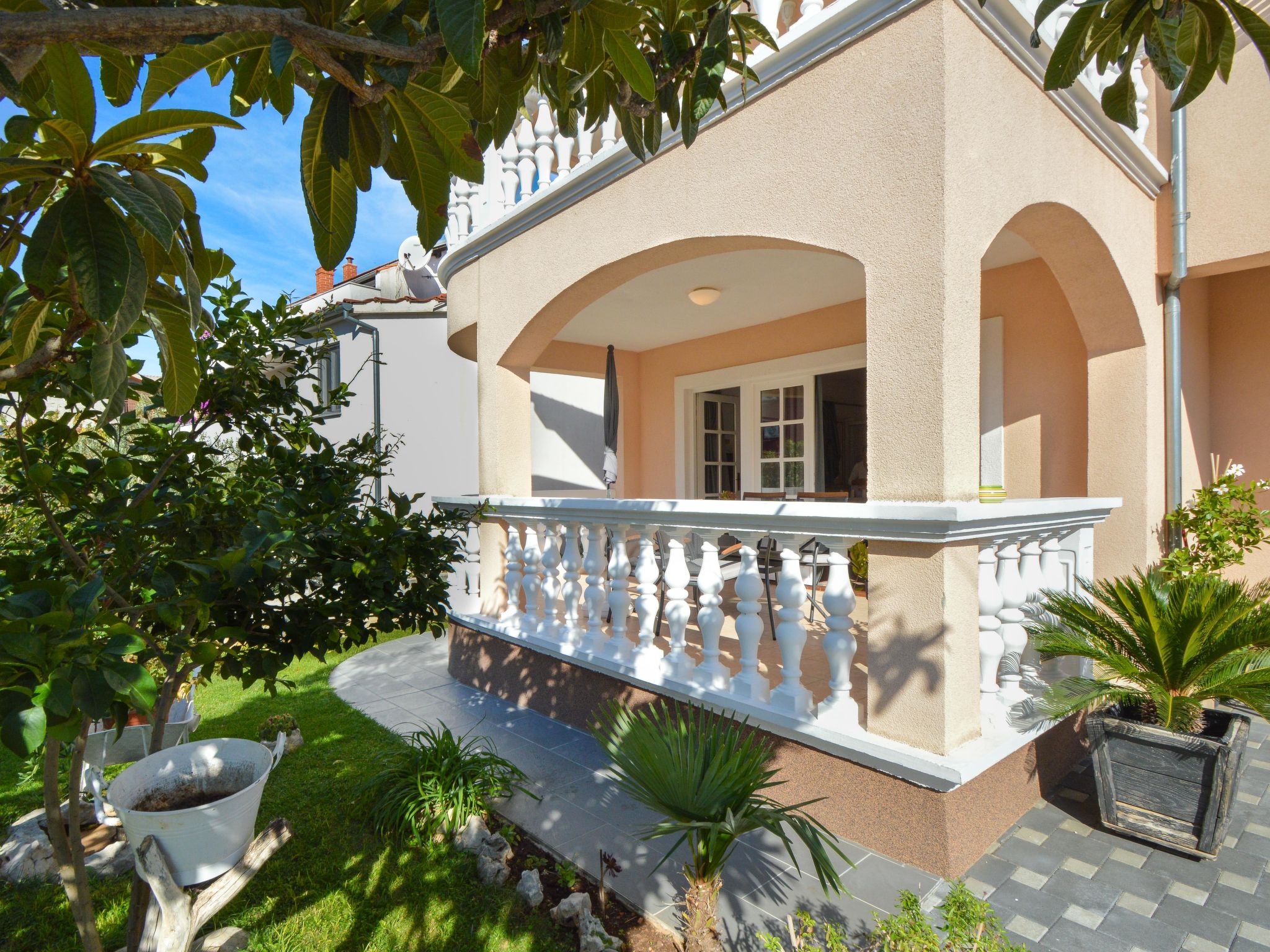 Schönes Mehrfamilienhaus "Mladen". 4 Wohnungen im Ferienhaus. Ruhige, sonnige Lage, 400 m vom Meer, 400 m vom Strand. Zur Mitbenutzung: Grill. Im Hause: Internetzugang. Parkplatz beim Haus. Einkaufsgeschäft, Restaurant 200 m, Kieselstrand 400 m.