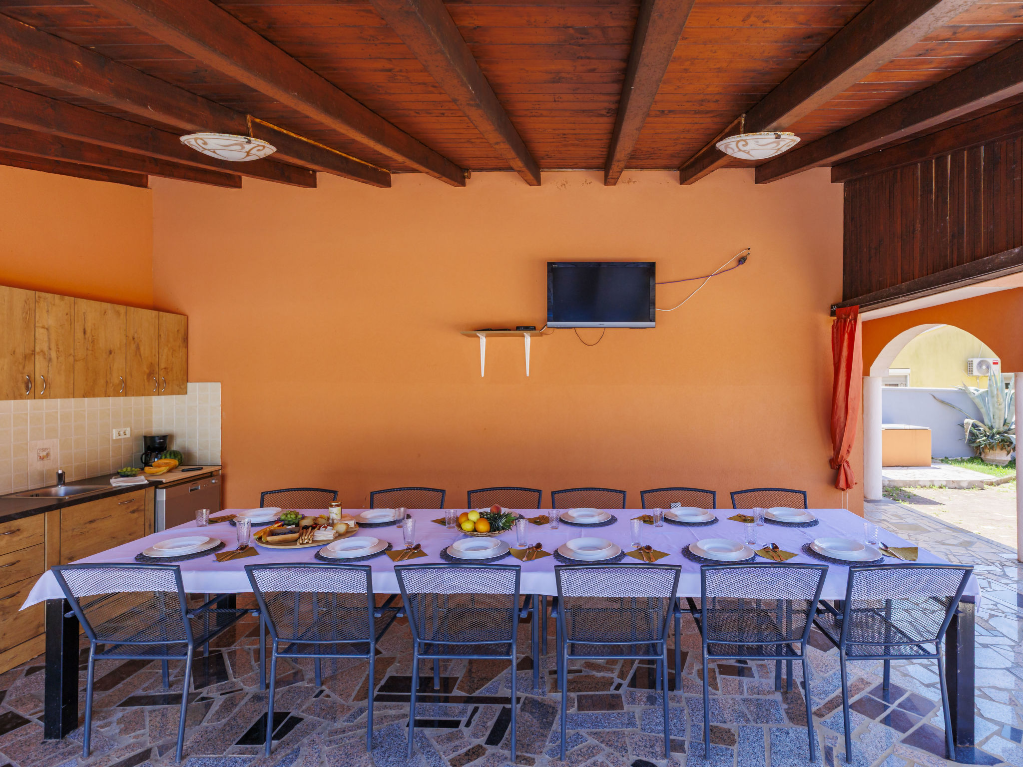 Einfamilienhaus "VIlla Eldina (PUL485)", auf 2 Stockwerken. Im Weiler Škatari, 4 km vom Zentrum von Pula, 4 km vom Meer, 4 km vom Strand, in einer Sackgasse. Zur Alleinbenutzung: Grundstück 1'000 m2 (eingezäunt) mit Rasen, Schwimmbad eckig (8 x 4 m, 150 cm tief, 14.05.-08.10.). WC im Poolbereich, Aussendusche, Grill (Rutschbahn, Schaukel). Im Hause: Internetzugang, Waschmaschine. Zufahrt bis zum Haus (200 m Naturweg). Parkplatz (für 4 Autos) beim Haus auf dem Grundstück. Einkaufsgeschäft 1 km, Restaurant 1 km, Kieselstrand 4 km, Felsstrand 4 km. Bitte beachten: Flugplatz 8 km vom Haus. Sommerküche (Kochherd, Kühlschrank).