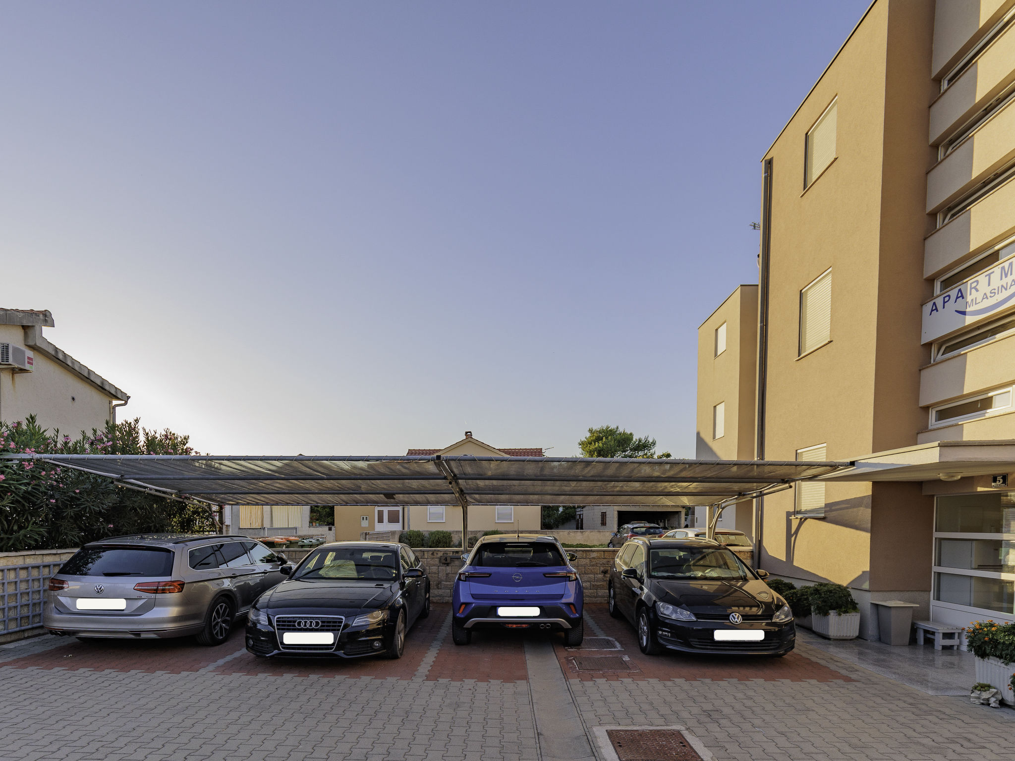 Mehrfamilienhaus "Mlasina". 300 m vom Zentrum von Nin, 150 m vom Meer, 1.2 km vom Strand. Zur Mitbenutzung: Grundstück 500 m2 (eingezäunt), Schwimmbad (7 x 3 m, 150 cm tief, saisonale Verfügbarkeit: 11.Mai.-21.Sep.). Tischtennis, Gartenmöbel, Grill. Im Hause: Internetzugang, Waschmaschine (extra). Parkplatz beim Haus auf dem Grundstück. Einkaufsgeschäft, Restaurant 100 m, Sandstrand 1.2 km, Felsstrand 1.2 km, betonierter Strand 1.2 km. Keine Vermietung an Jugendgruppen. Das veranstalten von Partys ist nicht gestattet.