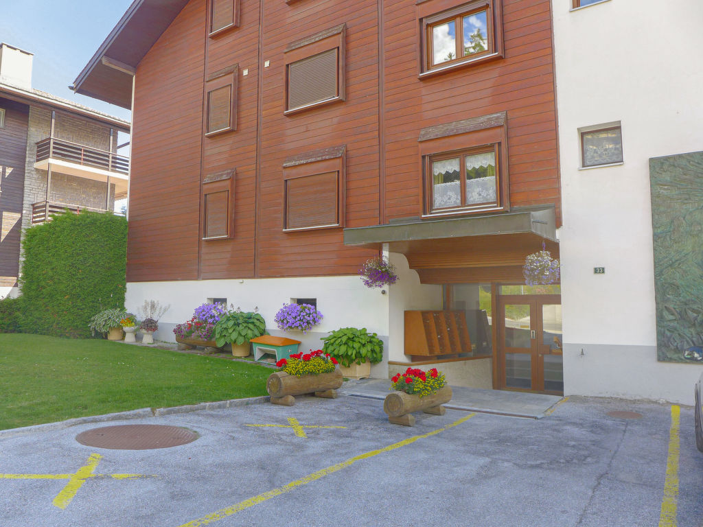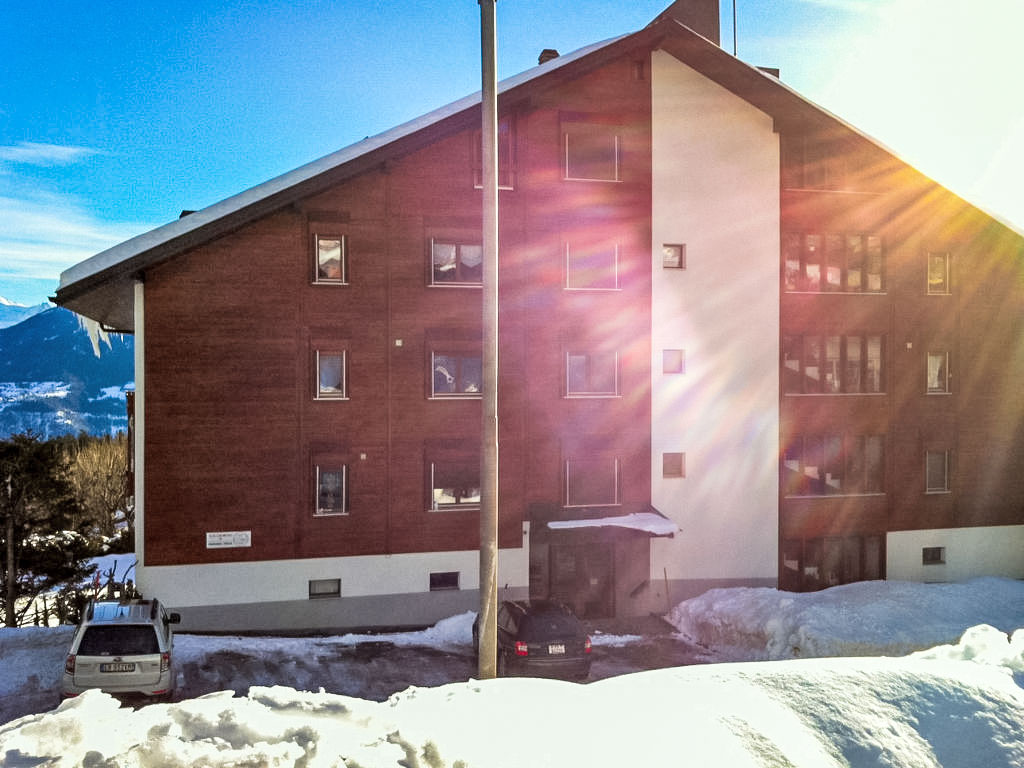 Mehrfamilienhaus "San Giorgio A/B". Am Ortsrand, 1 km vom Zentrum. Im Hause: Fahrstuhl, Skiraum, Waschmaschine, Wäschetrockner (zur Mitbenutzung, extra). Parkplatz (beschränkte Anzahl). Bushaltestelle "Primeroses" 100 m. Golfplatz (9 Loch) 500 m, Skisportanlagen 1.5 km, Langlaufloipe 500 m. Bitte beachten: In diesem Haus sind weitere Ferienwohnungen mietbar. "Route de la Moubra": Pendelbusverkehr im Winter und von Ende Juni bis Mitte September.