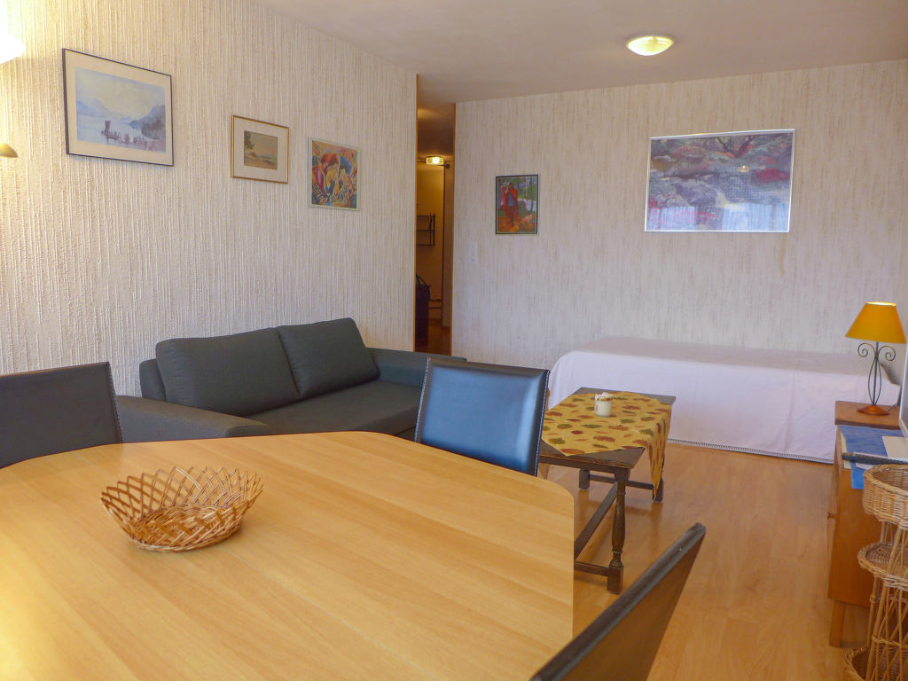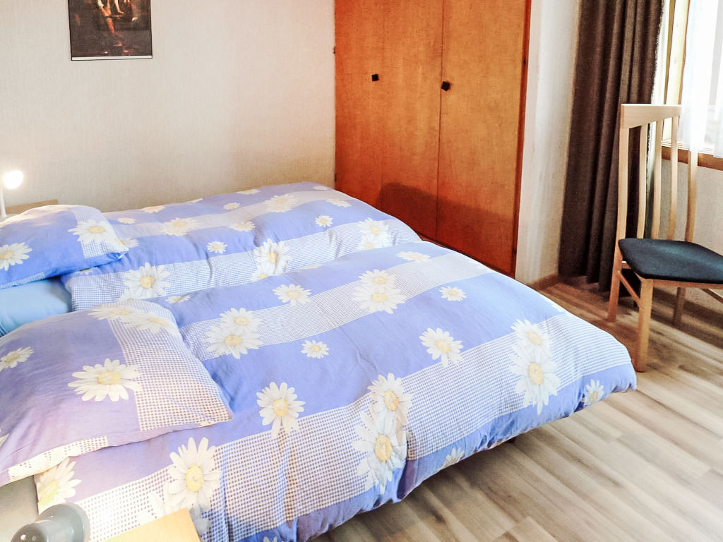 2-Zimmer-Wohnung 50 m2, im erhöhten Erdgeschoss. Wohn-/Esszimmer mit 1 Ausziehbett (2 Pers. 2 x 90 cm, Länge 190 cm), Kabel-TV (Flachbildschirm). 1 Zimmer mit 2 Betten (90 cm, Länge 200 cm). Küche (Backofen, Geschirrspüler, 3 Glaskeramikherd Platten, Toaster, Wasserkocher, Mikrowelle, elektrische Kaffeemaschine, Kapseln für die Kaffeemaschine (NESPRESSO) extra, Fondue Set (Käse)). Bad/Bidet/WC. Kleiner Balkon 3 m2, Südlage. Balkonmöbel. Schöne Sicht auf die Berge und die Landschaft. Zur Verfügung: Haartrockner. Internet (Wireless LAN, gratis). Bitte beachten: Nichtraucher-Unterkunft. Maximal 1 Haustier/Hund erlaubt.