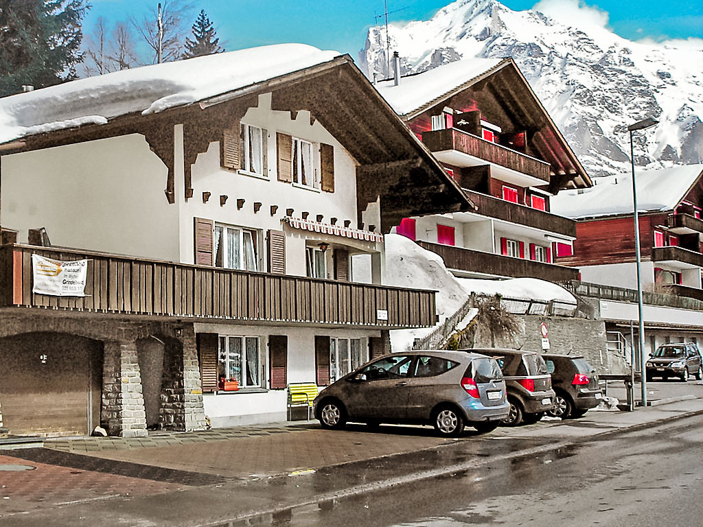 3-Zimmer-Wohnung 65 m2 im 1. Stock, Südlage. Einfach und gemütlich eingerichtet: Wohn-/Esszimmer mit Sat-TV. 2 Zimmer, jedes Zimmer mit 2 Betten (90 cm, Länge 200 cm). Küche (3 Kochplatten, Backofen, Geschirrspüler, elektrische Kaffeemaschine). Bad/WC. Sitzplatz. Schöne Sicht auf die Berge und Eigernordwand. Parkplatz beim Haus. Bitte beachten: Wohnung auf Strassenseite. Nichtraucher-Unterkunft. Feuerlöscher.