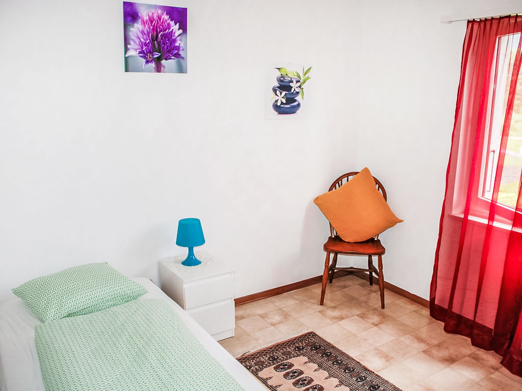 "Appartamento Gemma", 4-Zimmer-Wohnung 70 m2 im 2. Stock. Geräumig und hell, einfach und komfortabel eingerichtet: Wohnzimmer mit 1 Diwanbett (140 cm, Länge 180 cm), Kabel-TV, Flachbildschirm, Radio und CD. 1 Doppelzimmer mit 1 Doppelbett (1 x 160 cm, Länge 200 cm). 2 Zimmer, jedes Zimmer mit 1 Bett (90 cm, Länge 200 cm). Wohnküche (4 Kochplatten, Backofen, Geschirrspüler, Mikrowelle, elektrische Kaffeemaschine, Kapseln für die Kaffeemaschine (Nespresso) extra, Racletteofen, Fondue Set (Käse)) mit Esstisch. Ausgang zum Balkon. Sitzbad/WC. E-Heizung. Balkon. Balkonmöbel, Gartengrill. Sicht auf die Berge und die Landschaft. Zur Verfügung: Kinderhochstuhl, Babybett bis 3 Jahre (extra), Haartrockner. Internet (Wireless LAN, gratis). Bitte beachten: Nichtraucher-Haus.