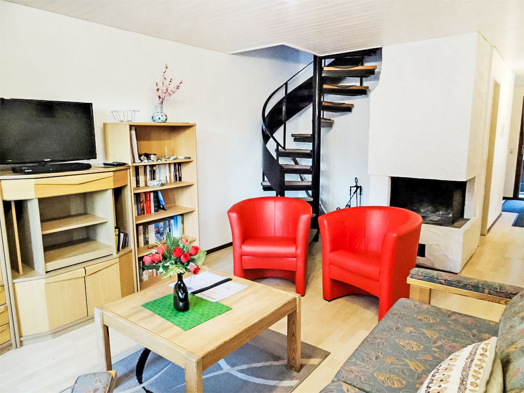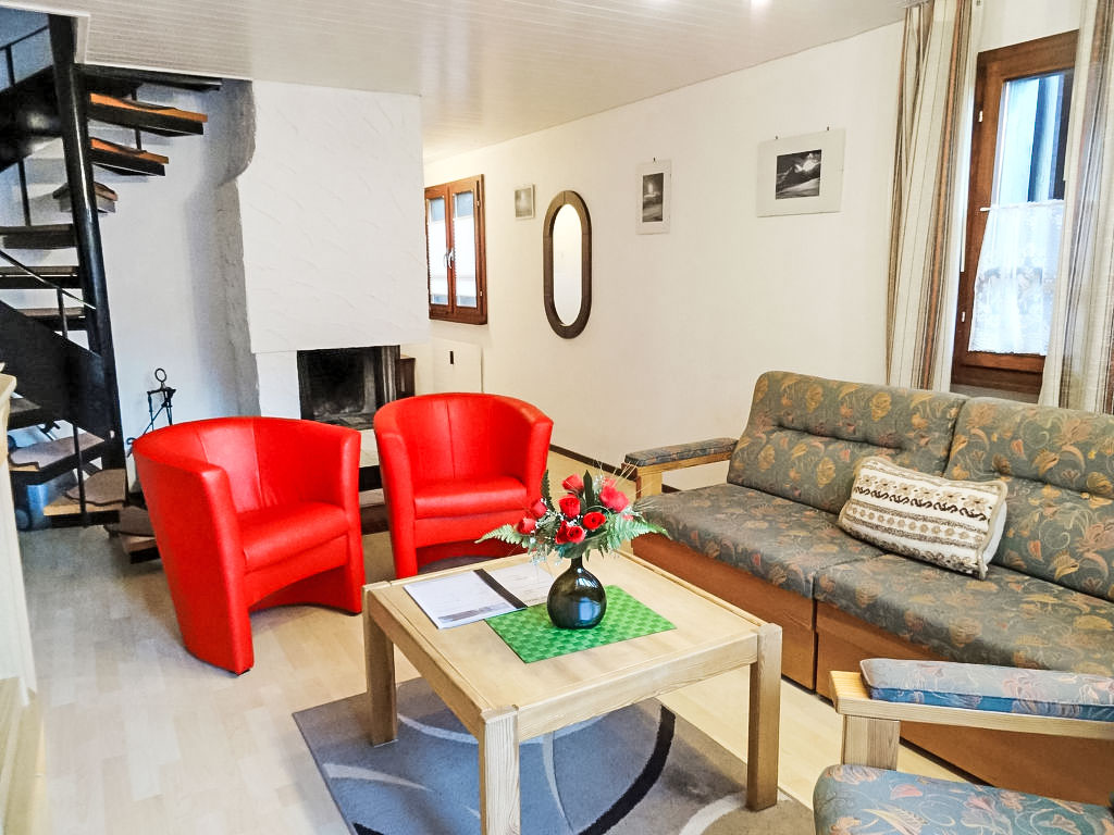 3-Zimmer-Wohnung 78 m2 auf 2 Stockwerken. Wohnzimmer mit offenem Kamin und TV. Offene Küche (Backofen, elektrische Kaffeemaschine, Kapseln für die Kaffeemaschine (Nespresso)). Bad/WC. Obergeschoss: 1 Doppelzimmer. 1 Zimmer mit 2 Betten. Dusche/WC. Balkon. Terrassenmöbel. Schöne Sicht auf die Berge. Zur Verfügung: Internet (Wireless LAN). Bitte beachten: Nichtraucher-Unterkunft.