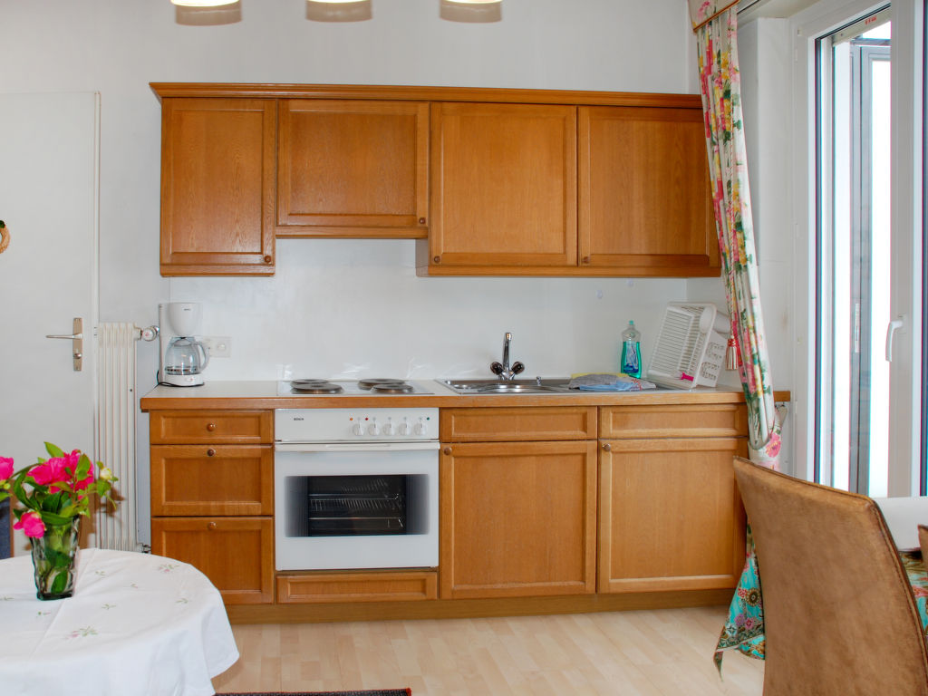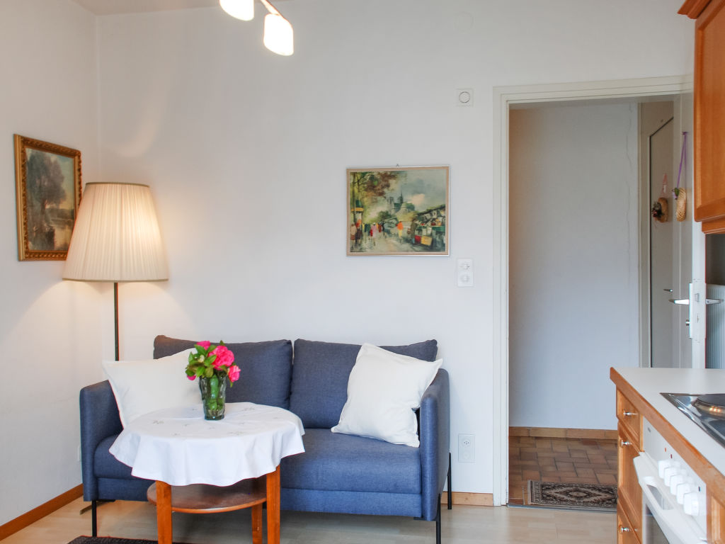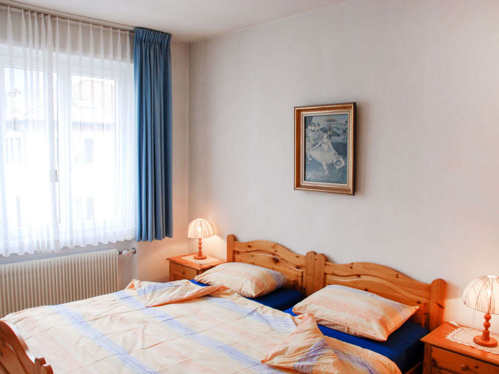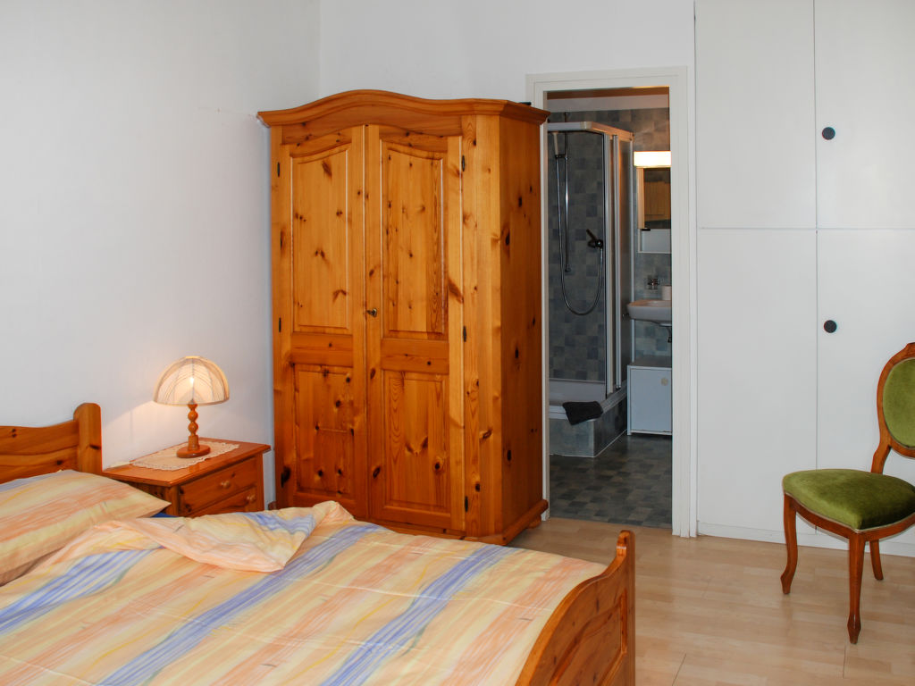"Appartamento 201 B", 2-Zimmer-Wohnung 38 m2 im 2. Stock. Komfortabel und gemütlich eingerichtet: offenes kleines Wohn-/Esszimmer mit Esstisch und Kabel-TV (Flachbildschirm), Radio. Ausgang zum Balkon. 1 Doppelzimmer mit 2 Betten (90 cm, Länge 200 cm). Küche (4 Kochplatten, Backofen, Toaster, Wasserkocher, elektrische Kaffeemaschine). Dusche/WC. Heizung. Balkon. Balkonmöbel. Sicht auf die Ortschaft. Bitte beachten: Nichtraucher-Unterkunft. Eine Kaffeemaschine von Tassimo kann an der Reception zu einem Mietpreis von CHF 10.- (exclusiv Kapseln) gemietet werden.