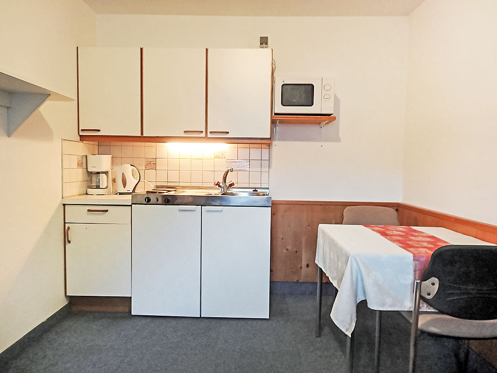 2-Zimmer-Wohnung 25 m2. Gemütlich eingerichtet: 1 Doppelzimmer. Wohnküche (2 Kochplatten, Mikrowelle) mit 1 Diwanbett, Essecke und Sat-TV. Dusche/WC. Balkon. Balkonmöbel. Schöne Sicht auf die Berge. Bitte beachten: Nichtraucher-Unterkunft. 1 Haustier/Hund erlaubt. Der Schlüssel kann im Hotel Gundolf abgeholt werden.