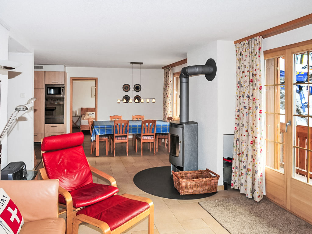 "Apt. P", 4-Zimmer-Wohnung 100 m2 im 1. Stock. Hell, modern und geschmackvoll eingerichtet: Wohn-/Esszimmer mit Schwedenofen, Esstisch, Sat-TV, Radio, CD und DVD. Ausgang zum Balkon. 2 Zimmer, jedes Zimmer mit 1 Doppelbett (2 x 90 cm, Länge 200 cm). 1 Zimmer mit 2 Betten (90 cm, Länge 200 cm). Offene Küche (Backofen, Geschirrspüler, 4 Induktionskochplatten, Toaster, Wasserkocher, Mikrowelle, elektrische Kaffeemaschine, Kapseln für die Kaffeemaschine (Nespresso) extra, Fondue Set (Käse)). Dusche/WC, Bad/Dusche/WC. Grosser Balkon. Balkonmöbel. Sehr schöne Sicht auf die Berge und das Tal. Zur Verfügung: Bügeleisen, Haartrockner, Holz (extra). Internet (Wireless LAN, gratis). Bitte beachten: Nichtraucher-Unterkunft.