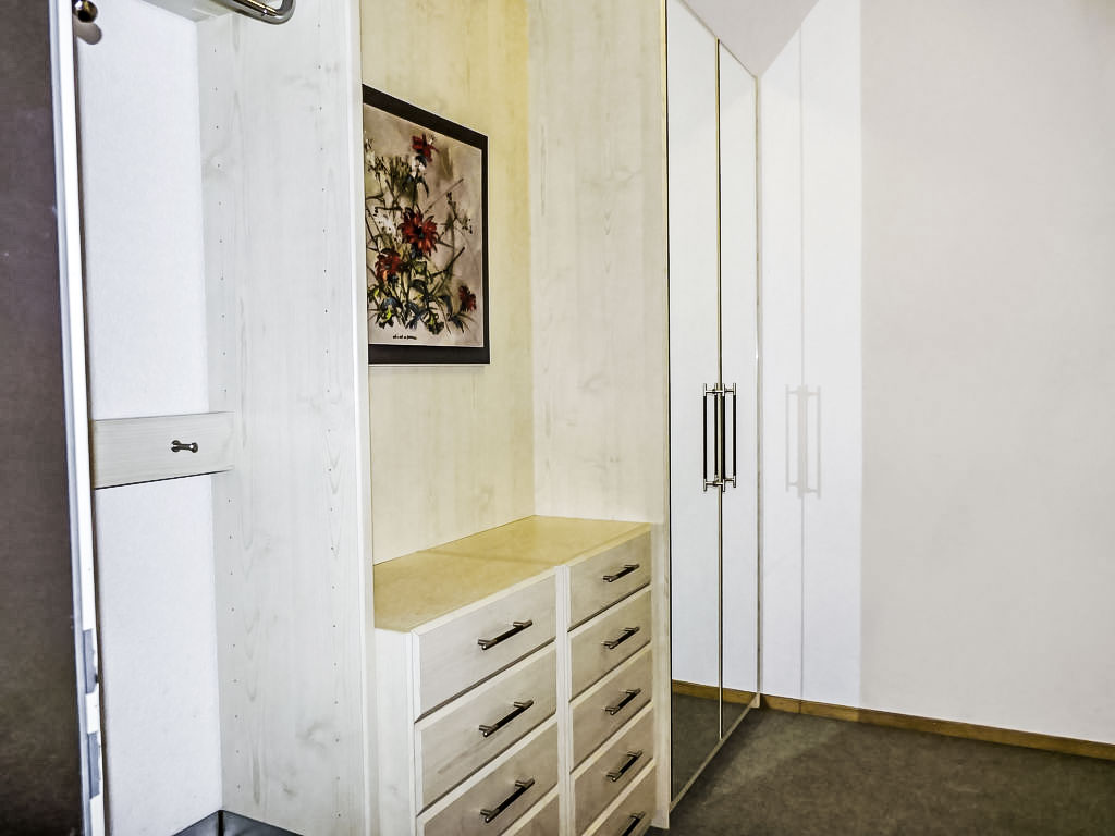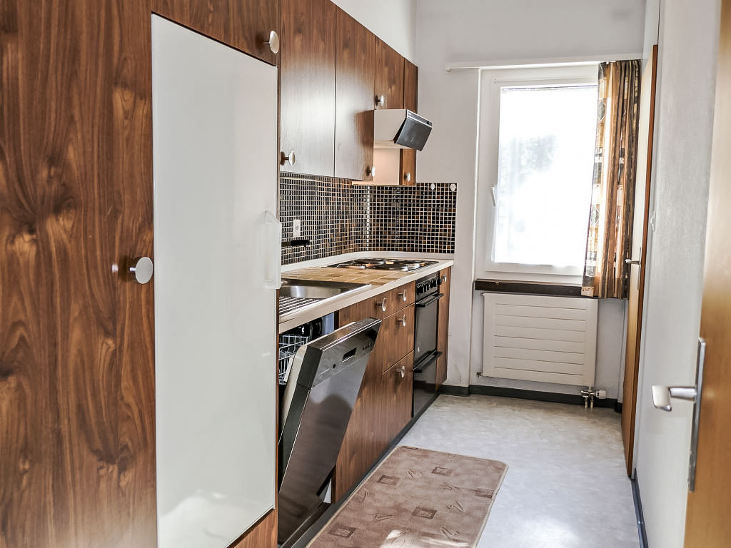 3-Zimmer-Wohnung 80 m2, im erhöhten Erdgeschoss, Südostlage. Wohn-/Esszimmer mit 1 Diwanbett, Kabel-TV und Flachbildschirm. Ausgang zum Balkon, Richtung Osten und Richtung Süden. 1 Zimmer mit 1 Doppelbett (2 x 90 cm). 1 Zimmer mit 2 Betten (90 cm). Küche (4 Kochplatten, Backofen, Geschirrspüler). Bad oder Dusche/WC, Doppelwaschbecken. Zur Verfügung: Internet (Wireless LAN, gratis). Bitte beachten: Nichtraucher-Unterkunft. 1 Haustier/Hund erlaubt. Apt Mit Rollstuhl max 70cm erreichbar. Badezimmer Türe 75cm.