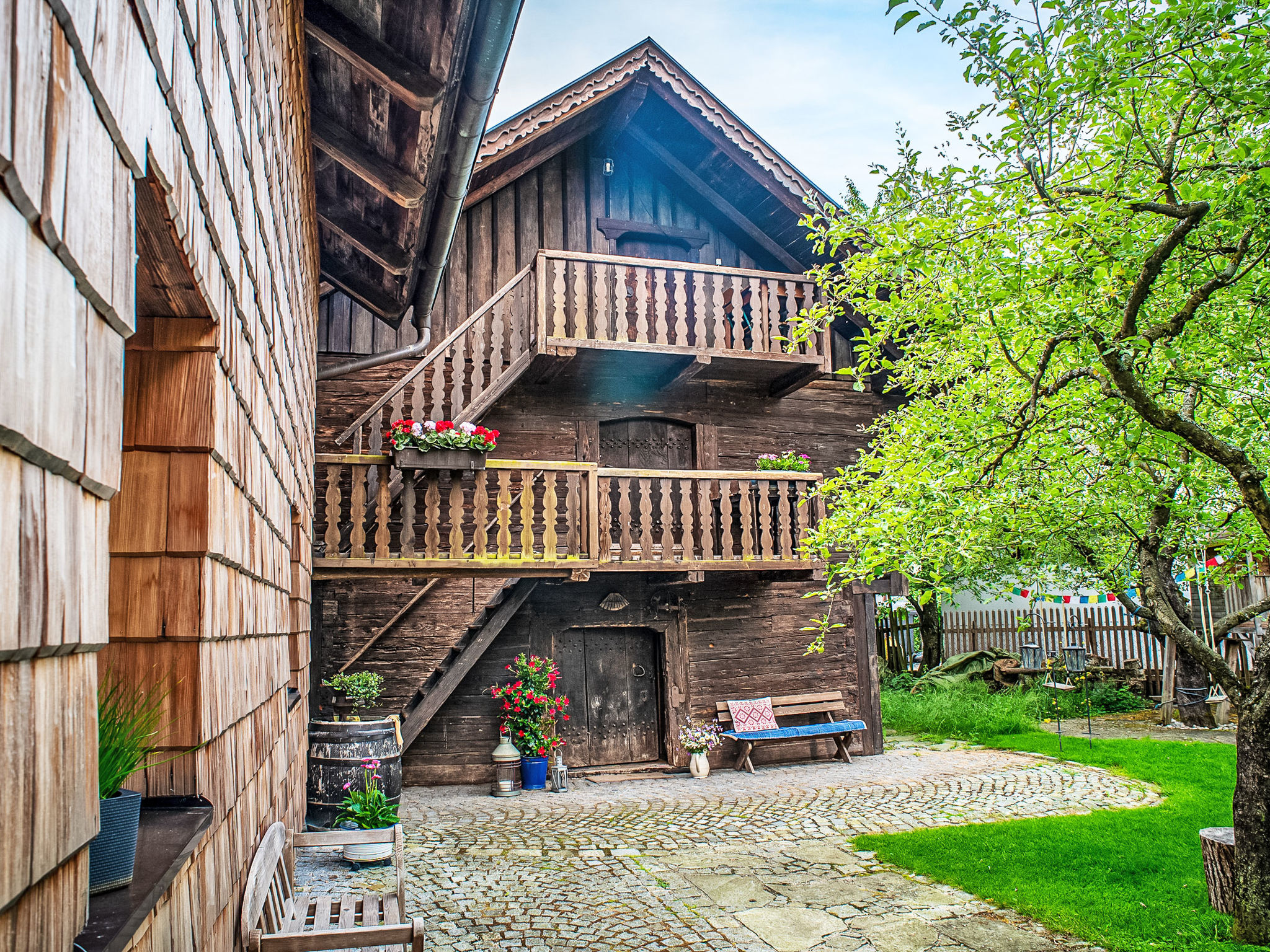 Neuhofen im Innkreis 3 km von Ried: Haus für bis zu 9 Personen! sehr altes, gemütliches Chalet "Troadkasten", aus dem 17. Jahrhundert. Am Ortsrand, direkt am Bach, im Grünen. Zur Mitbenutzung: Grundstück 1'000 m2, Garten, Liegewiese. Grill, Grillhaus, Kinderspielplatz. Im Hause: Zentralheizung, Fahrräder vorhanden. Parkplatz beim Haus. Lebensmittelgeschäft, Restaurant 500 m, Bushaltestelle 100 m, Bahnstation 1 km, Freibad 1 km, Hallenbad 1 km. Tennis, Langlaufloipe 500 m, Eisfeld 2 km. Die Chalets sind 350 Jahre alte Getreidespeicher, welche liebevoll restauriert, gemütlich ausgestattet und zu komfortablen Ferienhäusern umgebaut wurden!
