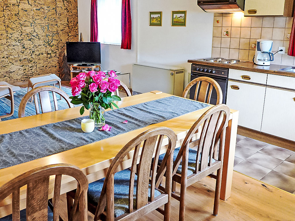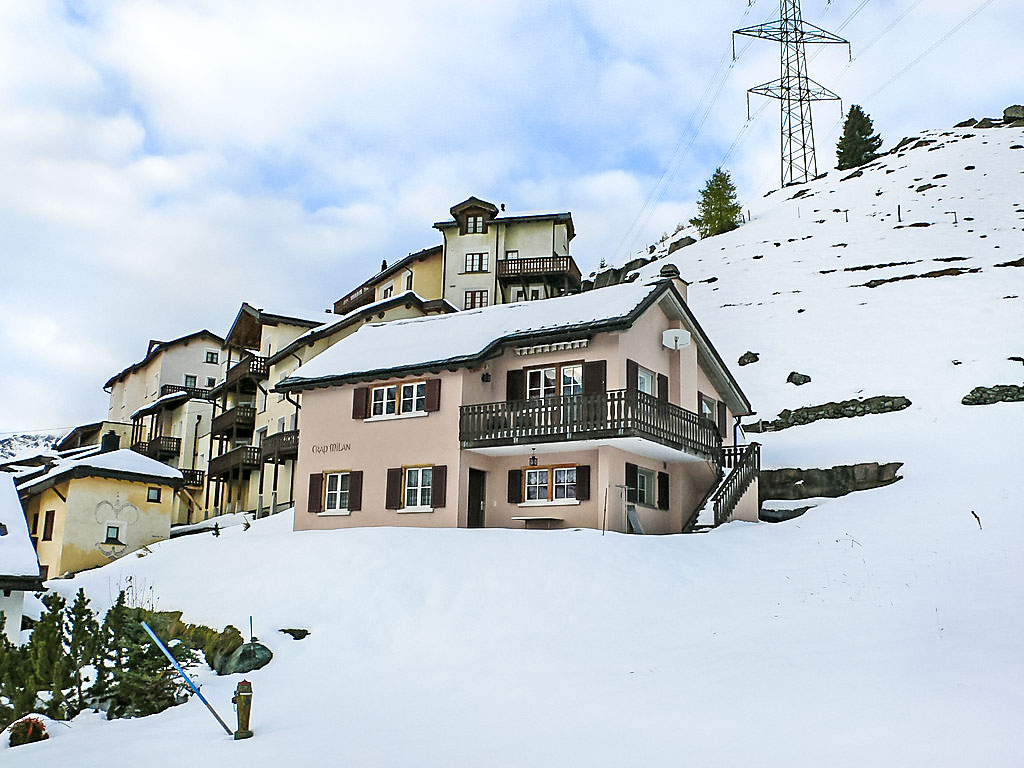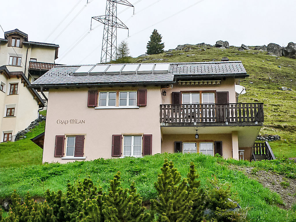 Kinderfreundliches, schönes, gemütliches Zweifamilienhaus "Crap Milan", Baujahr 1984. Am Ortsrand, ruhige, sonnige, erhöhte Lage am Hang, direkt am Fluss, in einer Sackgasse, im Grünen. Zur Mitbenutzung: Garten. Im Hause: Skiraum, Zentralheizung, Waschmaschine, Wäschetrockner (zur Mitbenutzung). Schmale Zufahrt bis zum Grundstück, im Winter bis. 200 m Fussweg bis zum Haus. Öffentliche Parkplätze 200 m. Lebensmittelgeschäft 300 m, Restaurant 400 m, Bushaltestelle 300 m, Hallenbad 50 m. Tennis 500 m, Skilift, Skischule, Langlaufloipe, Eisfeld 350 m.