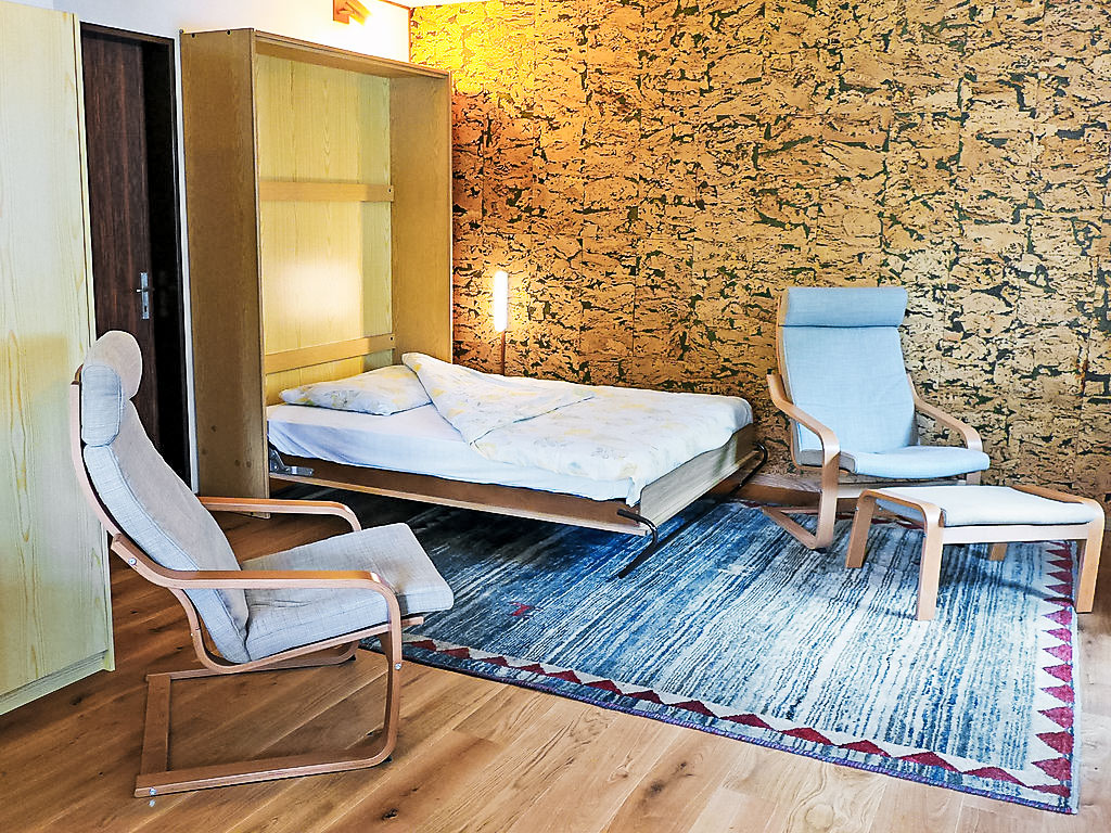 "Crap Milan", 2-Zimmer-Wohnung 75 m2, im Erdgeschoss. Zweckmässig und gemütlich eingerichtet: Wohn-/Esszimmer mit 1 Doppelwandschrankbett (140 cm, Länge 200 cm), TV (Flachbildschirm). 1 Zimmer mit 2 Betten. Offene Küche (4 Kochplatten, Backofen) mit Esstisch. Dusche/WC. Gartensitzplatz. Terrassenmöbel, Liegestühle. Schöne Sicht auf die Berge, das Tal, die Landschaft, die Ortschaft und den Fluss. Zur Verfügung: Internet (Wireless LAN, gratis). Bitte beachten: Nichtraucher-Unterkunft. 1 Haustier/Hund erlaubt. :bei Schnee kann nicht vor dem Haus parkiert werden. ca. 300m gebührenpflichtiger Parkplatz "Plan weis", Swisscom TV 2.0 vorhanden.