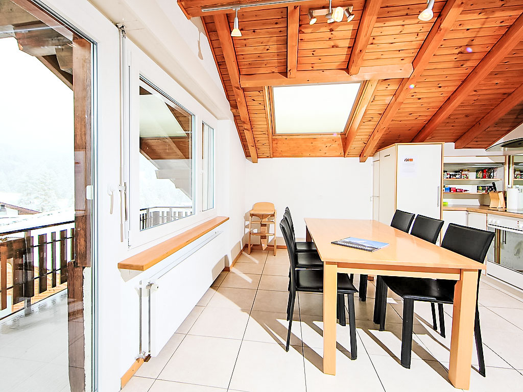 4-Zimmer-Attikawohnung 116 m2 im 3. Stock. Hell, schön und modern eingerichtet: offenes Wohnzimmer mit TV. Ausgang zum Balkon. 2 Zimmer, jedes Zimmer mit 1 Doppelbett (2 x 90 cm, Länge 200 cm). 1 Zimmer mit 1 Doppelbett (1 x 150 cm, Länge 200 cm). Grosse, offene Küche (Backofen, Geschirrspüler, 3 Glaskeramikherd Platten, Toaster, Wasserkocher, Tiefkühler, elektrische Kaffeemaschine, Racletteofen, Fondue Set (Käse)) mit Esstisch. Bad/WC, Dusche/WC. Balkon, Südlage. Balkonmöbel. Panoramasicht auf das Matterhorn. Zur Verfügung: Haartrockner. Internet (Wireless LAN, gratis). Bitte beachten: Nichtraucher-Unterkunft.