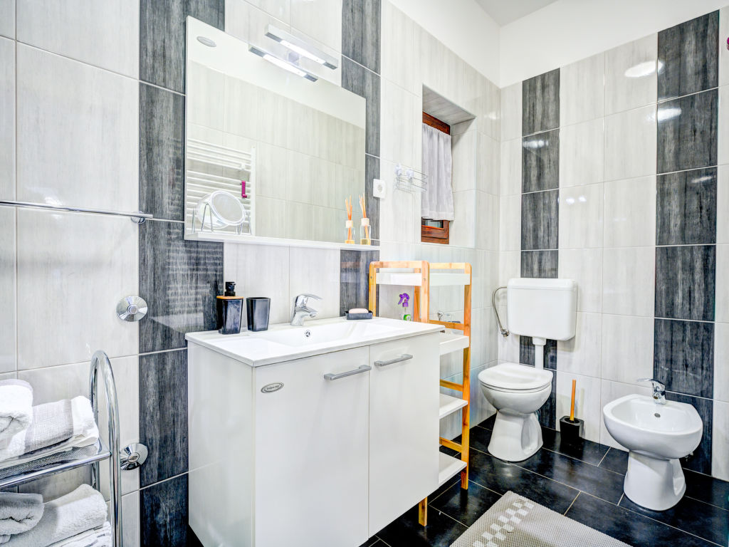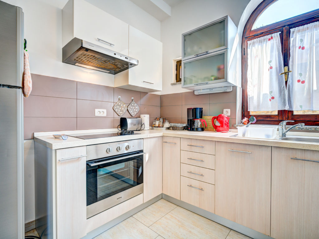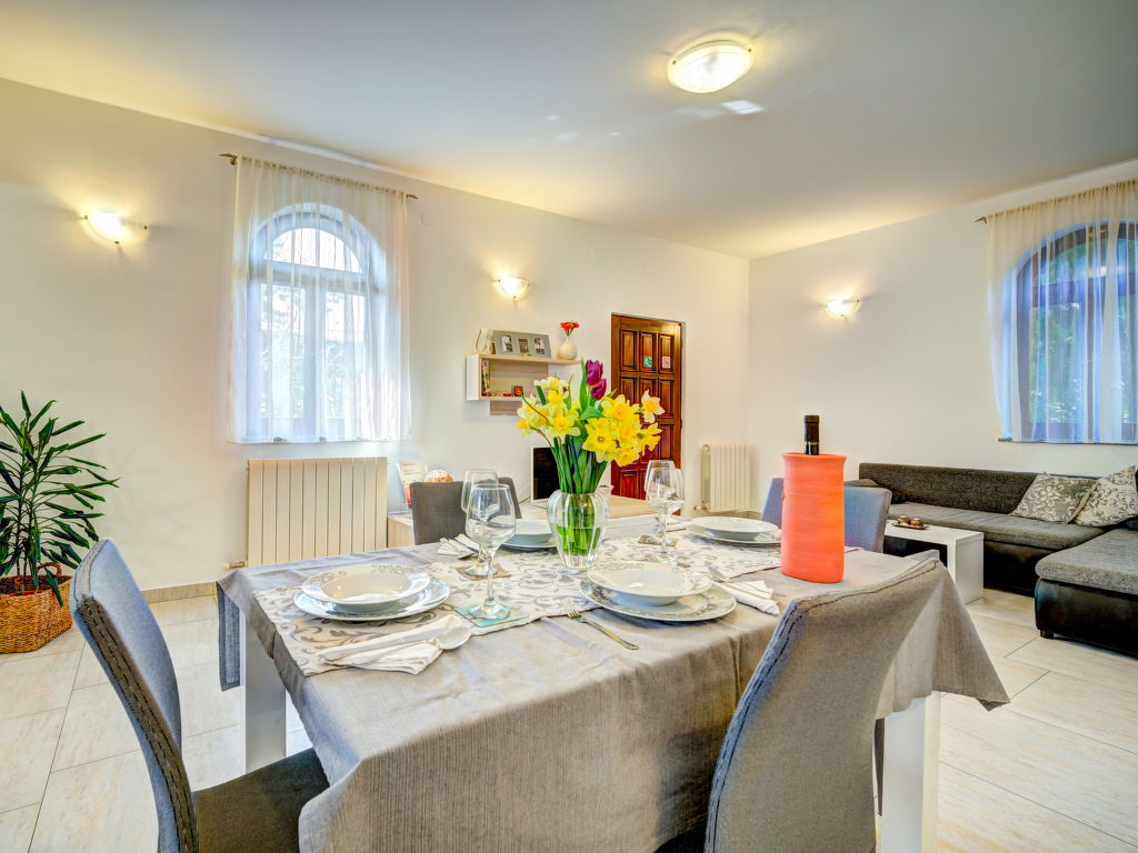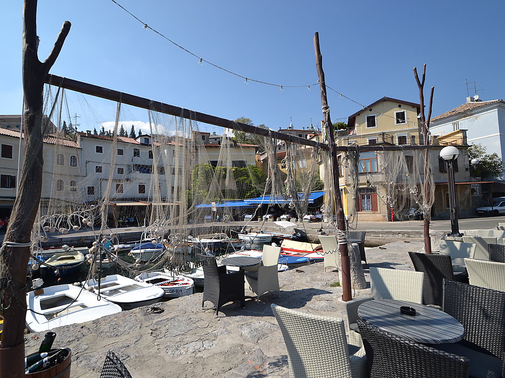 Volosko: Schönes Dreifamilienhaus "Nilia". 1.8 km vom Zentrum von Opatija, sonnige Lage am Hang, 400 m vom Meer, 400 m vom Strand, an einer Strasse. Zur Mitbenutzung: Grundstück (eingezäunt). Zur Alleinbenutzung: Laube (5 m2), Gartenmöbel, Grill (Schaukel). Im Hause: Internetzugang. Parkplatz beim Haus auf dem Grundstück. Einkaufsgeschäft 40 m, Supermarkt 2 km, Restaurant 270 m, Kieselstrand, betonierter Strand 400 m. Wanderwege ab Haus 500 m.
