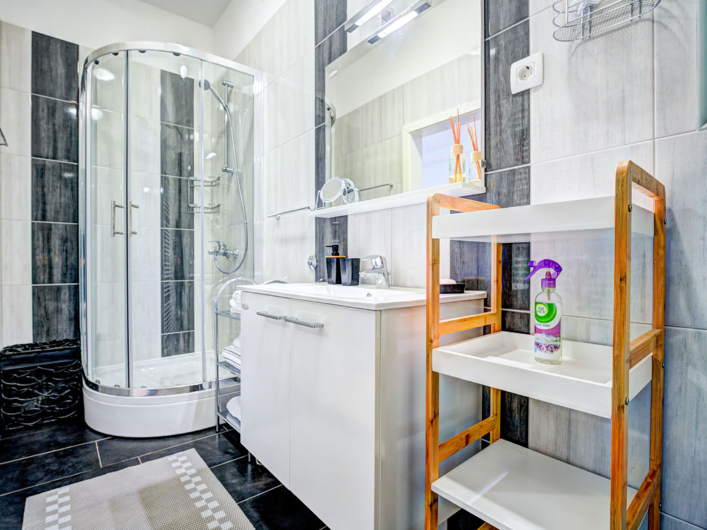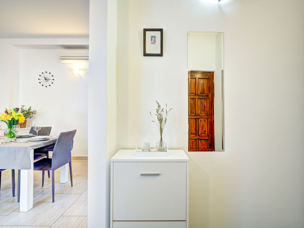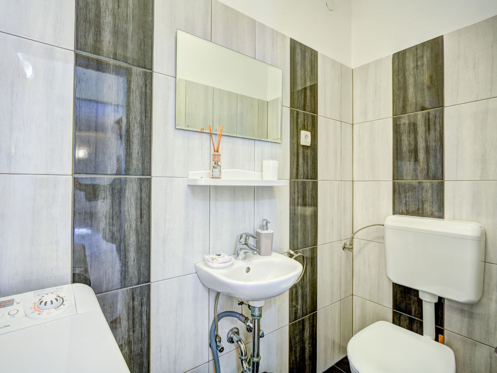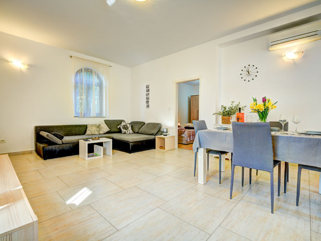 2-Zimmer-Wohnung 57 m2, im Erdgeschoss, Südlage. Wohn-/Esszimmer 36 m2 mit 1 Doppeldiwanbett (140 cm, Länge 290 cm), Sat-TV (Flachbildschirm), Klimaanlage. 1 Zimmer mit 1 franz. Bett (160 cm, Länge 200 cm), Dusche/WC. Offene Küche (4 Kochplatten, Backofen, Geschirrspüler, Tiefkühler, elektrische Kaffeemaschine). Sep. WC. Zur Verfügung: Waschmaschine, Babybett. Internet (Wireless LAN, gratis). Garage (extra). Bitte beachten: eigener Eingang.