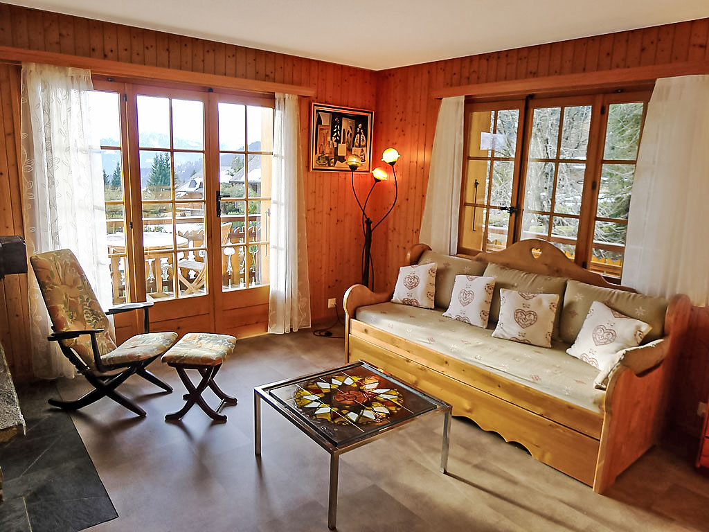 Villars: Chalet "Sapin Bleu". Oberhalb von Villars, im Ortsteil La Résidence, ruhige, sonnige Lage, 100 m vom Skigebiet, im Grünen, Richtung Süden. Im Hause: Sauna, Fahrstuhl, Skiraum, Waschmaschine, Wäschetrockner (zur Mitbenutzung). Im Winter bitte Schneeketten mitbringen. Öffentliche Parkplätze. Einkaufsgeschäft 2.6 km, Lebensmittelgeschäft 1.3 km, Restaurant 1.9 km, Bäckerei 1.9 km, Zentrum zu Fuss in 20 Minuten erreichbar, Bushaltestelle 1.9 km, Bahnstation "Villars" 2.9 km, Hallenbad 2.2 km, Thermalbad "Lavey-les-bains" 19 km. Sporthafen 25 km, Golfplatz (18 Loch) 8 km, Tennishalle 3 km, Sportzentrum 3 km, Bergbahn 2.9 km, Gondelbahn 1.4 km, Skibushaltestelle 1.5 km, Skischule 2.8 km, Kinderskischule 3 km, Eisfeld 2.2 km, Kinderspielplatz 3.2 km. Bitte beachten: Fahrzeug empfohlen. Der gratis Skibus fährt zum Skigebiet Villars. Bitte beachten: In diesem Haus sind weitere Ferienwohnungen mietbar.