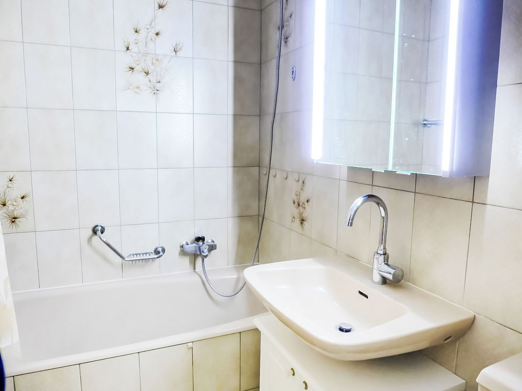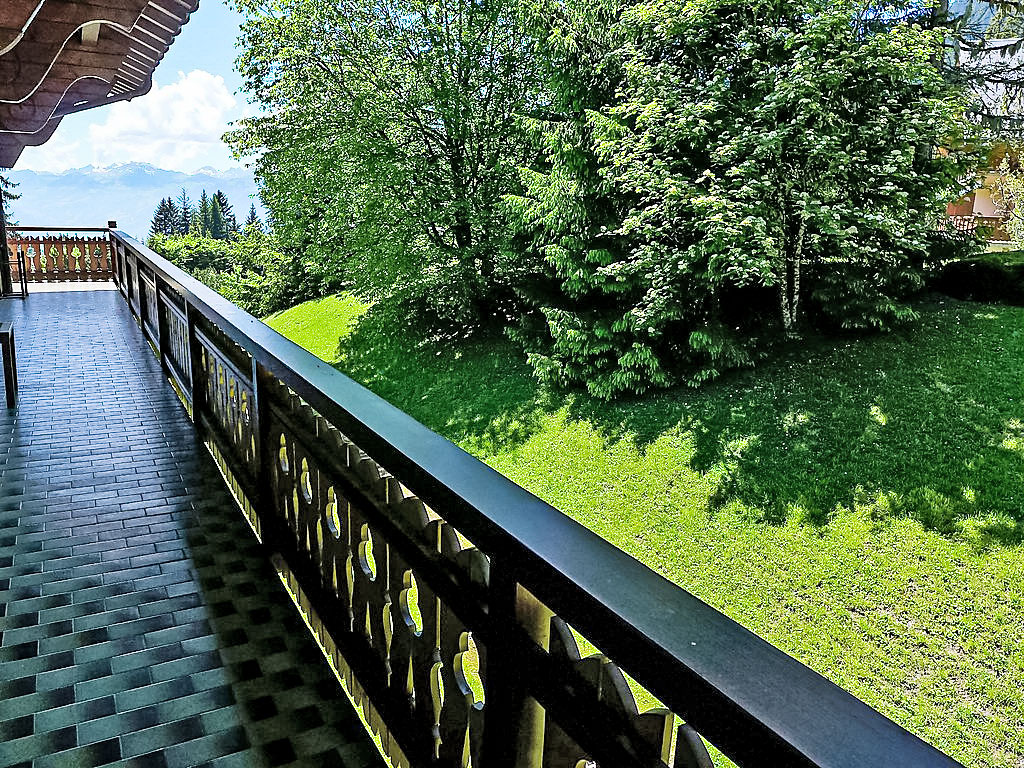 "Sapin Bleu 5", 2-Zimmer-Wohnung 47 m2 im 1. Stock, Südlage. Zweckmässig und gemütlich eingerichtet: Wohn-/Esszimmer mit Panoramafenster mit 2 Ausziehbetten (2 Pers. 2 x 80 cm, Länge 190 cm), offenem Kamin, Esstisch und TV (Flachbildschirm), Radio und DVD. Ausgang zum Balkon. 1 Zimmer mit 1 franz. Bett (160 cm, Länge 200 cm). Ausgang zum Balkon. Offene Küche (Backofen, Geschirrspüler, Mikrowelle). Bad/WC. Grosser Balkon 25 m2, Südlage und Westlage. Terrassenmöbel. Sehr schöne Panoramasicht auf die Berge. 1 Haustier/Hund erlaubt.
