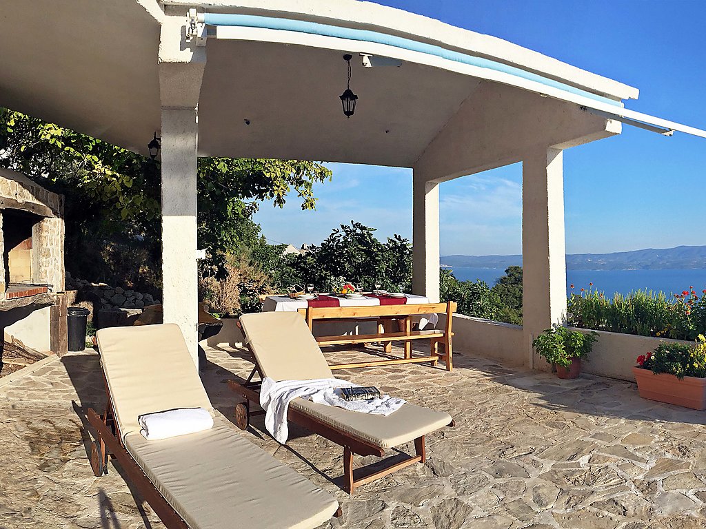 3-Zimmer-Doppelhaushälfte 80 m2 auf 3 Stockwerken, Südlage. Wohn-/Esszimmer mit 1 Doppeldiwanbett und Sat-TV (Flachbildschirm). Ausgang zur Terrasse. Offene Küche (Geschirrspüler, 2 Glaskeramikherd Platten, Mikrowelle, Tiefkühler, elektrische Kaffeemaschine). Dusche/WC. Unteres Geschoss: (Aussentreppe) 1 Zimmer mit 1 Doppelbett (2 x 90 cm, Länge 200 cm), Dusche/WC und Sat-TV (Flachbildschirm), Klimaanlage. Obergeschoss: 1 abgeschrägtes Zimmer, Deckenhöhe 100 - 230 cm mit 1 Doppelbett (2 x 90 cm, Länge 200 cm), Dusche/WC und Sat-TV (Flachbildschirm), Klimaanlage. Terrasse 30 m2, überdacht. Terrassenmöbel, Liegestühle. Herrliche Sicht auf das Meer. Zur Verfügung: Kinderhochstuhl, Babybett. Internet (Wireless LAN, gratis). 1 kleines Haustier/Hund erlaubt.