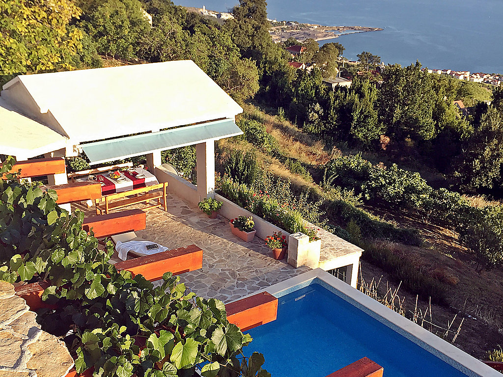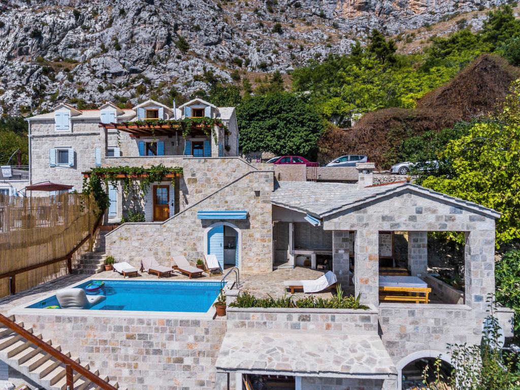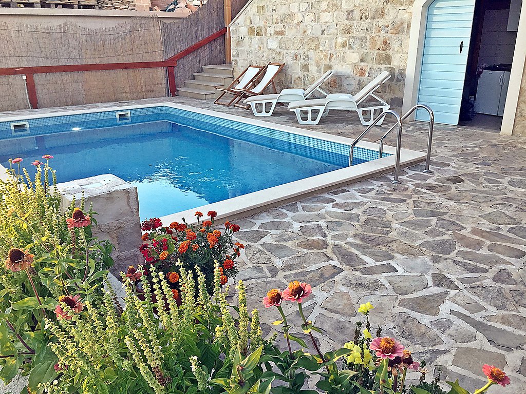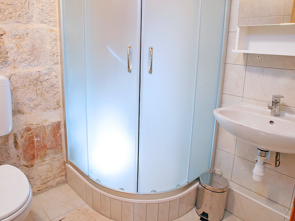 Doppelhaus "Juraj", auf 3 Stockwerken. Im Weiler Krug, 1 km vom Zentrum von Jesenice, 9 km vom Zentrum von Omiš, ruhige, sonnige Lage, 2.5 km vom Meer, 2.5 km vom Strand. Zur Alleinbenutzung: Grundstück 400 m2 (eingezäunt), Schwimmbad eckig (4 x 6 m, 150 cm tief, 01.05.-30.09.). Aussendusche, Poolhaus mit WC und Kochherd, Terrasse (20 m2), Gartenmöbel, Grill. Im Hause: Internetzugang. Parkplatz (für 2 Autos) beim Haus auf dem Grundstück. Einkaufsgeschäft 2.3 km, Restaurant 1 km, Kieselstrand 2.5 km, Felsstrand 2.5 km. Von Gruppen junger Leute wird ein doppeltes Pfand verlangt bei der Ankunft.