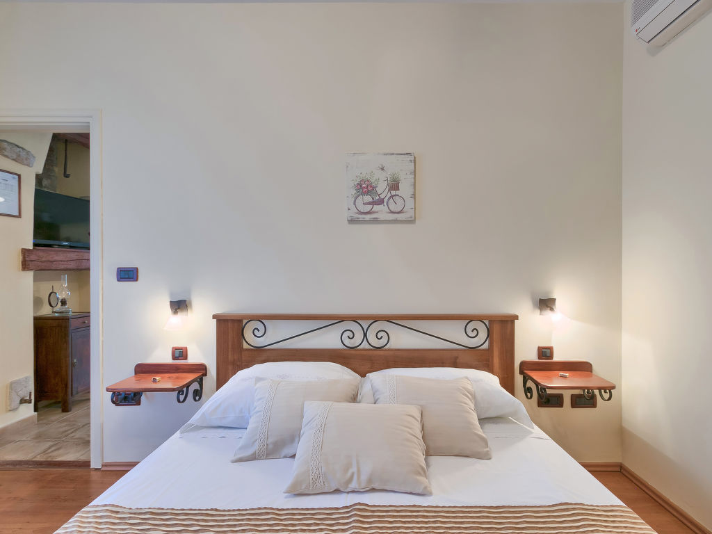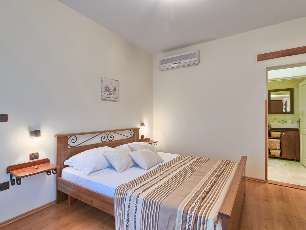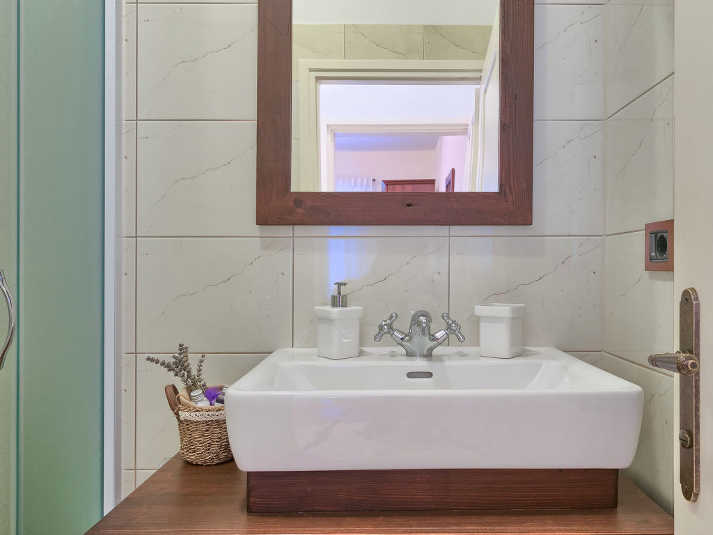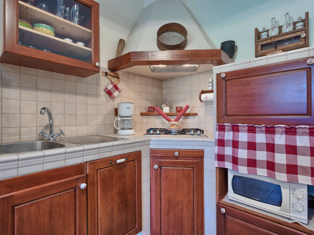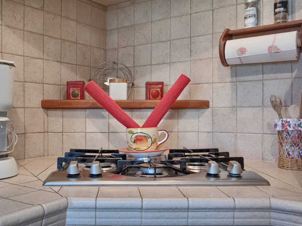 1-Zimmer-Wohnung 55 m2, im Erdgeschoss. 1 Zimmer mit 1 Doppelbett (2 x 90 cm, Länge 190 cm), Klimaanlage. Esszimmer mit offenem Kamin und Sat-TV (Flachbildschirm). Ausgang zur Terrasse. Offene Küche (4 Kochplatten, Backofen, Geschirrspüler, Mikrowelle, Tiefkühler). Dusche/WC. Terrasse 10 m2, überdacht. Terrassenmöbel. Sicht auf den Garten. Zur Verfügung: Waschmaschine. Internet (Wireless LAN, gratis).