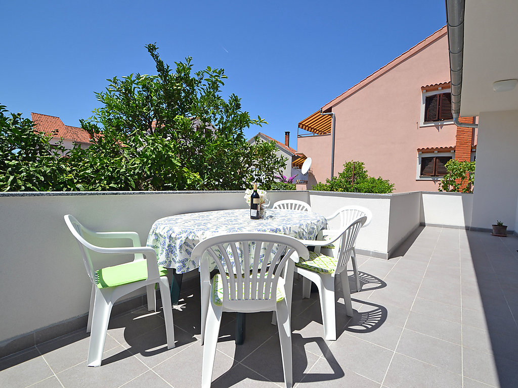 Zweifamilienhaus "Mičić". Im Ortsteil Diklo, 5 km vom Zentrum, ruhige, sonnige Lage, 100 m vom Meer, 100 m vom Strand, in einer Sackgasse. Zur Mitbenutzung: Grundstück 100 m2 (eingezäunt). Im Hause: Internetzugang. Parkplatz beim Haus auf dem Grundstück. Einkaufsgeschäft 200 m, Restaurant 500 m, Kieselstrand 100 m. Tennis 3.5 km.