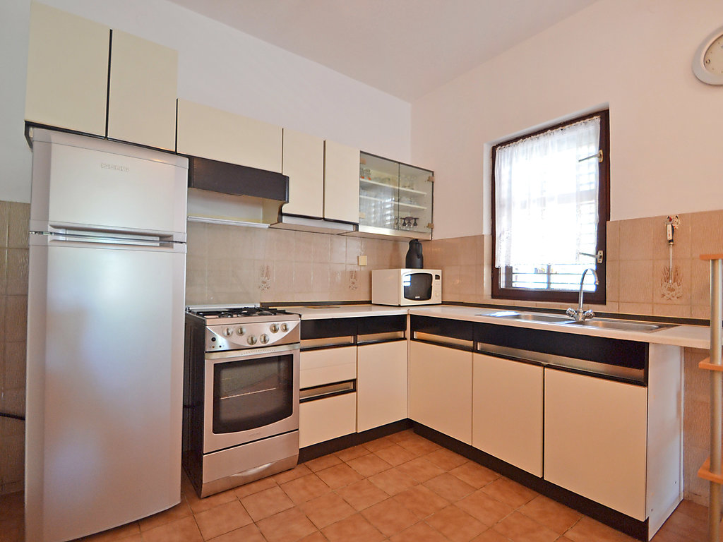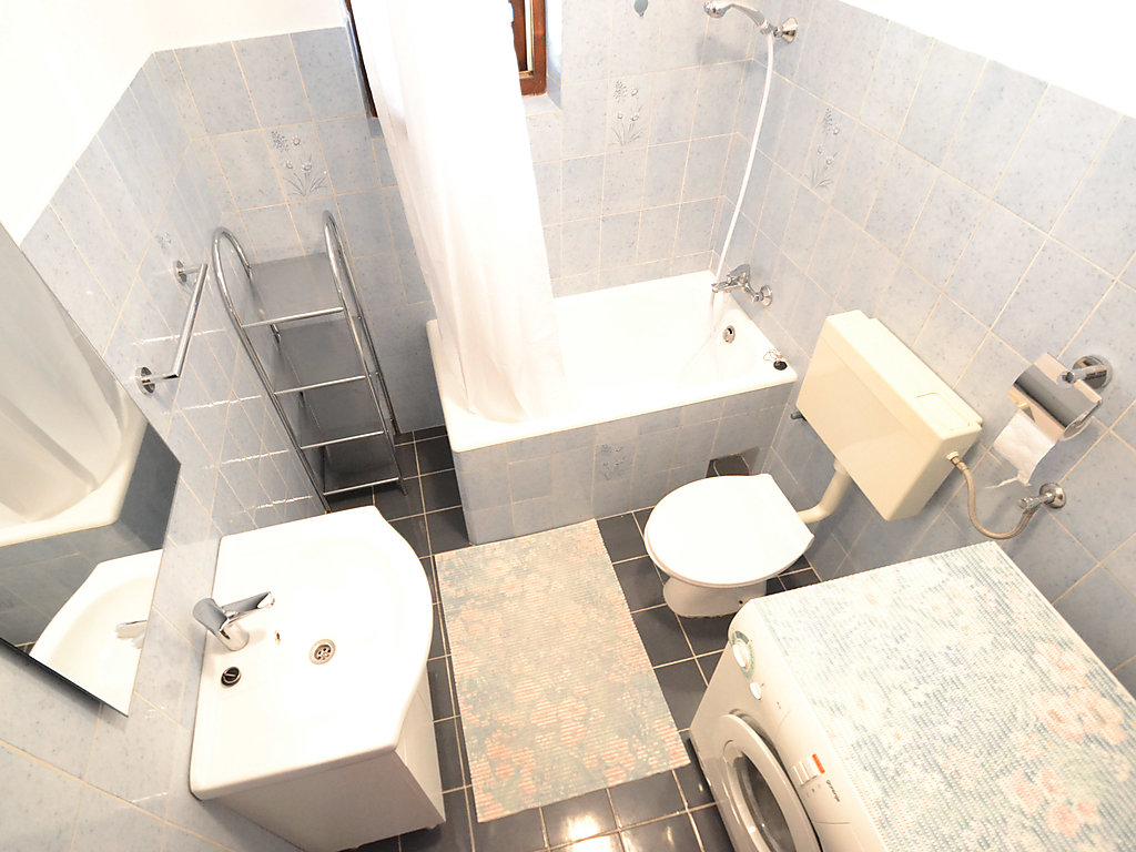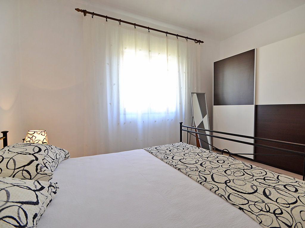 3-Zimmer-Wohnung 95 m2 im 1. Stock, Südwestlage. Wohn-/Esszimmer 40 m2 mit TV und Sat-TV (Flachbildschirm), Klimaanlage. Ausgang zur Terrasse. 1 Zimmer mit 1 franz. Bett (160 cm, Länge 200 cm). 1 Zimmer mit 1 Doppelbett (2 x 90 cm, Länge 200 cm). Ausgang zur Terrasse. Offene Küche (4 Kochplatten, Backofen, Mikrowelle, Tiefkühler). Sitzbad/WC. Terrasse 20 m2. Terrassenmöbel. Zur Verfügung: Waschmaschine. Internet (Wireless LAN, gratis). 1 Haustier/Hund erlaubt.