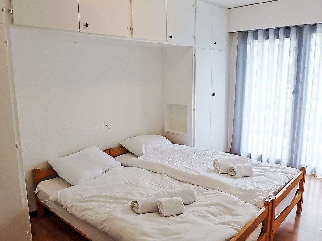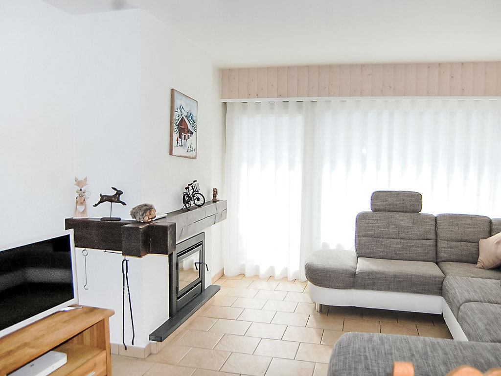 "Les Platanes F4", 4-Zimmer-Wohnung 90 m2 im 4. Stock. Teilweise renoviert, komfortabel eingerichtet: Wohn-/Esszimmer mit Kabel-TV und DVD. Ausgang zum Balkon. 1 Zimmer mit 1 Doppelbett (2 x 90 cm, Länge 200 cm). Ausgang zum Balkon. 1 Zimmer mit 1 x 2 Etagenbetten (90 cm, Länge 190 cm). Ausgang zum Balkon. 1 kleines Zimmer mit 1 franz. Bett (140 cm, Länge 200 cm). Offene Küche (Backofen, Geschirrspüler, 4 Glaskeramikherd Platten, Racletteofen, Fondue Set (Käse)). Bad/WC, sep. WC. 2 Balkone, Südlage und Nordlage. Terrassenmöbel. Schöne Sicht auf die Berge und die Ortschaft. Zur Verfügung: Haartrockner. Internet (Wireless LAN, gratis). Parkplatz Nr. 28. Bitte beachten: Nichtraucher-Unterkunft. Unbenützbar Kamin.