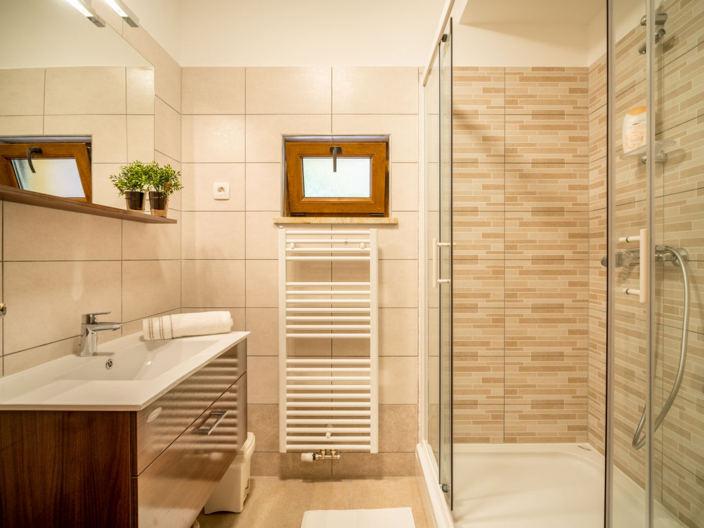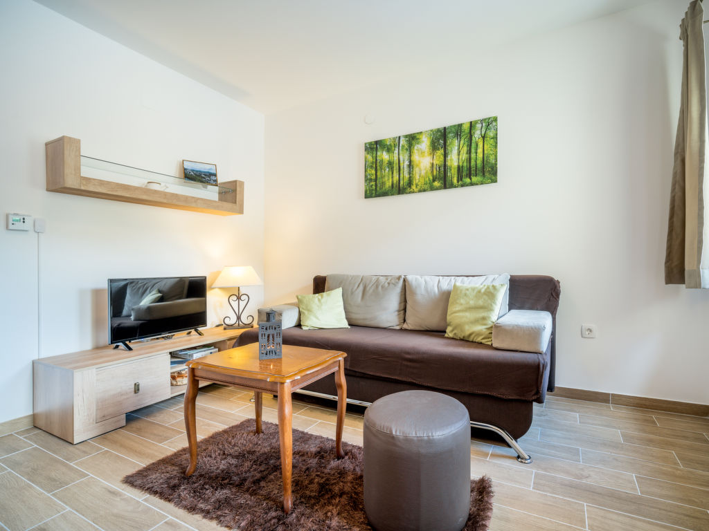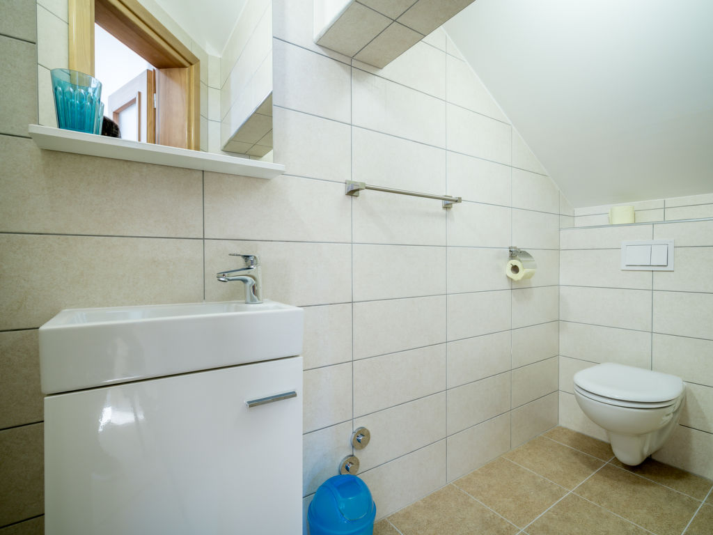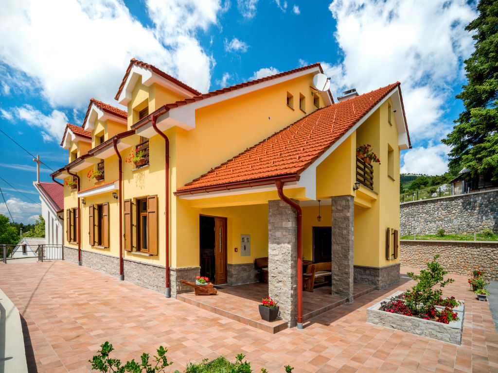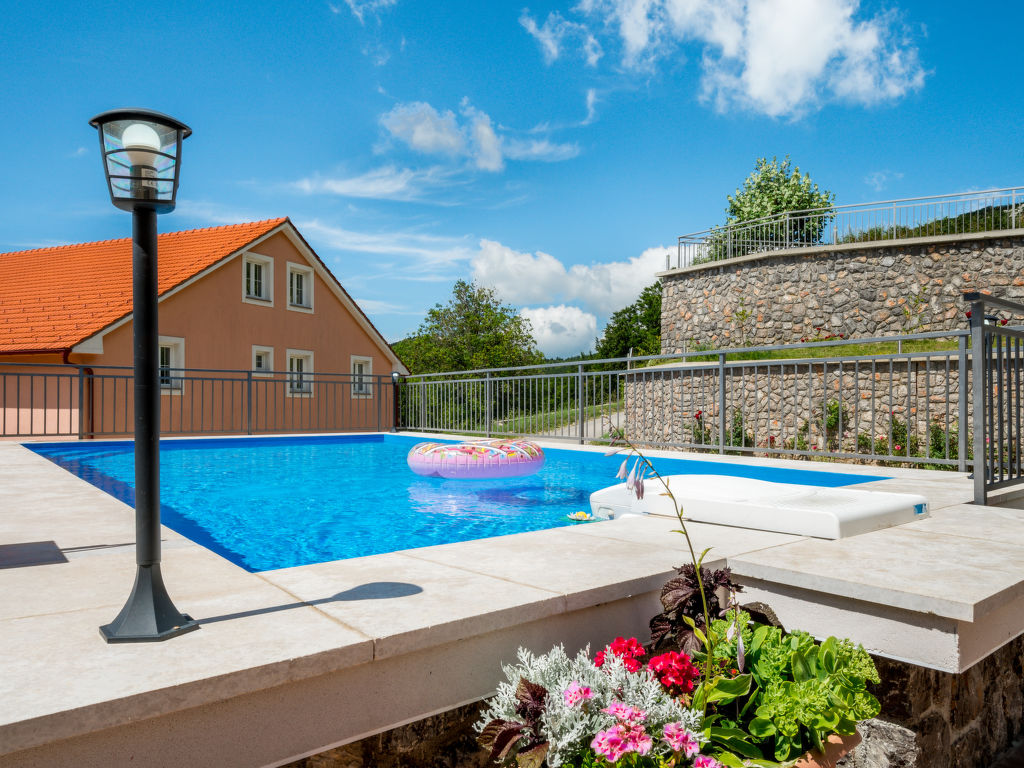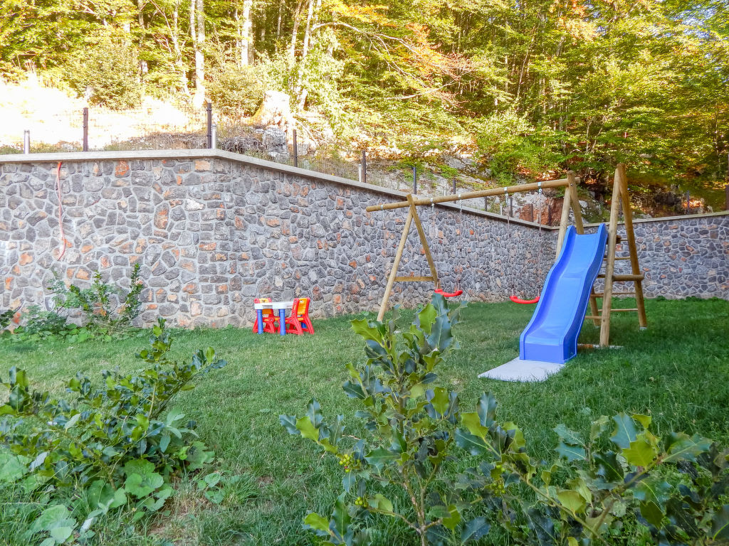 Einfamilienhaus "Oltari", 940 m.ü.M., auf 3 Stockwerken. Im Weiler Oltari, 14 km vom Zentrum von Sveti Juraj, ruhige, sonnige, erhöhte Lage, 14 km vom Meer, im Grünen. Zur Alleinbenutzung: Grundstück 630 m2, Schwimmbad eckig (8 x 4 m, 33 m2, 120 - 150 cm tief, 01.06.-30.09.) mit Innentreppe. Aussendusche, Tischtennis, Terrasse (30 m2), Gartenmöbel, Grill. Im Hause: Internetzugang, Waschmaschine, Wäschetrockner. Parkplatz beim Haus auf dem Grundstück. Einkaufsgeschäft 9 km, Restaurant 9 km, Kieselstrand 14 km, betonierter Strand 14 km. Das Haus besteht aus 4 Ferienwohnungen, die als Einheit vermietet werden.