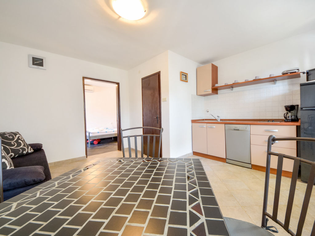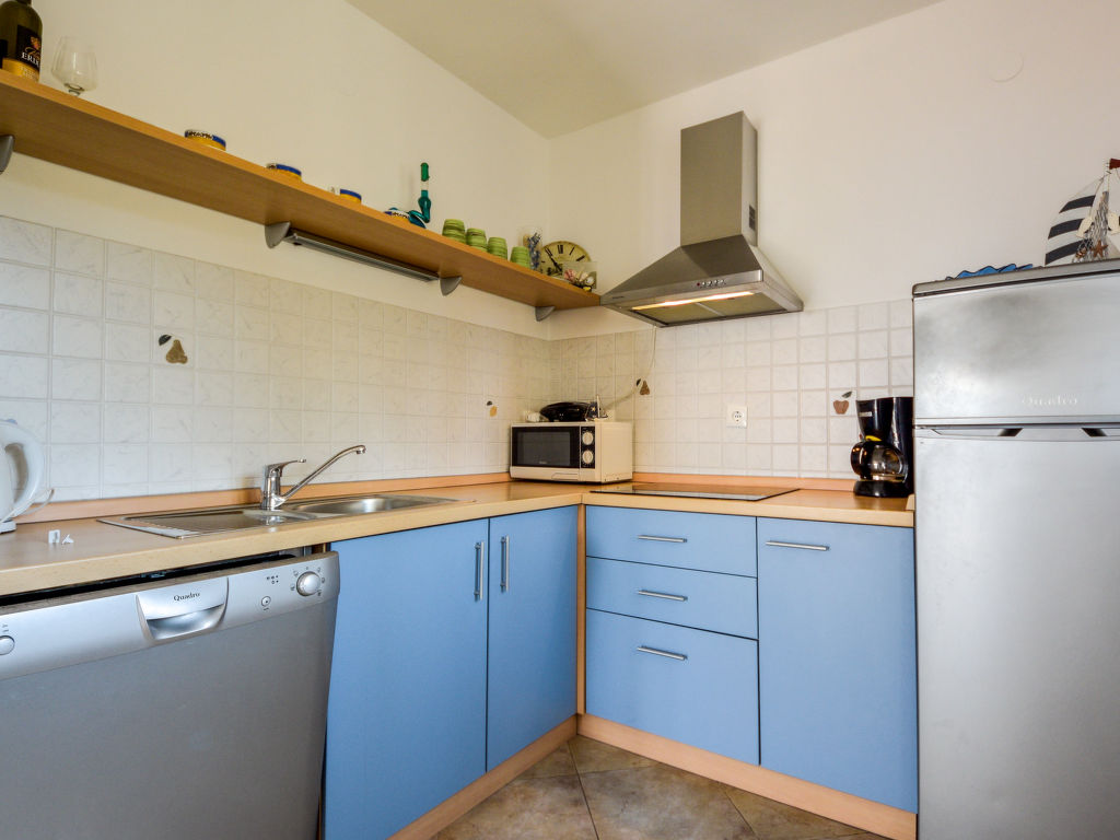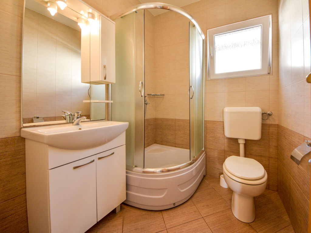 7-Zimmer-Haus 145 m2 auf 2 Stockwerken, Südwestlage. Wohn-/Esszimmer 15 m2 mit 1 Doppeldiwanbett (130 cm, Länge 190 cm), Küchenblock und Sat-TV (Flachbildschirm). 1 Zimmer mit 1 franz. Bett (140 cm, Länge 200 cm), Klimaanlage. Wohn-/Esszimmer 15 m2 mit 1 Doppeldiwanbett (130 cm, Länge 190 cm), Sat-TV (Flachbildschirm). 1 Zimmer mit 1 franz. Bett (140 cm, Länge 200 cm), Klimaanlage. Offene Küche (Geschirrspüler, 2 Glaskeramikherd Platten, Mikrowelle, Tiefkühler, elektrische Kaffeemaschine). 2 Duschen/WC. Obergeschoss: Wohn-/Esszimmer 20 m2 mit 1 Doppeldiwanbett (130 cm, Länge 190 cm), Sat-TV (Flachbildschirm), Klimaanlage. Ausgang zur Terrasse. 1 Zimmer mit 1 franz. Bett (160 cm, Länge 200 cm). 1 Zimmer mit 2 Betten (90 cm, Länge 200 cm), Sat-TV (Flachbildschirm). Ausgang zur Terrasse. Offene Küche (Geschirrspüler, 4 Glaskeramikherd Platten, Mikrowelle, Tiefkühler, elektrische Kaffeemaschine). Dusche/WC. Terrasse 12 m2, überdacht. Terrassenmöbel. Eingeschränkte Sicht auf das Meer. Zur Verfügung: Internet (Wireless LAN, gratis). Zwei Apartments im Erdgeschoss, jedes Apartment mit Wohn- / Essbereich, offener Küche und 1 Schlafzimmer. Apartment im ersten Stock mit Wohn- / Essbereich, offener Küche und 2 Schlafzimmern.