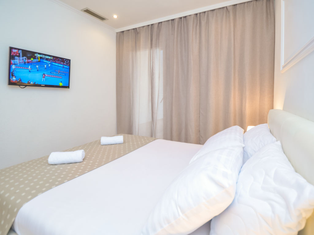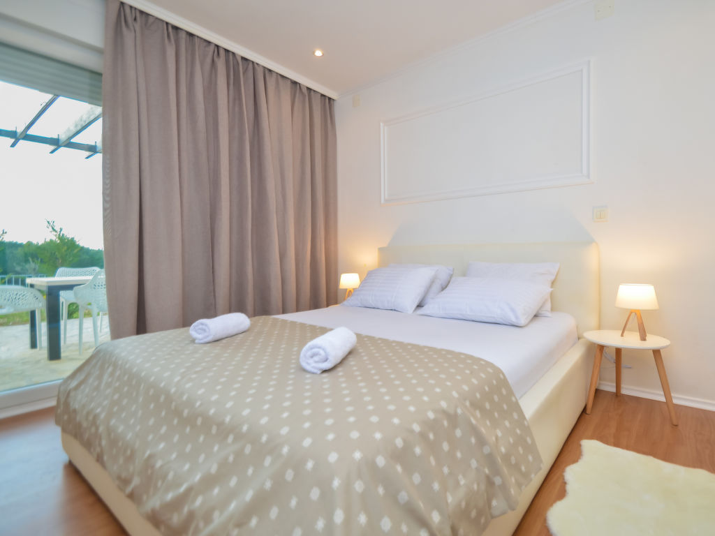 3-Zimmer-Haus 58 m2, Südlage. Gemütlich eingerichtet: Wohn-/Esszimmer mit 1 Doppeldiwanbett (140 cm, Länge 200 cm), offenem Kamin und TV (Flachbildschirm), Klimaanlage. Ausgang zur Terrasse. 1 Zimmer mit 1 franz. Bett (160 cm, Länge 200 cm), TV (Flachbildschirm). Ausgang zur Terrasse. 1 Zimmer 7 m2 mit 1 Bett (90 cm, Länge 200 cm). Offene Küche (4 Kochplatten, Backofen, Geschirrspüler, Toaster, Wasserkocher, Mikrowelle, Tiefkühler, elektrische Kaffeemaschine). Dusche/WC. Terrasse 30 m2. Terrassenmöbel, Liegestühle. Sicht auf das Schwimmbad. Zur Verfügung: Safe, Bügeleisen, Haartrockner. Internet (Wireless LAN, gratis).