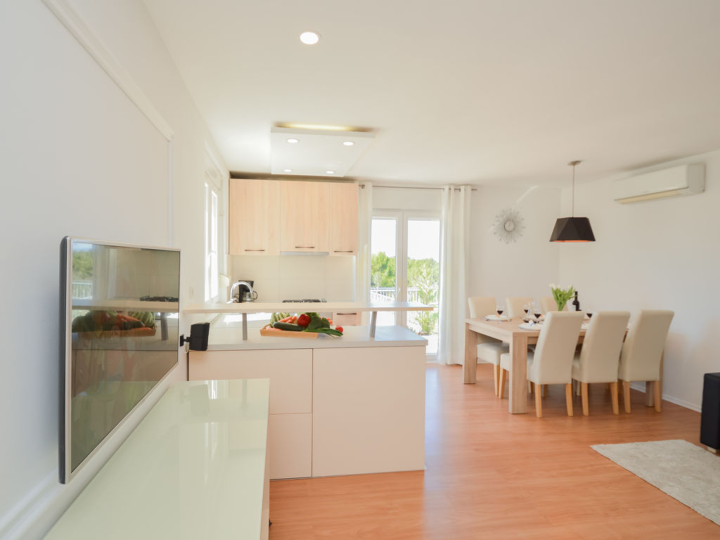Bilice: Schönes Einfamilienhaus "Dalmacia". 2.5 km vom Zentrum von Bilice, 5 km vom Zentrum von Šibenik, sonnige Lage, 5 km vom Meer, 2.5 km vom See, an einer Strasse. Zur Alleinbenutzung: Grundstück 500 m2, Pflanzen und Bäumen, Schwimmbad eckig (6 x 3 m, 150 cm tief, 13.06.-03.10.) mit Innentreppe. Aussendusche, Grill, Kinderspielplatz (Rutschbahn, Schaukel). Im Hause: Internetzugang. Parkplatz (für 3 Autos) beim Haus auf dem Grundstück. Einkaufsgeschäft 1 km, Restaurant 3.5 km, Café 200 m, Kieselstrand 5 km, Badesee 2.5 km. Nahe gelegene Sehenswürdigkeiten: NP Krka 10 km. Bekannte Seen in der Umgebung sind gut erreichbar: Prokljansko jezero 2.5 km. Bitte beachten: Das 1. Stockwerk ist geschlossen und nicht bewohnt.