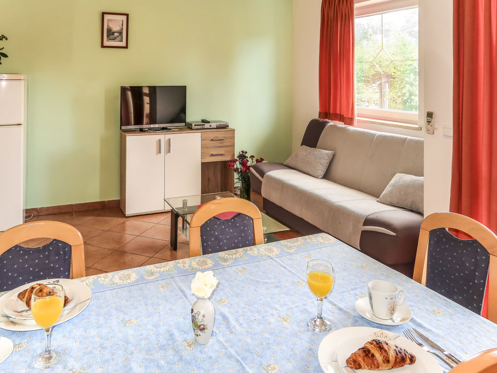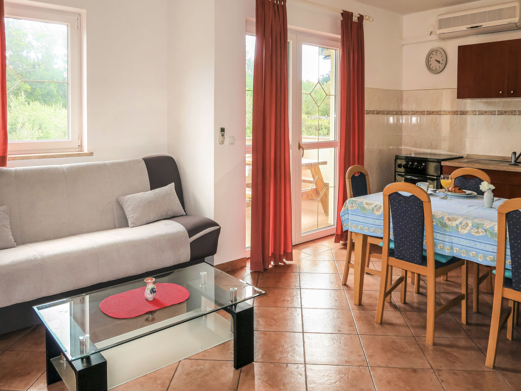 Appartementhaus "Gordana". Im Ortsteil Presika, 1 km vom Zentrum von Labin, 5 km vom Zentrum von Rabac, 5 km vom Meer. Zur Mitbenutzung: Grundstück 1'000 m2 mit Rasen und Bäumen, Schwimmbad (32 m2, 150 cm tief, saisonale Verfügbarkeit: 01.Mai.-01.Okt.). Aussendusche, Volleyball, Badminton, Terrasse, Gartenmöbel, Grill (Schaukel), Poolpflege durch den Besitzer/Gärtner. Im Hause: Internetzugang, Waschmaschine (zur Mitbenutzung, extra). Parkplatz auf dem Grundstück. Einkaufsgeschäft 800 m, Supermarkt 2 km, Restaurant 2 km, Kieselstrand 5 km, Felsstrand 5 km. Jacht-Hafen 5 km. Bitte beachten: In diesem Haus sind weitere Ferienwohnungen mietbar.