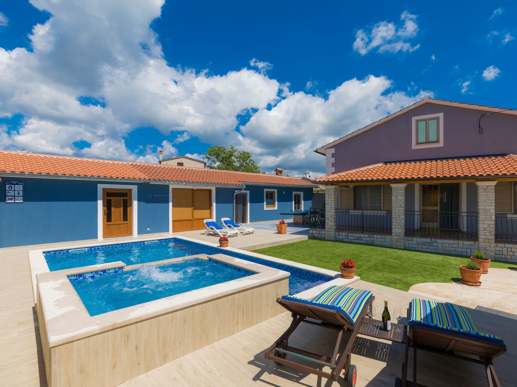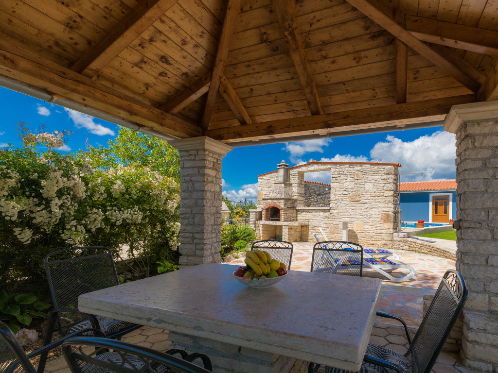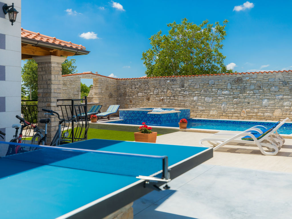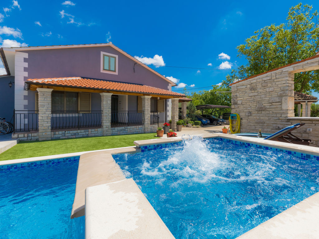 Schönes Einfamilienhaus "Begonija". Im Weiler Marići, ausserhalb des Ortes, 1 km vom Zentrum von Kanfanar, ruhige, sonnige Lage, 20 km vom Meer, 20 km vom Strand, im Grünen. Zur Alleinbenutzung: Grundstück 1'000 m2 (eingezäunt), schöner Garten mit Rasen und Blumen, Schwimmbad eckig (8 x 4 m, 140 cm tief, 20.04.-15.10.) mit Innentreppe. WC im Poolbereich, Aussendusche, Tischtennis, Laube (20 m2), Grill. Im Hause: Internetzugang. Zur Verfügung: Fahrräder (6). Parkplatz beim Haus auf dem Grundstück. Einkaufsgeschäft 800 m, Kieselstrand 20 km. Sportzentrum 20 km. Schwimmbad mit Hydromassage.