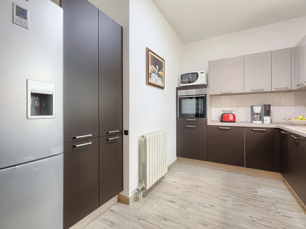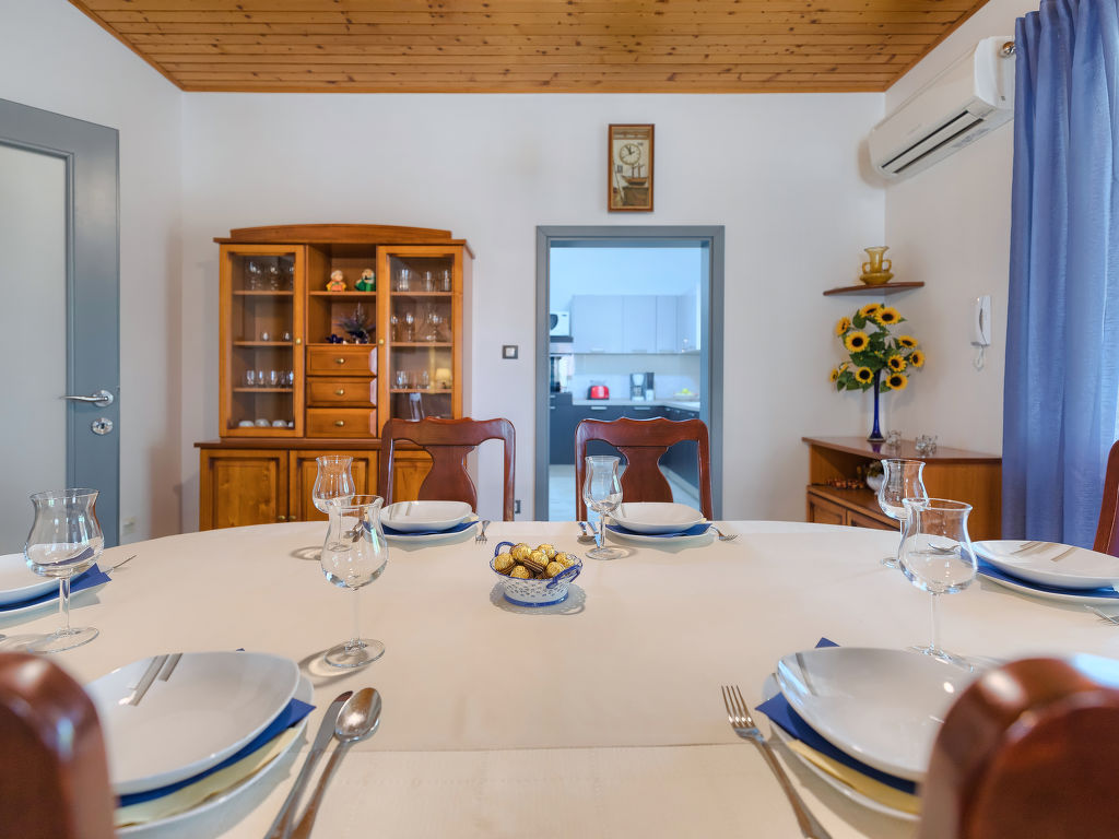 5-Zimmer-Haus 160 m2. Wohn-/Esszimmer 32 m2 mit Sat-TV und Klimaanlage. Ausgang zur Terrasse. 1 Zimmer mit 2 Betten (90 cm, Länge 200 cm). 1 Zimmer mit 1 franz. Bett (160 cm, Länge 200 cm), Dusche/WC. 1 Zimmer mit 2 Betten (90 cm, Länge 200 cm). 1 Zimmer mit 1 Bett (120 cm, Länge 200 cm). Küche (4 Kochplatten, Backofen, Geschirrspüler, Mikrowelle, Tiefkühler). Bad/Dusche/WC. 2 Terrassen 24 m2. Terrassenmöbel, Liegestühle. Sicht auf das Schwimmbad und den Garten. Zur Verfügung: Waschmaschine. Internet (Wireless LAN, gratis). 1 Haustier/Hund erlaubt.